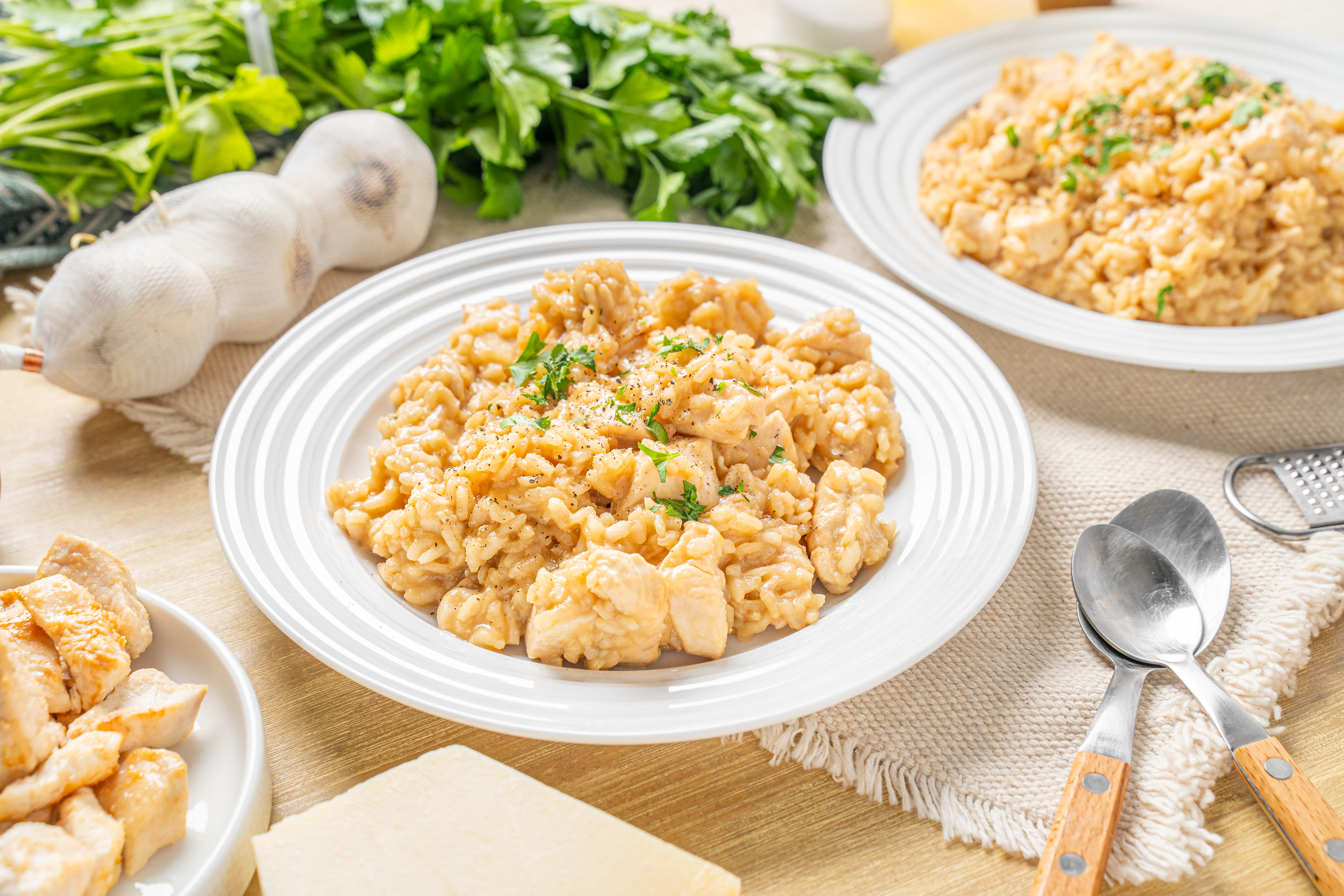 Amazing Chicken Risotto is just... amazing! It's 5-star delicious! It's remarkable! You won't believe that you made this yourself! The rice is tender, creamy, rich, and so, so satisfying. Filled with sharp parmesan and golden-brown chicken, Amazing Chicken Risotto will blow your mind and your taste buds!