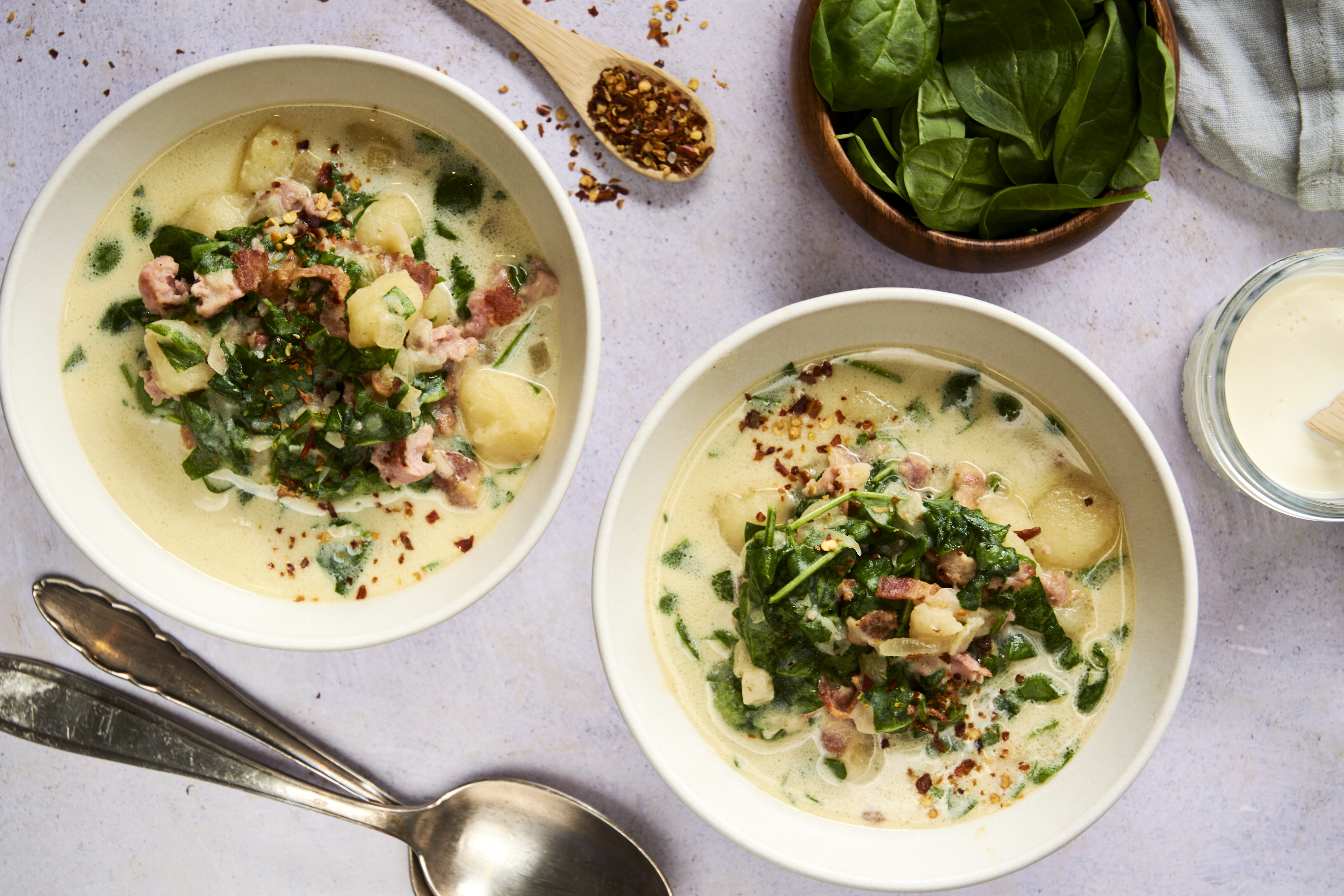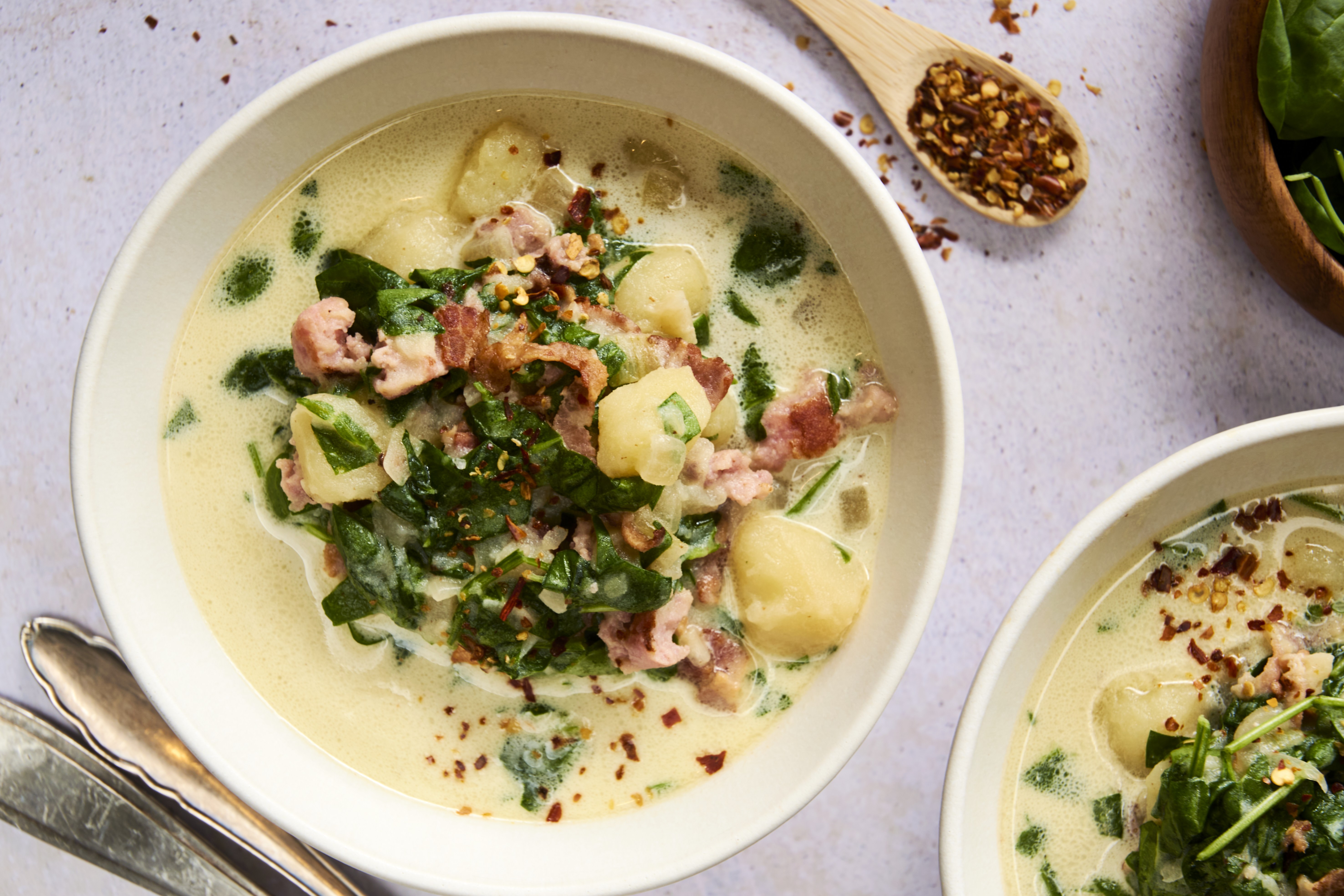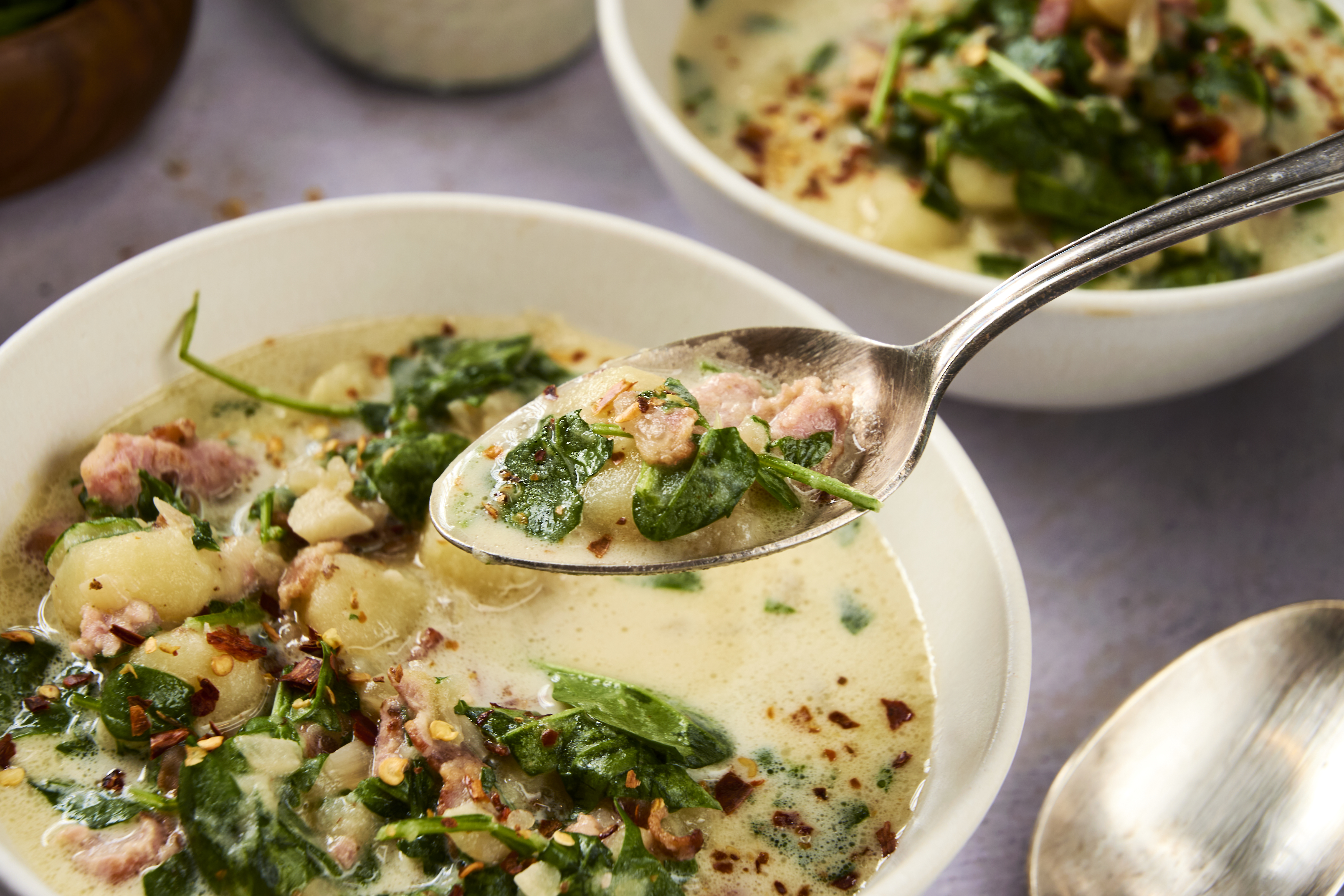 There's nothing quite like this Authentic Italian Soup for a warm sip of Mediterranean comfort! Savory sausage, crispy bacon, and tender potatoes simmer in a creamy broth alongside hearty russet potatoes and vibrant green kale to create a stunning dish. Rich with just a hint of classic Italian spice, Authentic Italian Soup takes you wherever you want to go on the Boot! Buon viaggio, taste buds!