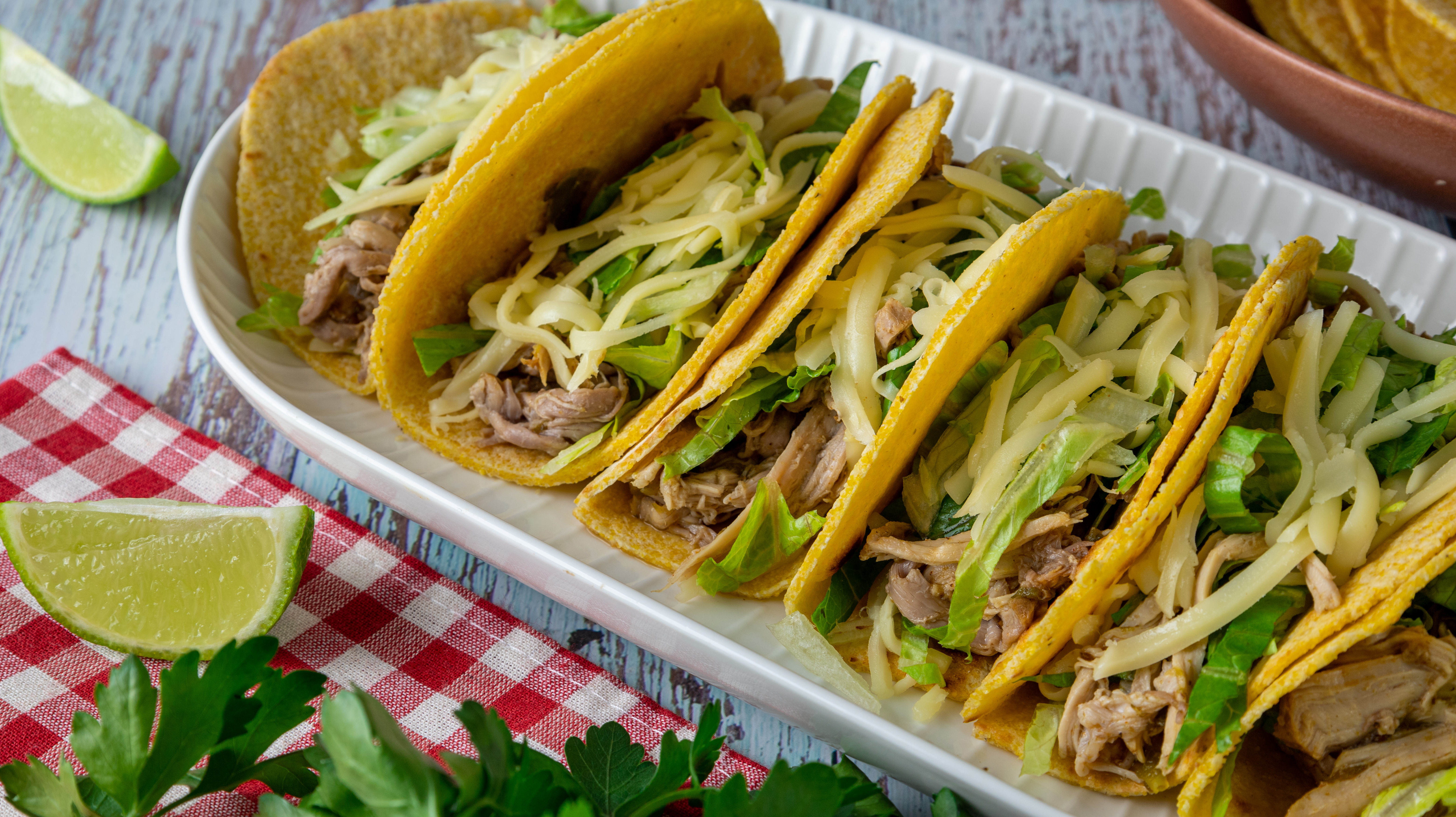 Baja Pork Tacos sounds pretty tasty... but what does it mean?! Da-dada-da! It's time for some taco trivia! Baja-style usually describes deep-fried, white-fleshed fish with some shredded cabbage and a white sauce... but you know how we are, we had to switch things up a bit! Our Baja Pork Tacos swap the deep-fried for slow-cooked, the fish for some tender, juicy pork, the cabbage for some crispy lettuce (almost the same!), and the sauce for some melty cheese! We'd say that's a pretty delicious trade. Thanks for tuning into taco trivia! We hope you have fun learning new tastes!