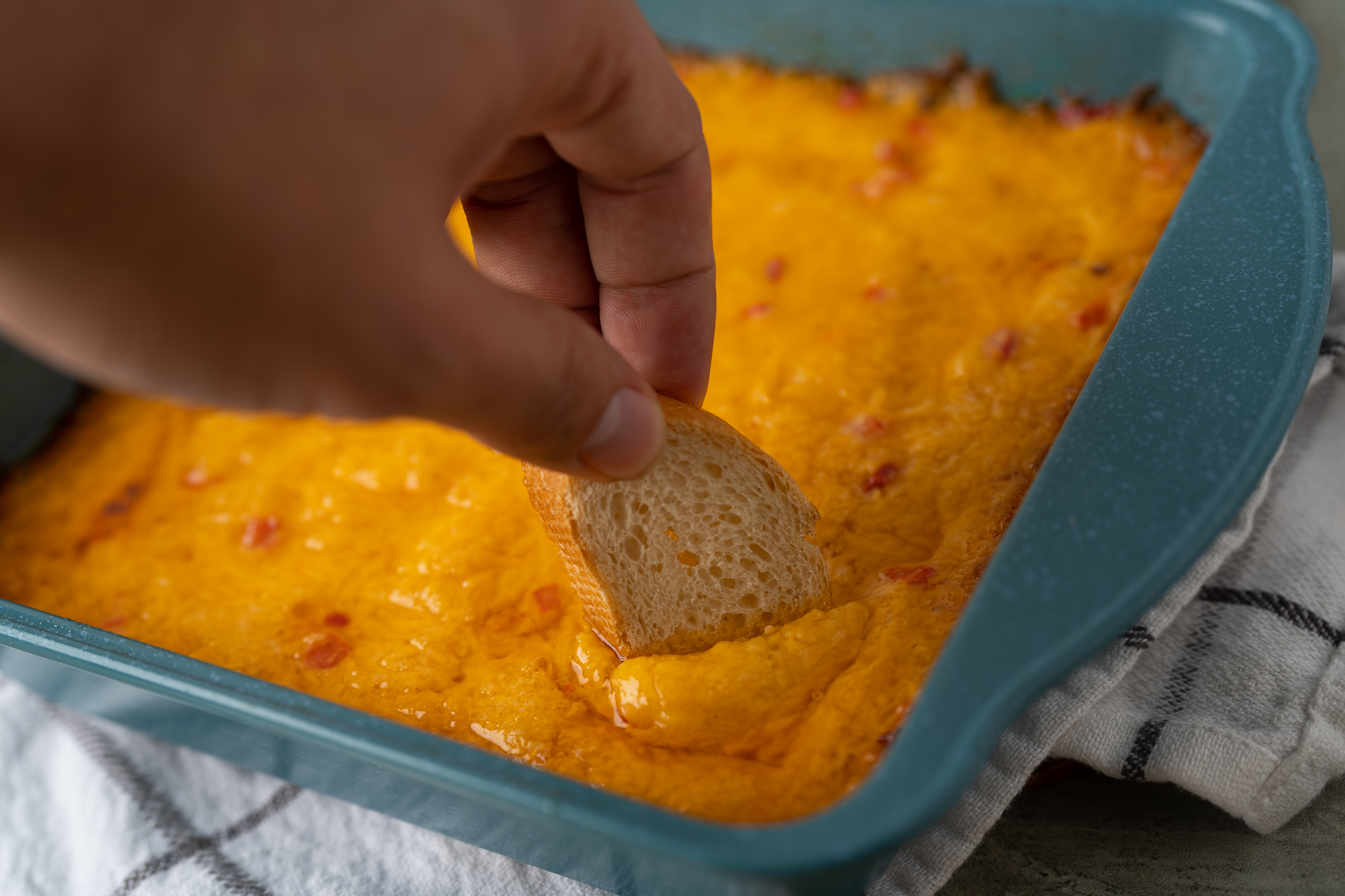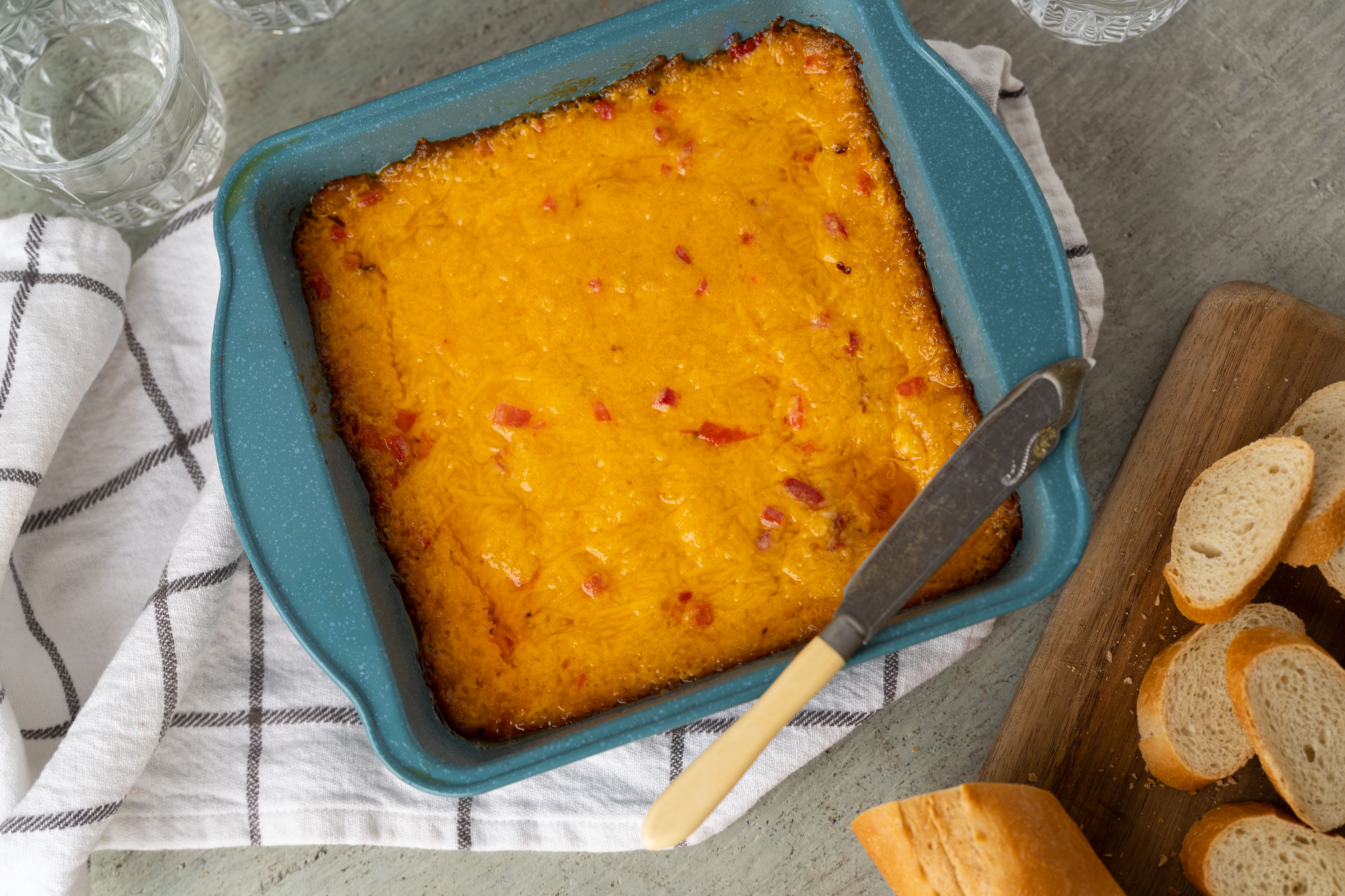 The caviar of the South is getting a deliciously melty and ooey-gooey transformation with this Baked Pimento Cheese! The pleasingly spicy and creamy mixture, with its distinct tang and cheddar sharpness, is baked to a bubbly golden-brown and is ready for tiny toasts, crackers, or vegetables... whatever you can find really... for dipping! It's a speedy and simple snack that is guaranteed to make you happy! Baked Pimento Cheese might just put other cheese dips to shame!
