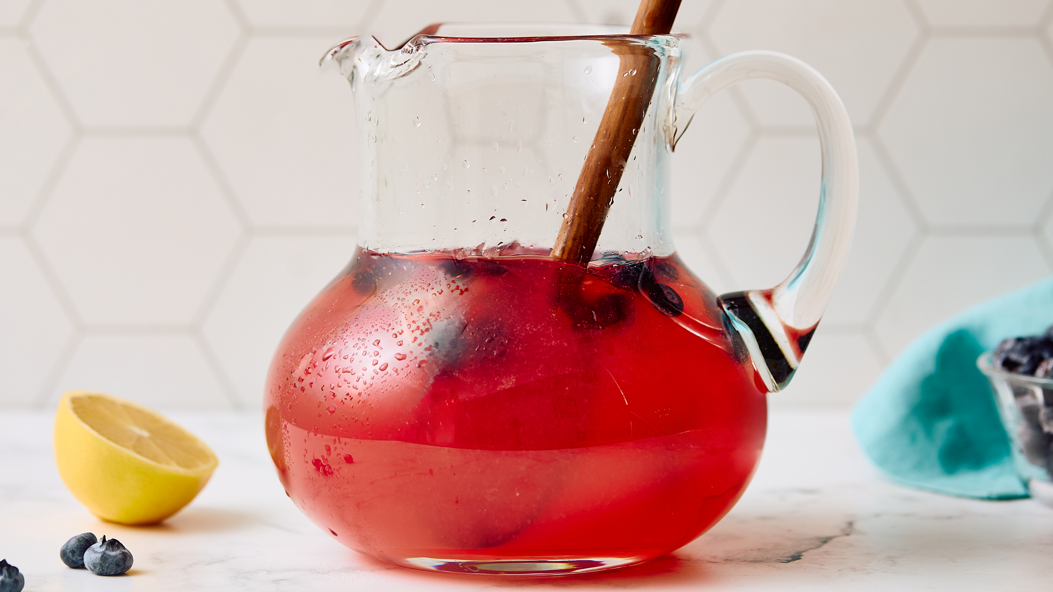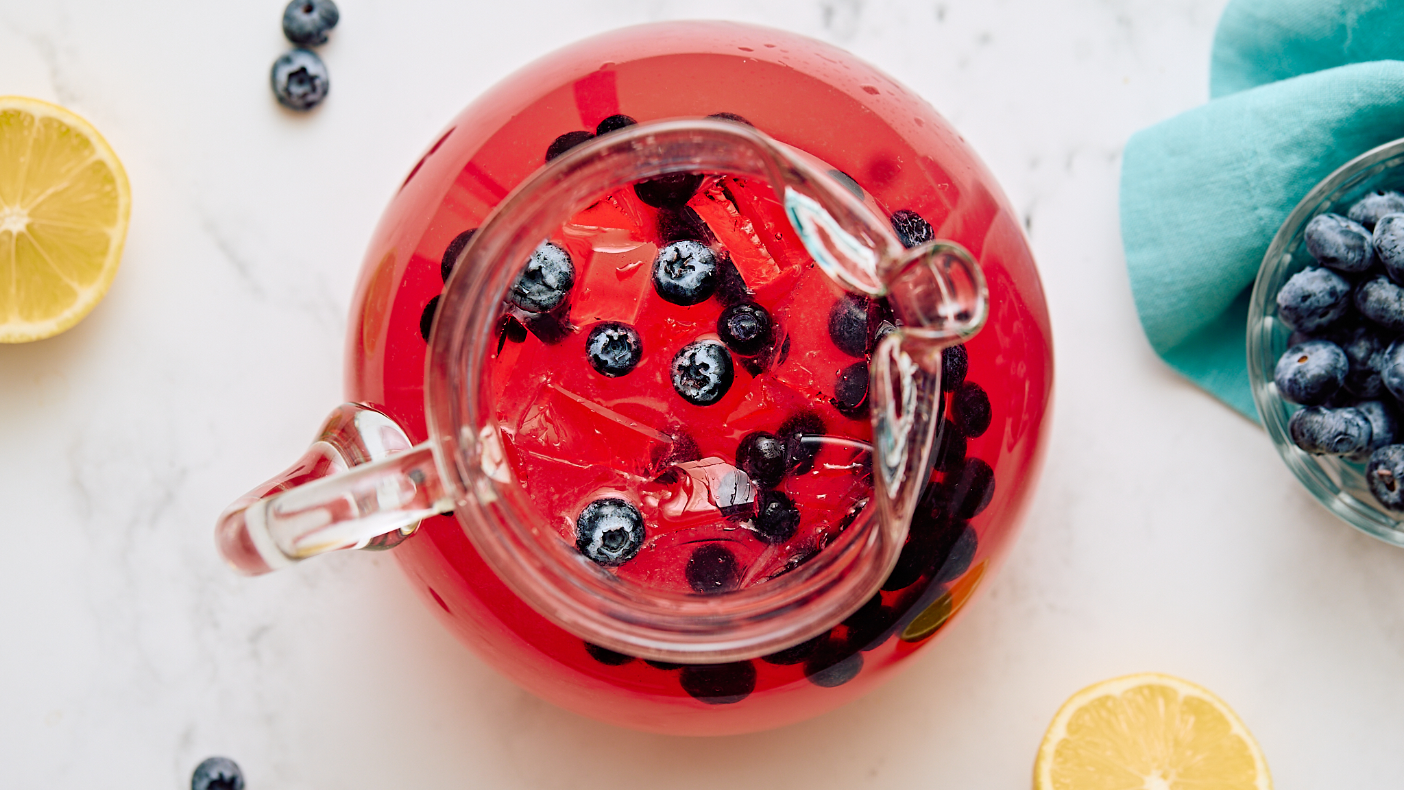 Step 6 -Add the lemon syrup and the blueberries and stir until the mixture becomes pink in color.