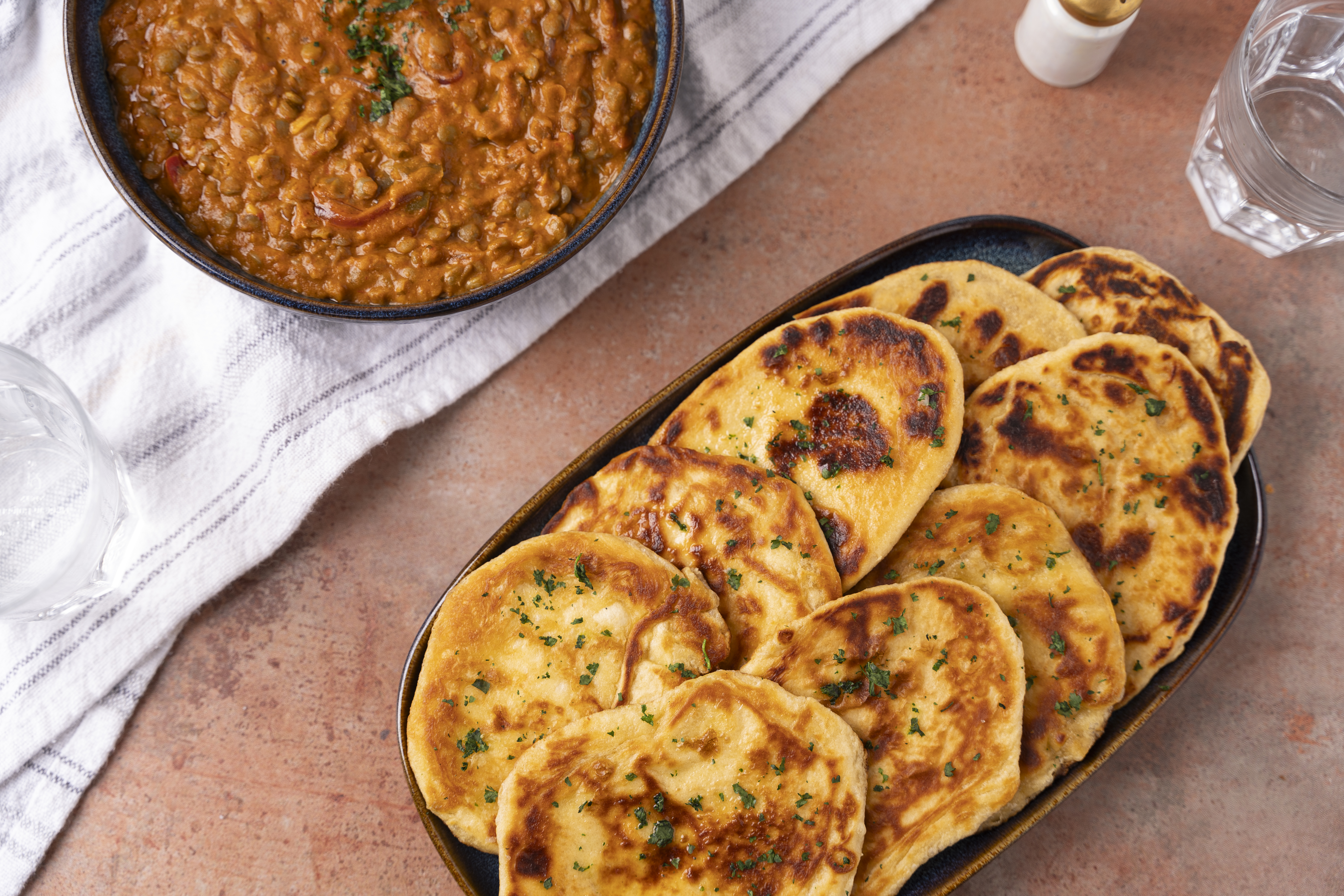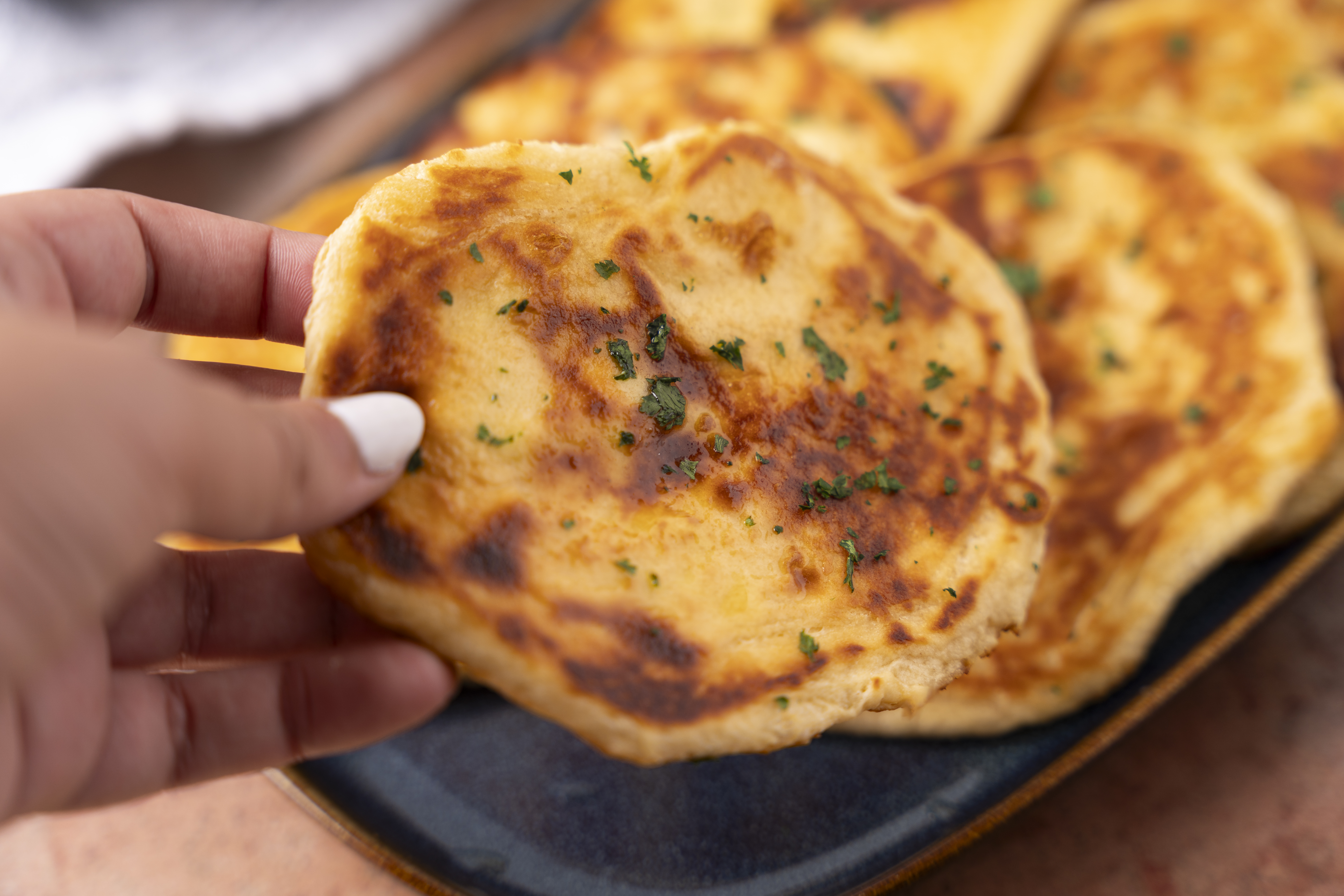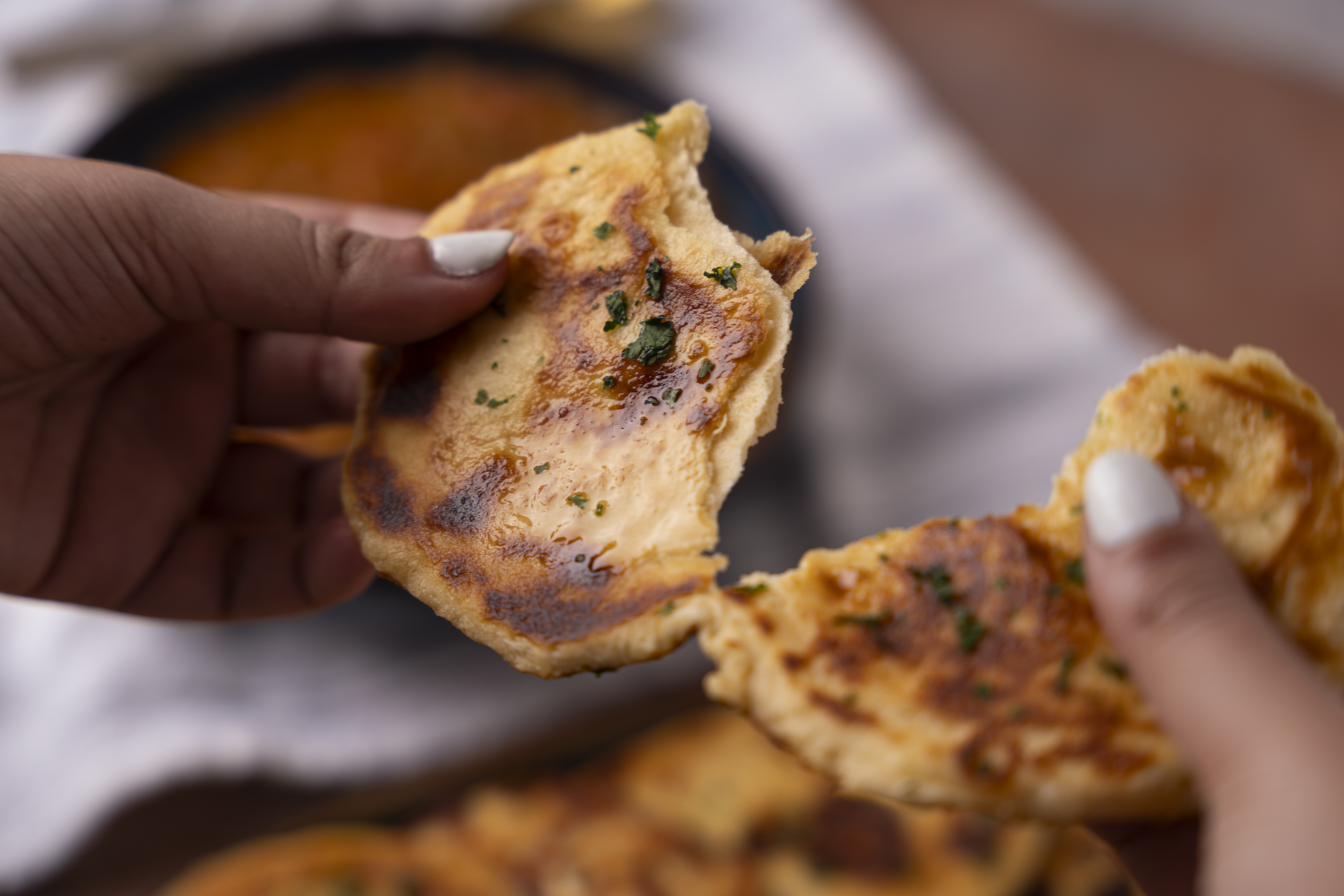 You know those piles of delicious naan bread you get at your favorite Indian restaurant? You can make something similar in your own kitchen, with basically no effort whatsoever! Biscuit Naan uses classic buttery biscuits as the base and then pan-fries them until golden and crisp on the outside, creating that distinct and delicious naan texture. Brush them with melted garlic butter and marvel at what Biscuit Naan can do! Dip them in sauces, scoop up chicken tikka masala, or just snack on them. It's like the best new way to make garlic bread!
