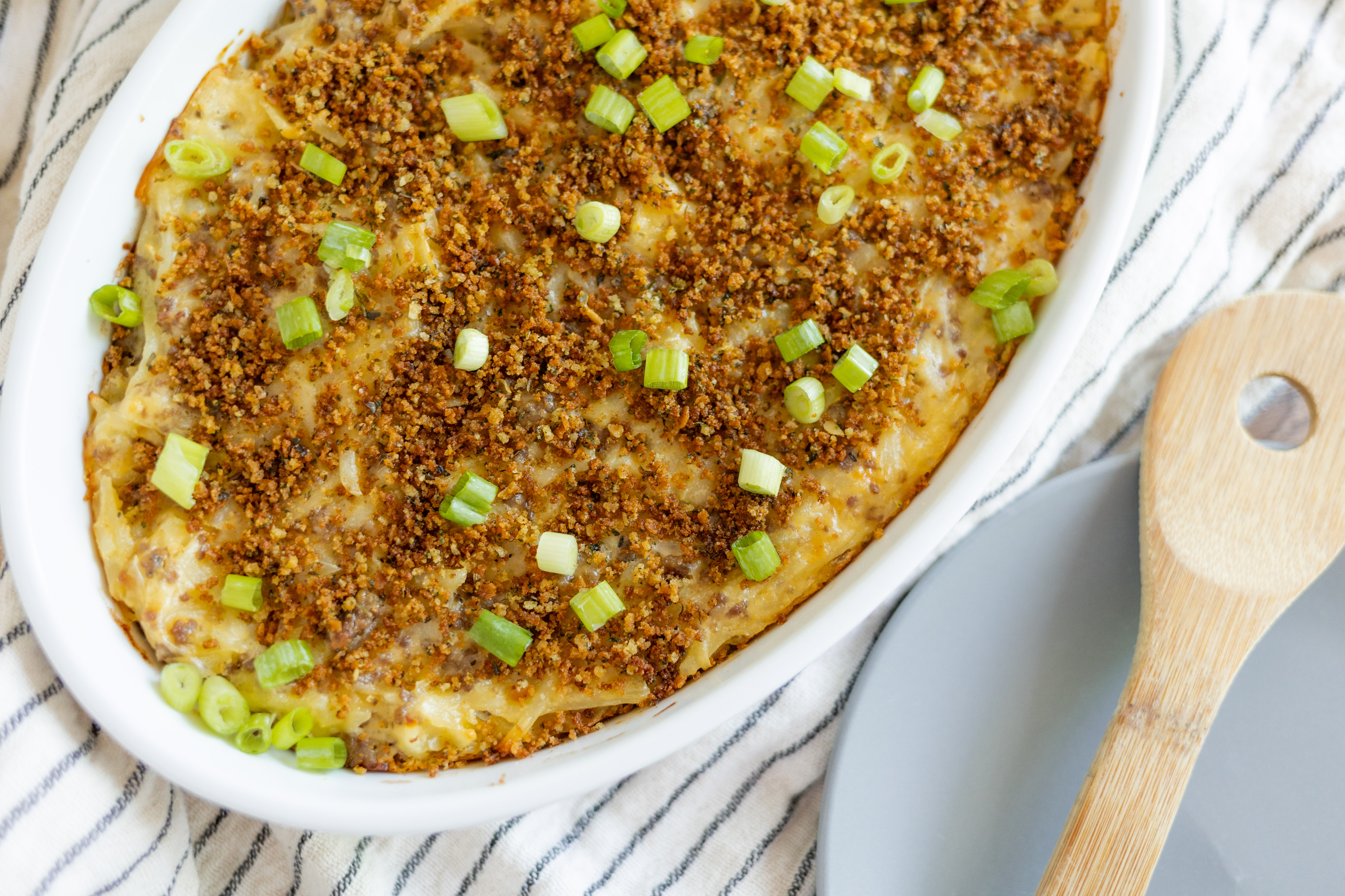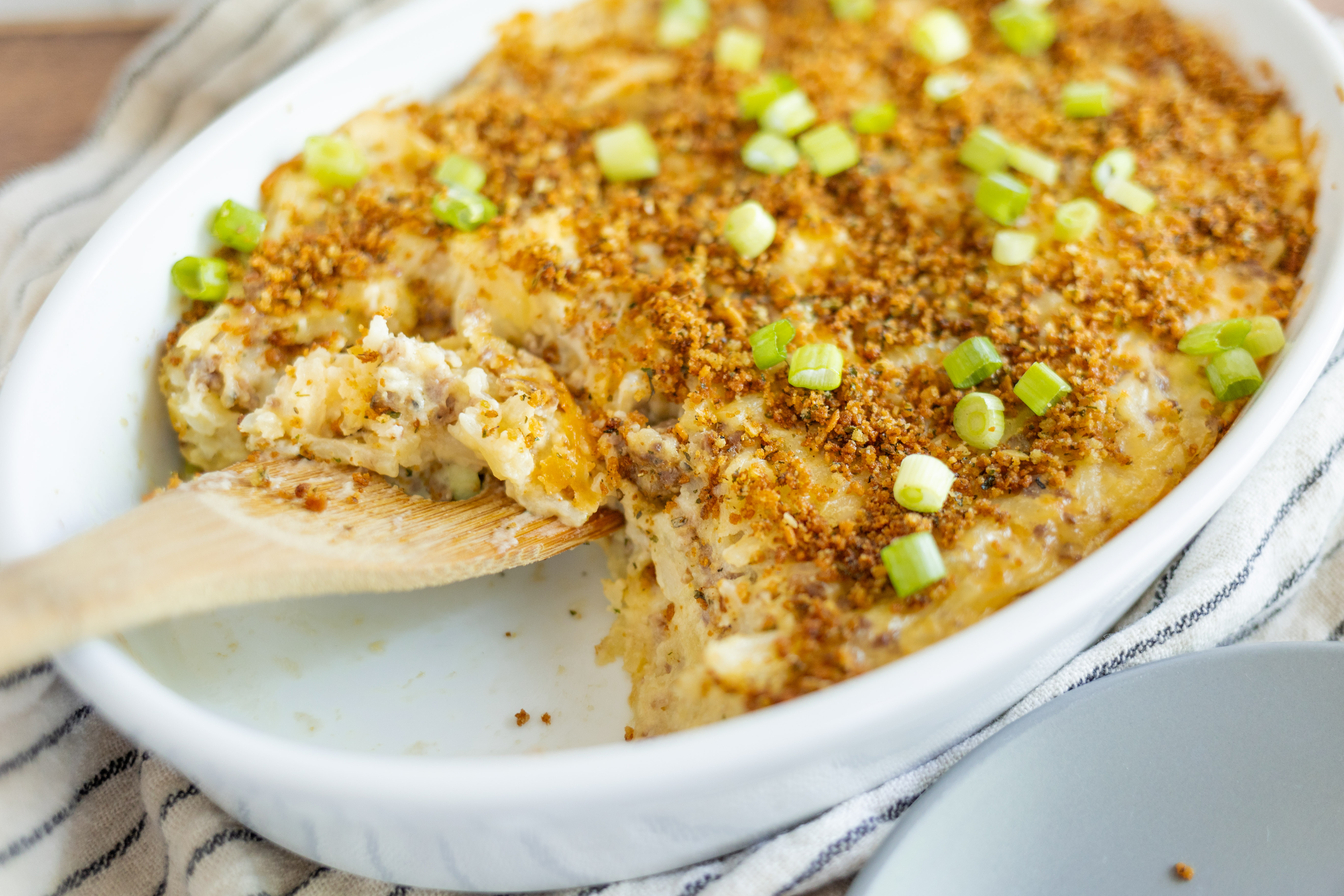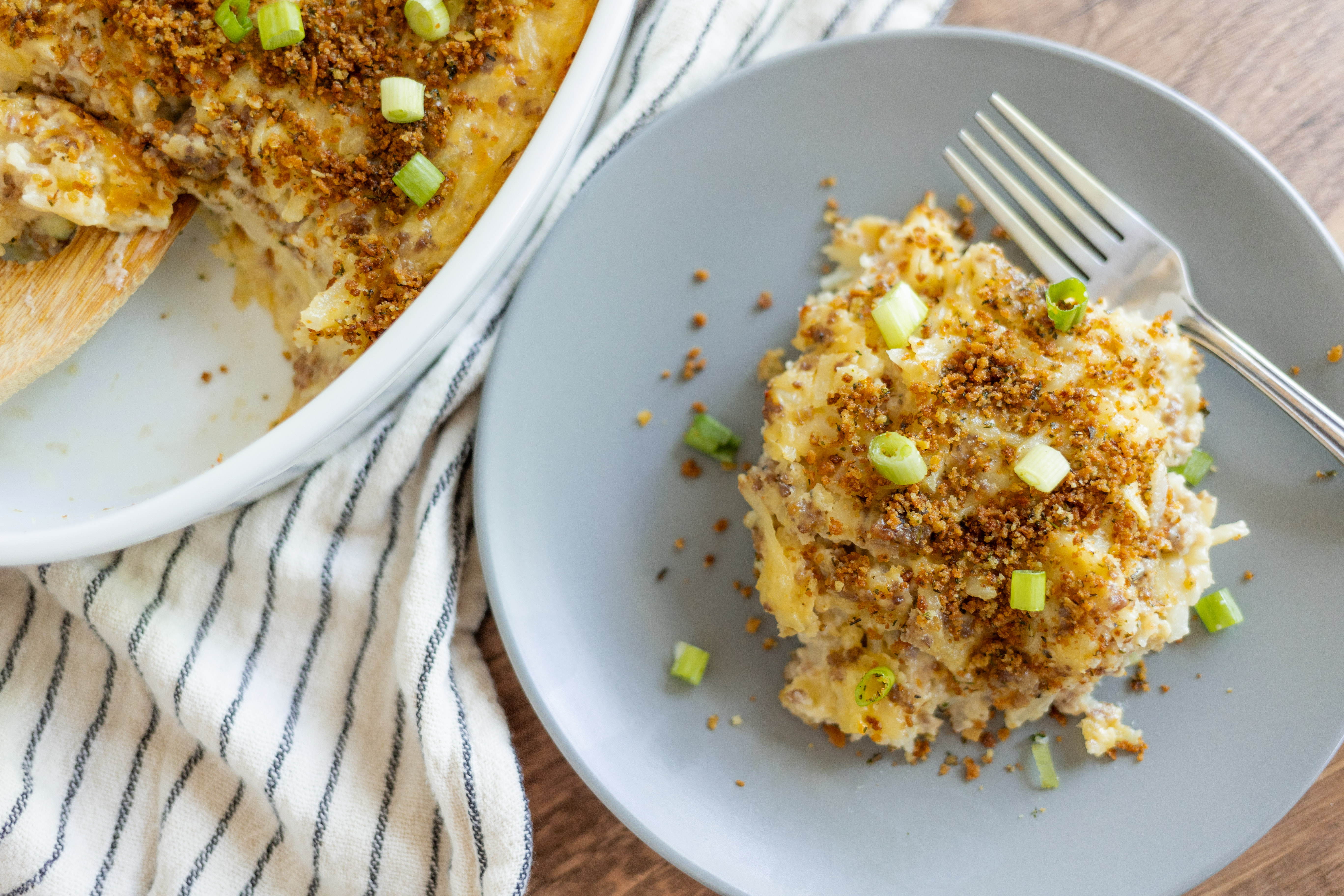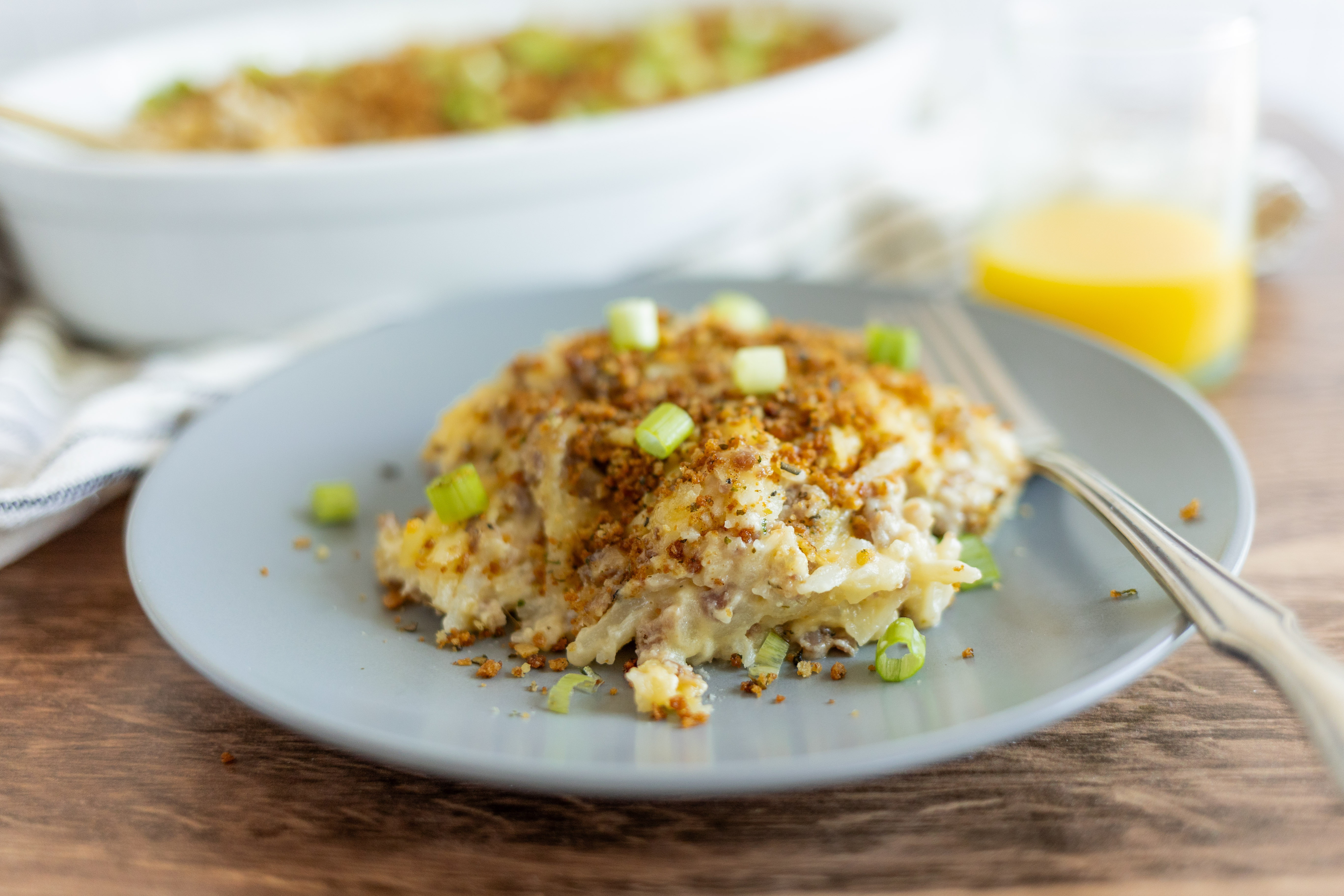 Nothing says "good morning" like a great breakfast. Breakfast Potato Bake is a great way to get your morning started and you are going to love it! Hearty, seasoned sausage and tender hash browns come together with a perfectly seasoned cheese sauce, and are baked until the panko breadcrumbs are golden-brown. Mmmm! There is not a better or more filling meal to help get your day on track than this one! Breakfast Potato Bake will become a fan favorite and your mornings won't be the same without it. Top of the morning to you!