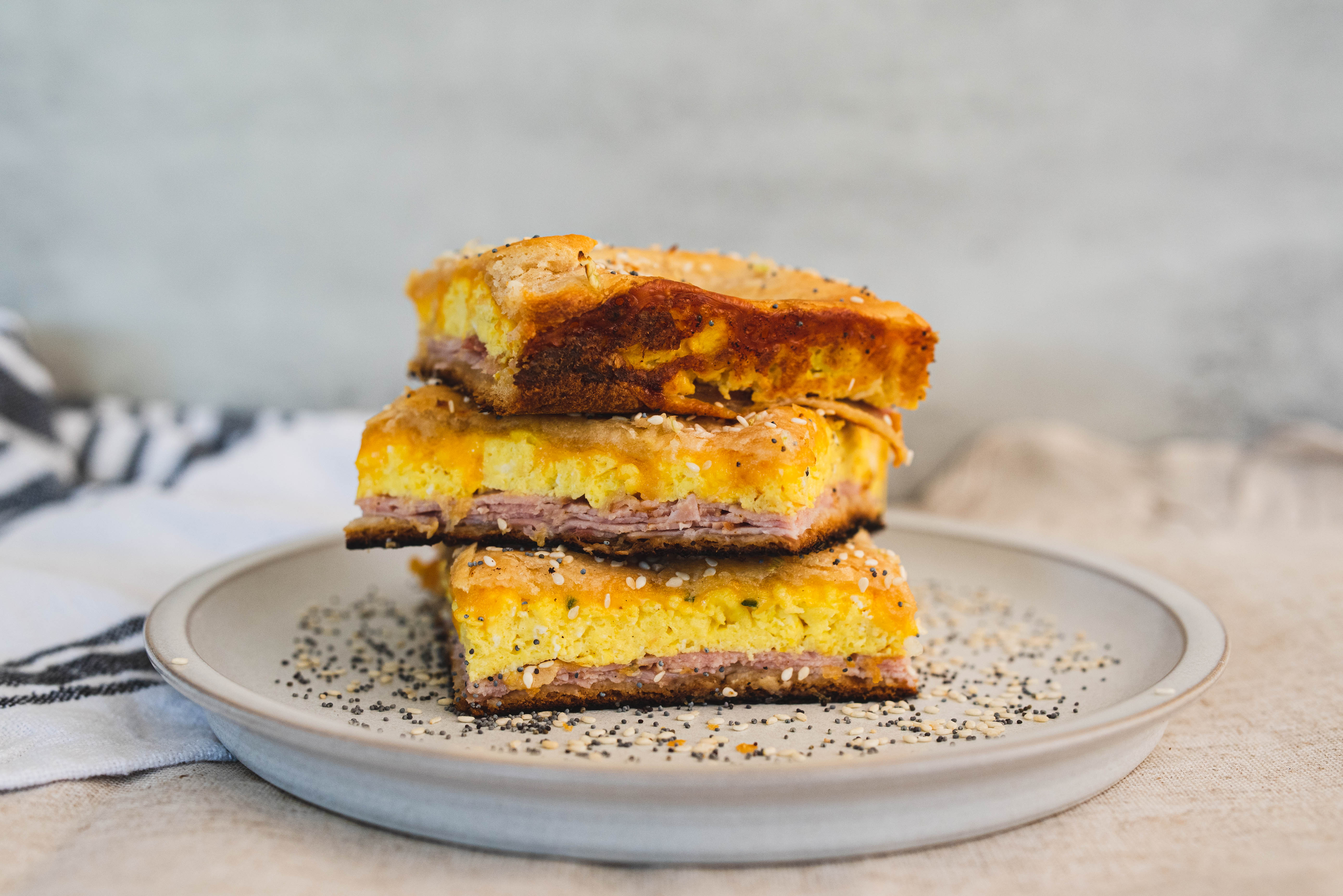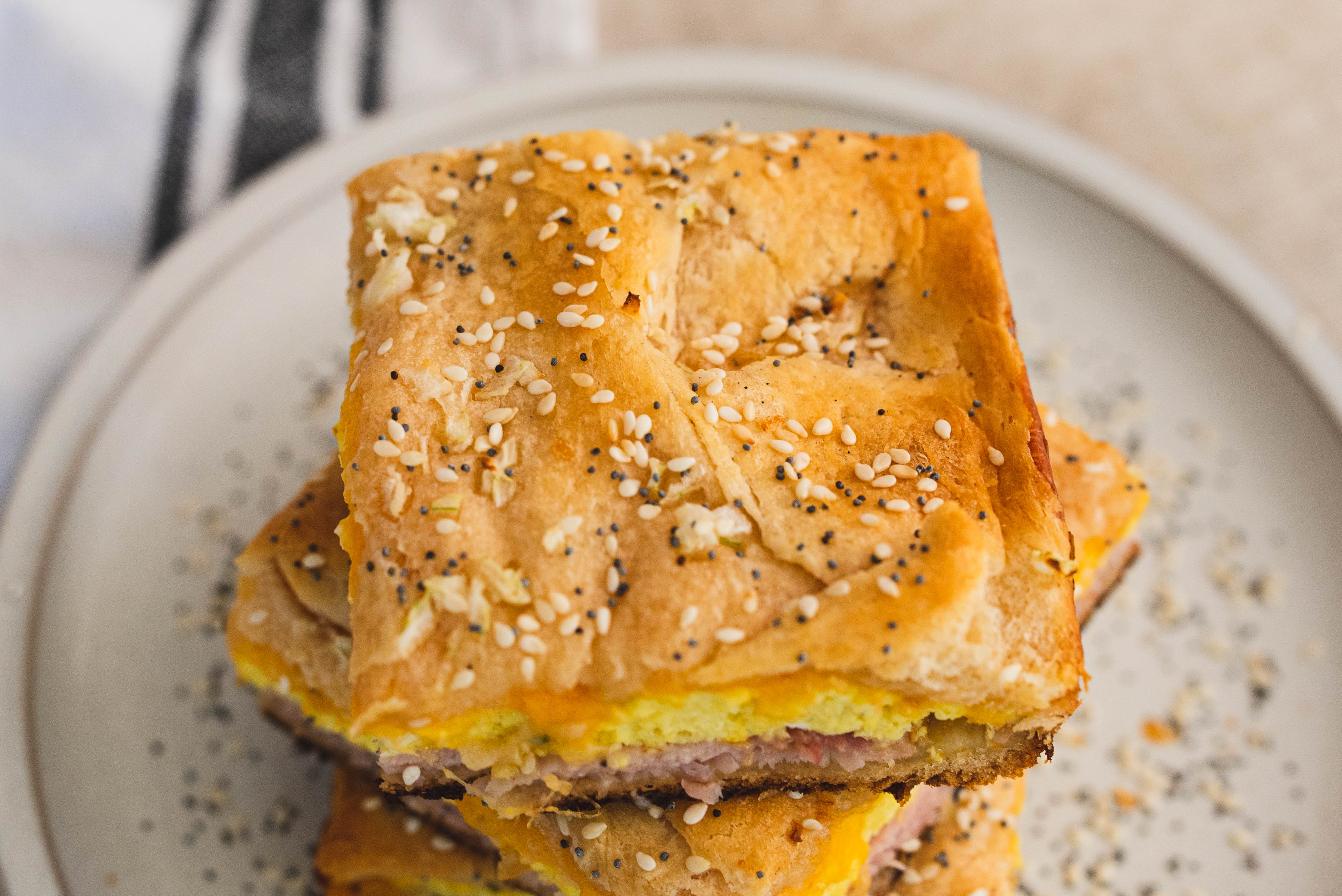 If you want more than two options for breakfast, we have the perfect bake for you. Breakfast Squared is the exceptional way to include all the things you love in one handheld bite that is anything but square (except the shape, ha)! Layered in between two flaky, seasoned crescent roll pastries, this fluffy egg, smoky ham, and melted cheddar cheese combo rounds out one of the best breakfast "sandwiches" you can find. Breakfast Squared is the best equation for the ideal way to get your day started off in the right direction. It will soon be your number one breakfast choice. No math required!
