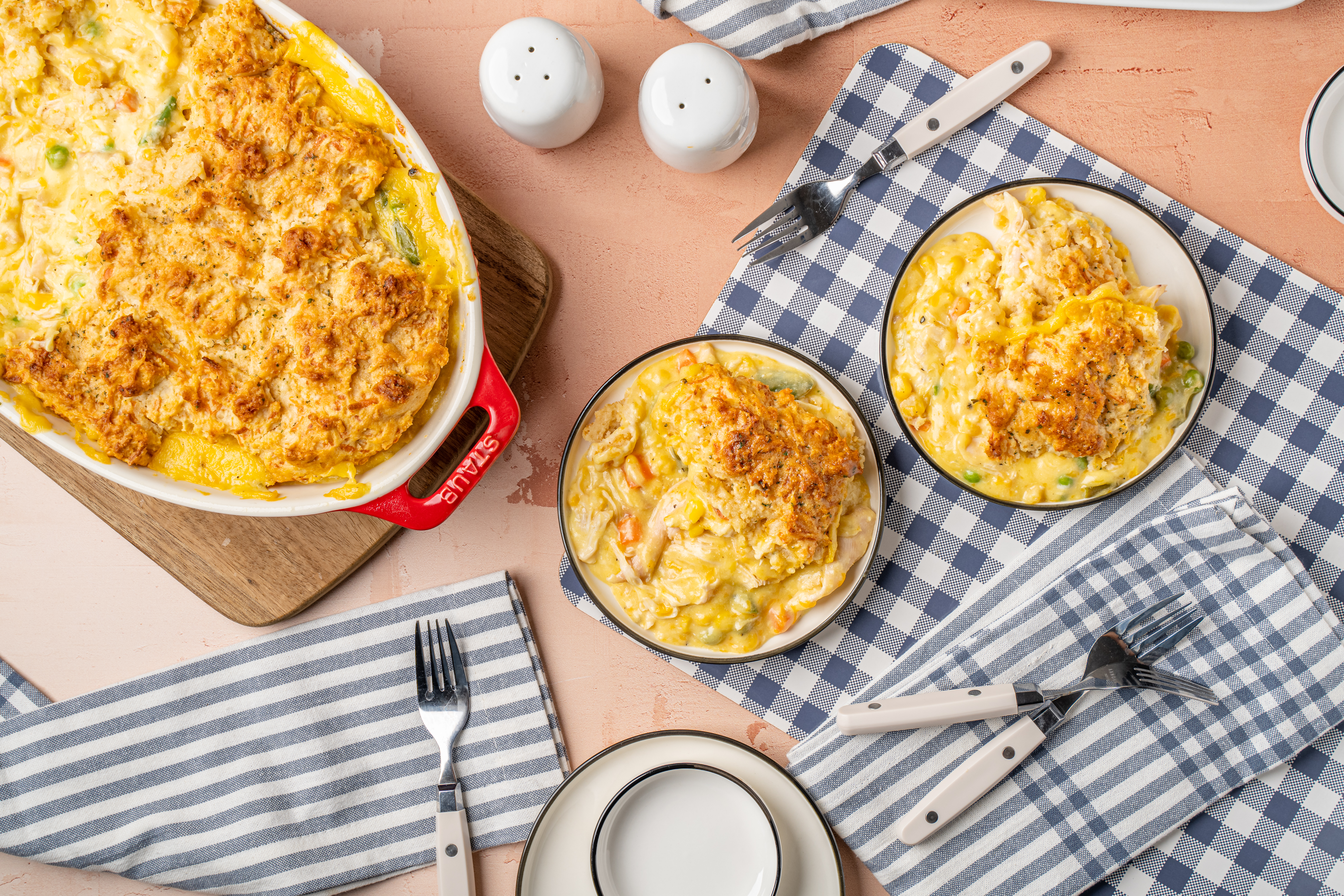 It's always the best when a restaurant realizes what its finest product is and then lets customers make it from home. On second thought, the best is using that same amazing food to make something completely new! The Cheddar Bay Biscuit® Bake uses Red Lobster's® signature biscuit mix as the basis for an incredibly buttery, cheesy, flaky crust for a doubly cheesy, creamy, and hearty chicken and vegetable filling. Pot pies just can't compare to this Cheddar Bay Biscuit Bake!