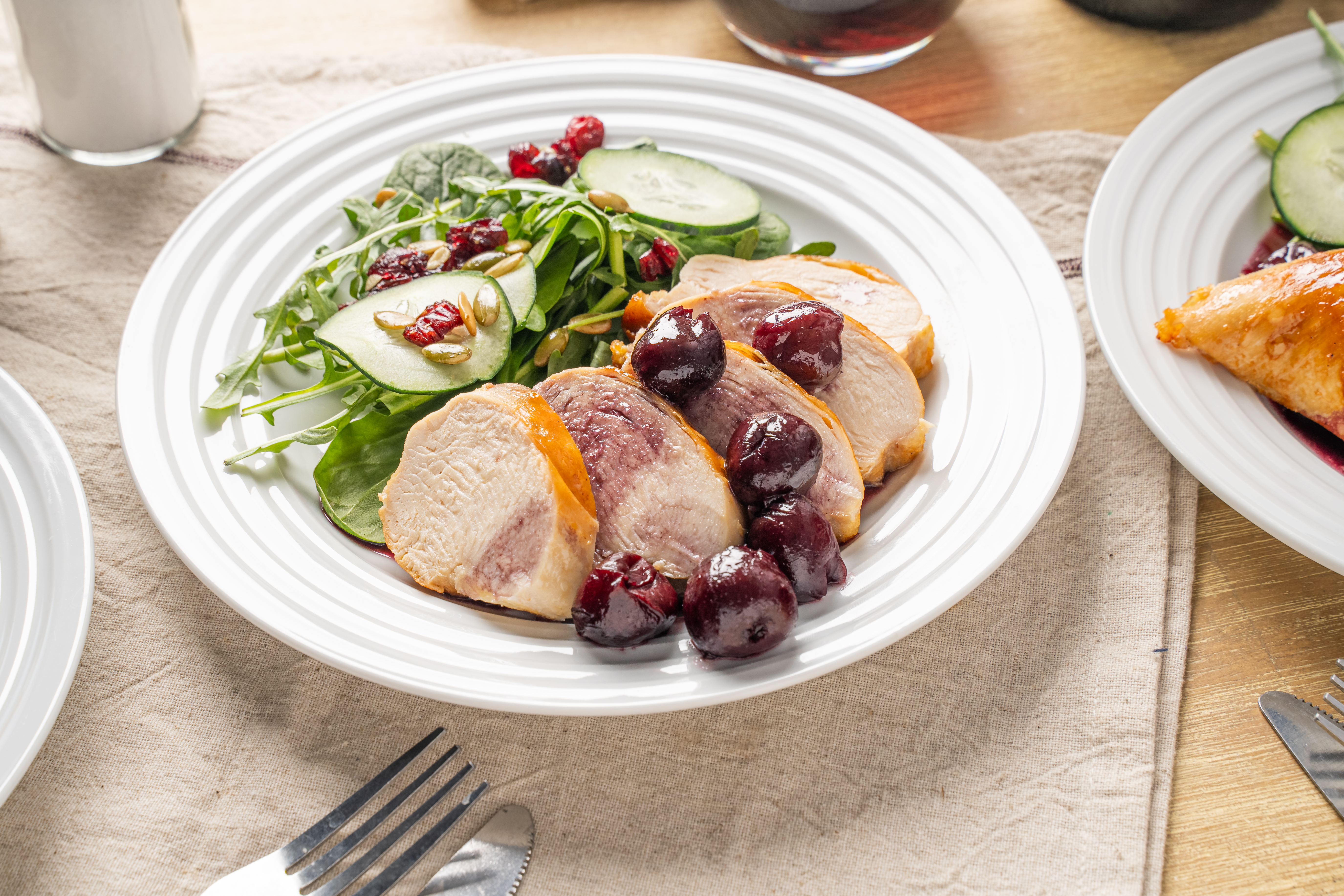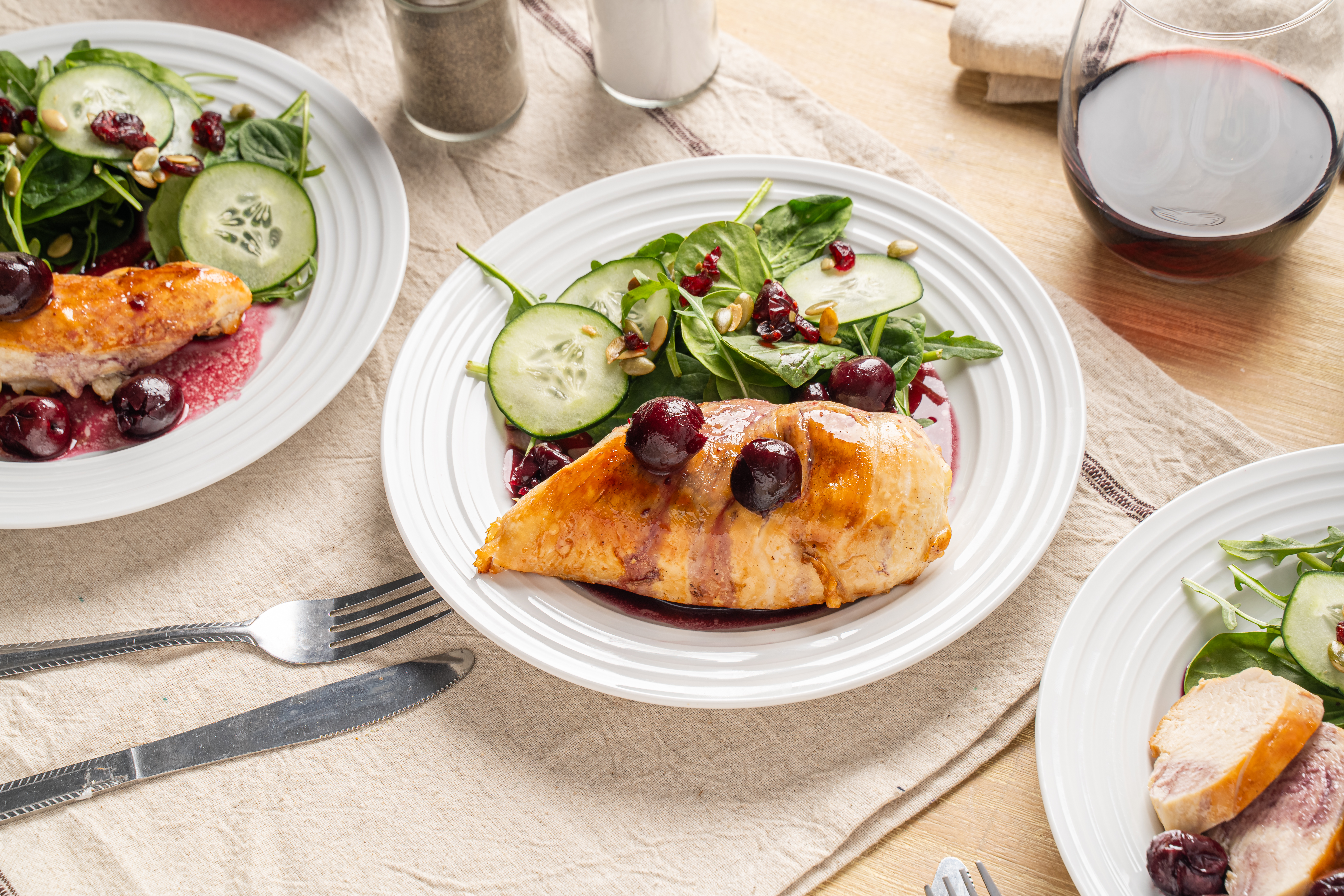 Cherry Chicken looks and tastes like something that should appear on a 5-star menu, but here it is emerging from your kitchen and ready to make a brilliant first impression! The chicken is perfectly juicy, with a gorgeous golden jacket, but it's the simple yet effective cherry-wine sauce that really sells this dish. It's sweet, rich, and wonderfully bold, with the sweetness and tartness of the cherries making a great contrast to the savory poultry. Cherry Chicken is the cherry on top of a great day!