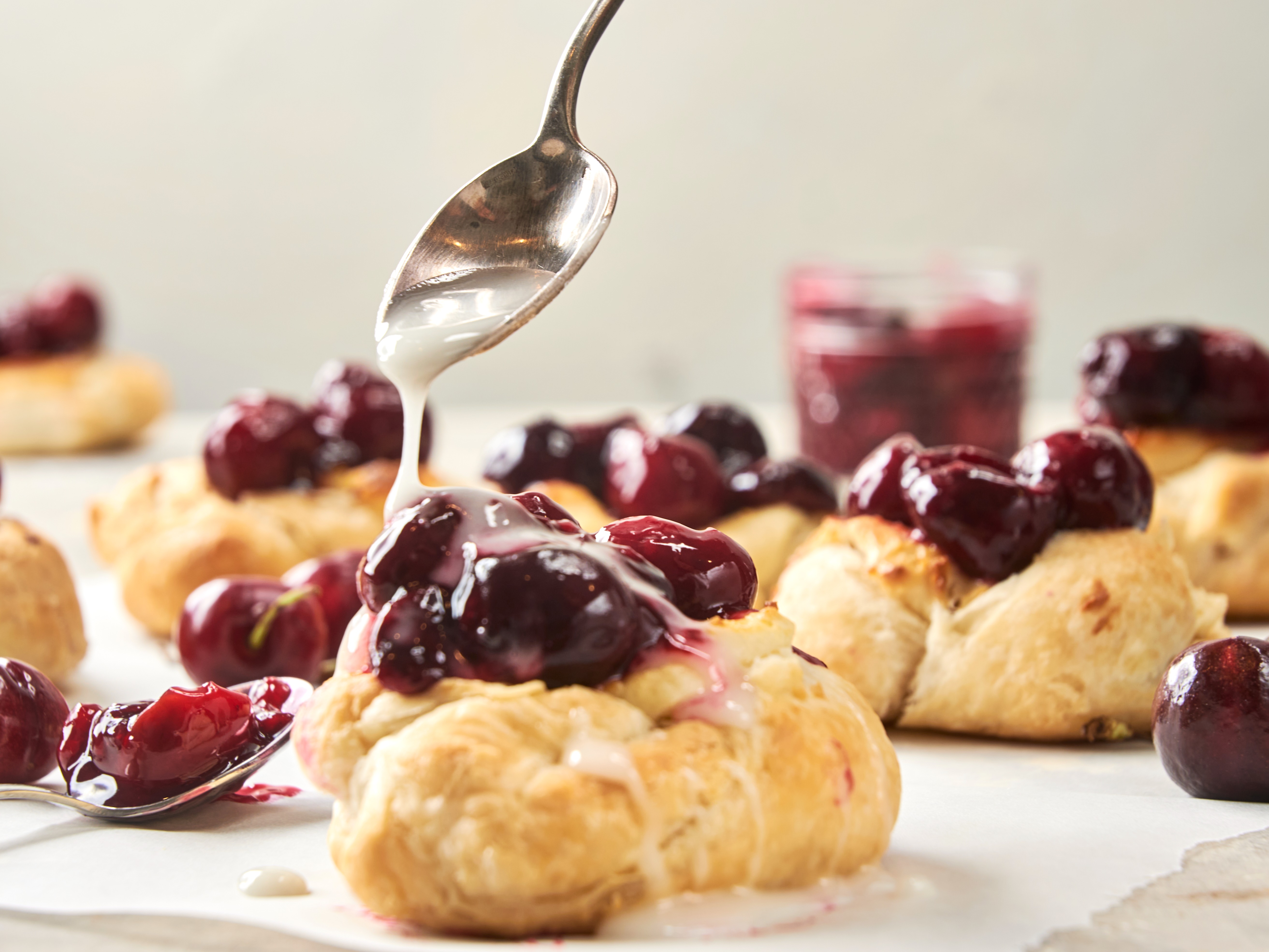 Step 13 -Evenly drizzle the glaze over the cherry crescents.