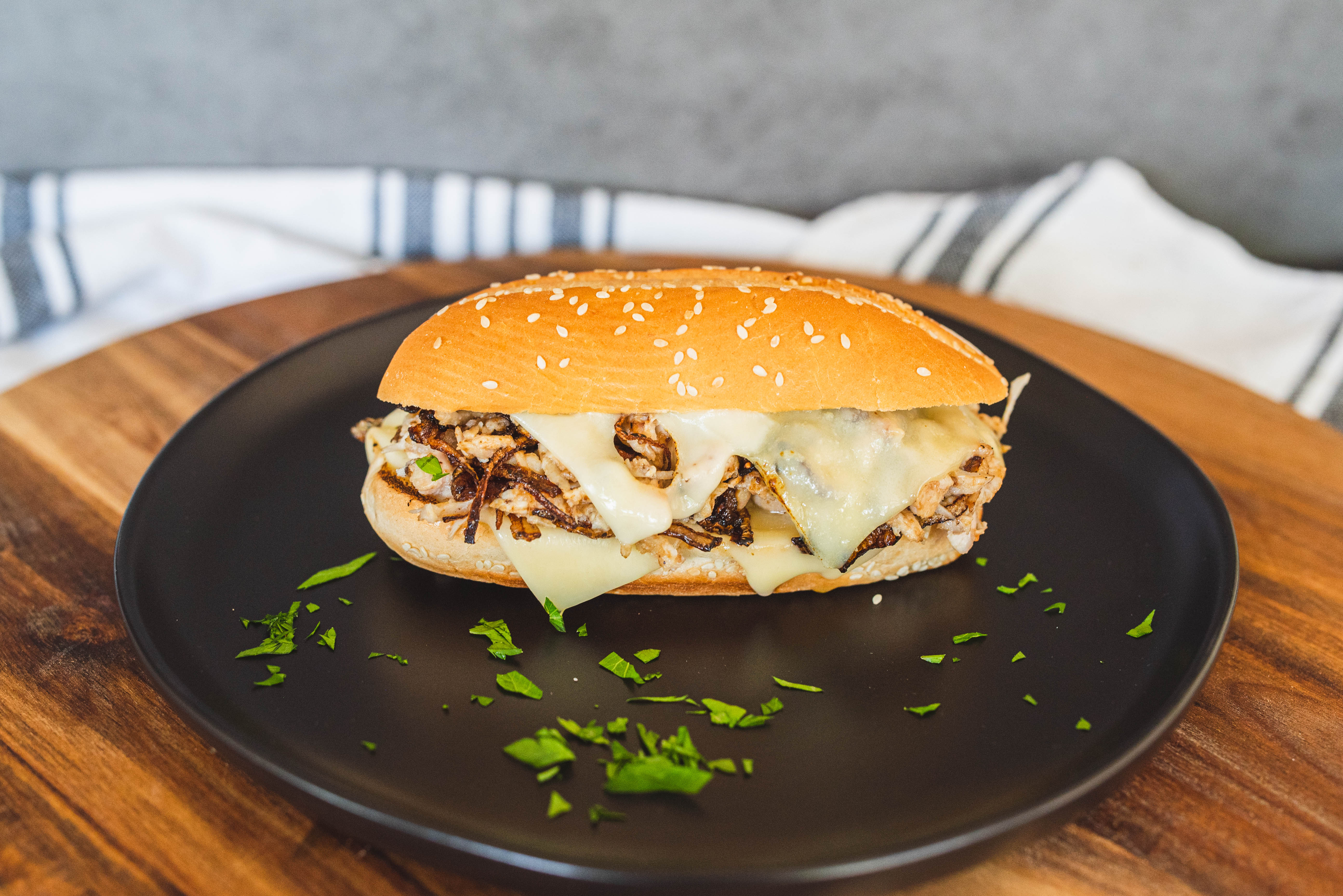 The original French dip sandwich just got a little protein makeover! We'd love to introduce you to the new and, dare we say, improved version! So, without further ado, please give these Chicken French Dip Sandwiches a round of applause! Okay, okay, if you're reading this in public, maybe don't clap... but the swap to tender chicken in the beloved, savory bath of deliciousness is worth an ovation! The way the fluffy hoagie buns soak up every juicy drop and how the melty cheese melds to it all just makes you want to shriek with excitement. And hey, when Chicken French Dip Sandwiches are on the table, you might not be able to control it... whether or not you're alone! This might just be the most delicious introduction ever! You just wait!