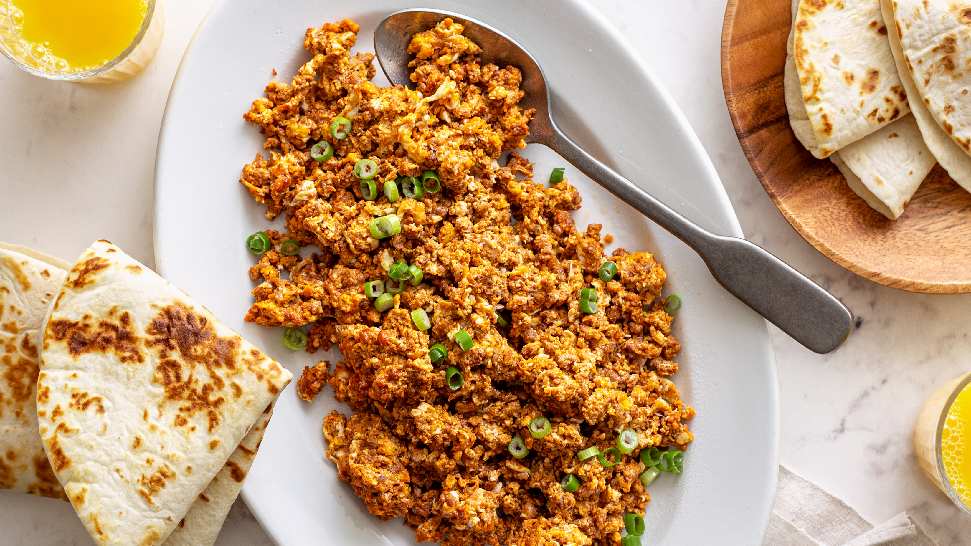 Let's spice up your morning! Chorizo & Eggs brings you the perfect protein combo to start off your day. It's a simple, quick-fix that will do wonders for your energy and all that you have planned! The spicy chorizo, cooked together with some hearty eggs, creates the most delicious main that can be eaten alone, added to a breakfast taco, or topped with anything your breakfast-loving heart desires. Chorizo & Eggs gives you so many options to a good start... and only you can choose the path to your happy, delicious beginning!