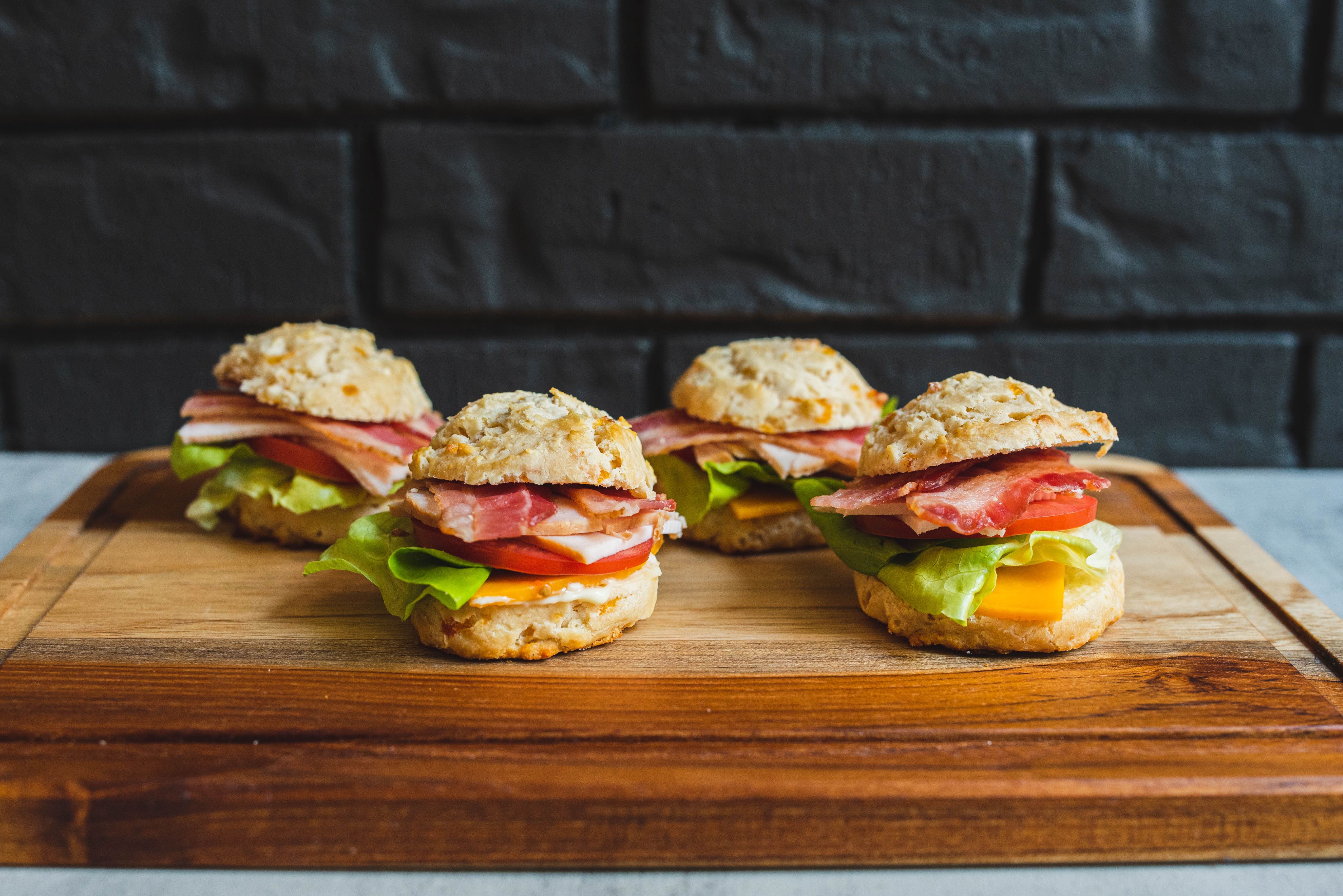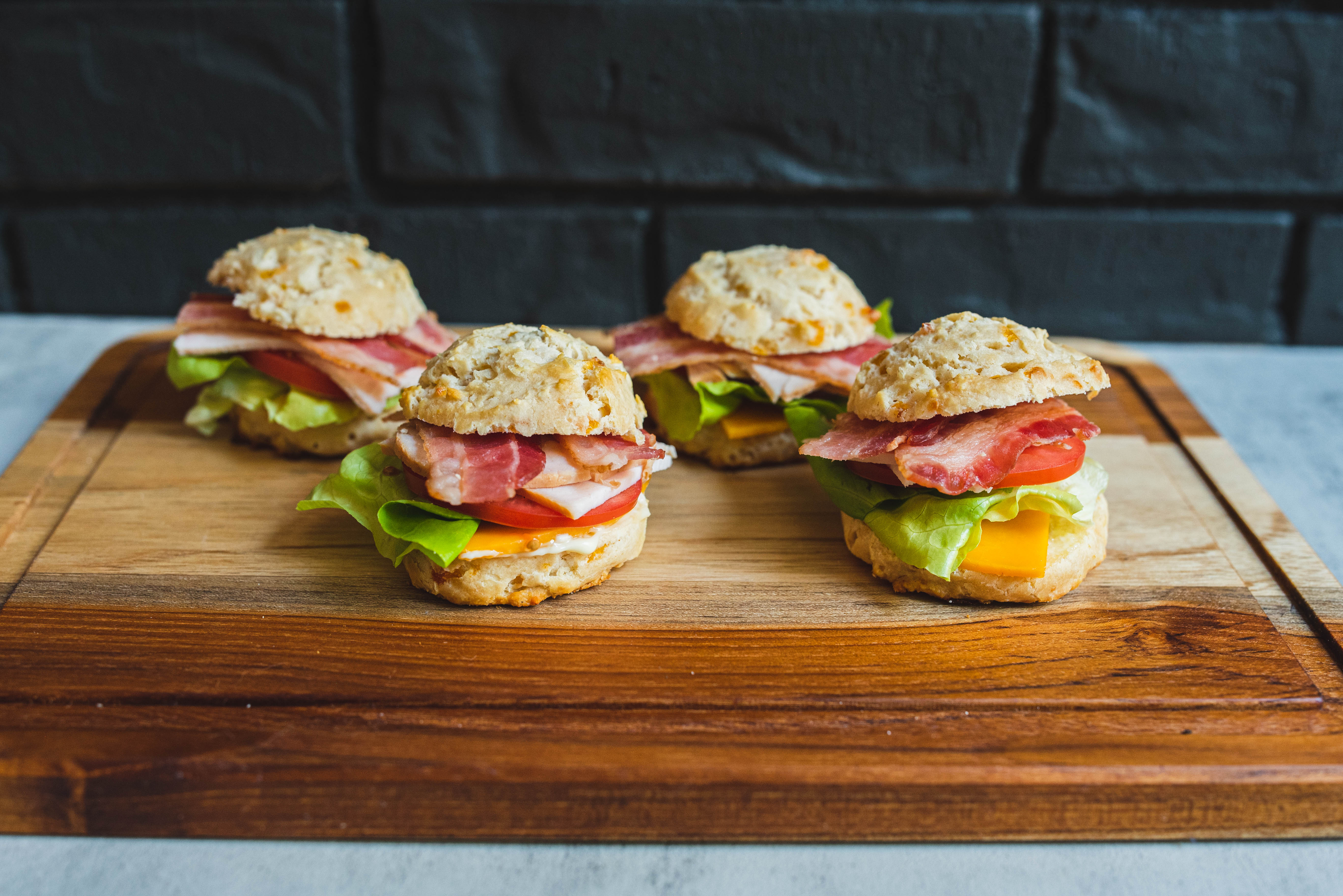 Club Biscuits certainly stack their flavors high! The buttery, cheesy biscuits are each filled with the classic fixings of a club sandwich: crisp lettuce, juicy tomato, savory turkey, crunchy bacon, and creamy cheese. There's something just so lovely about a good club sandwich on good bread (or in this case a good biscuit)! You'll know that's true when you sink your teeth into a couple of these Club Biscuits!