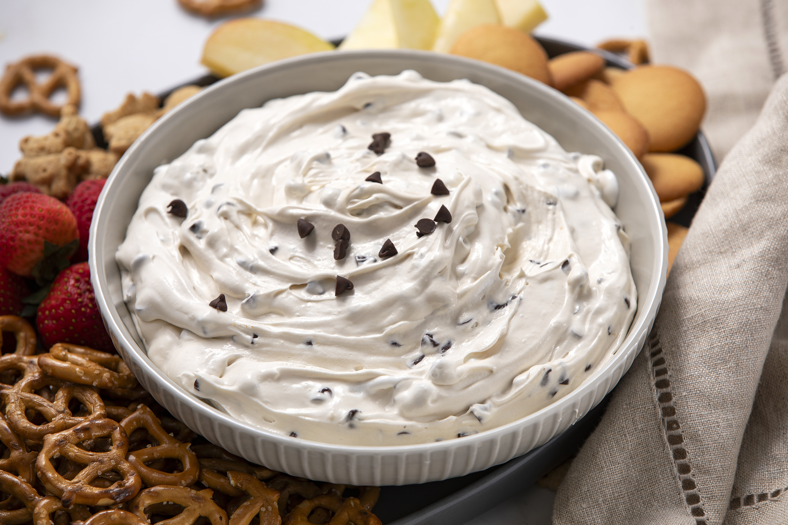 Got the craving for a cookie but not the patience to wait for one to be baked or bought? This Cookie Dip is here to be the solution to your salivating! In under 10 minutes (yes!!), you can have a sweet, creamy, chocolate-chip-cookie alternative that's perfect for dipping anything you have on hand! Whether it be pretzels, fruit, vanilla wafers, or whatever else you can rummage up, Cookie Dip tastes good with it! And before you know it, this delicious dip will be the new craving you're yearning for! Get to dunkin'!