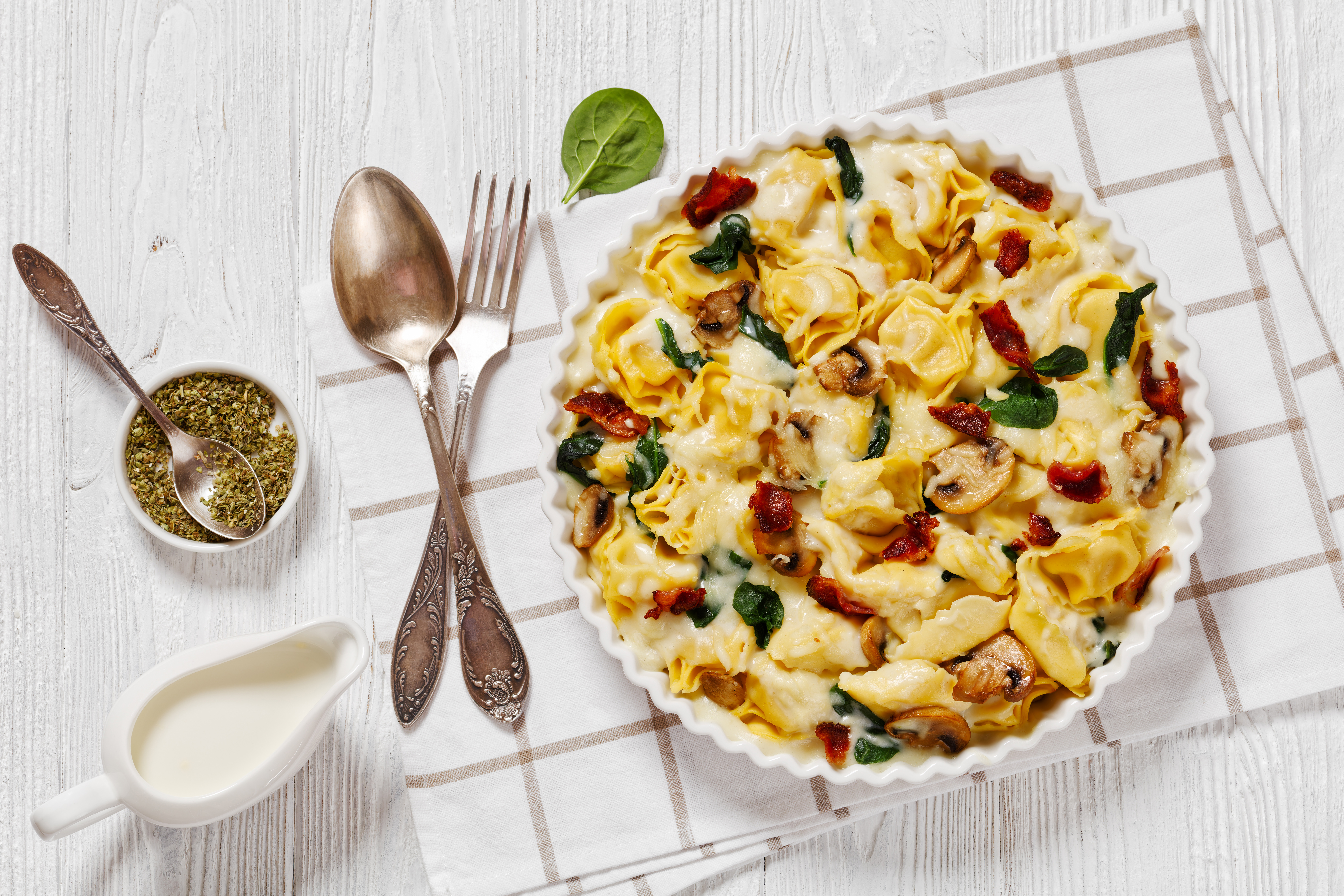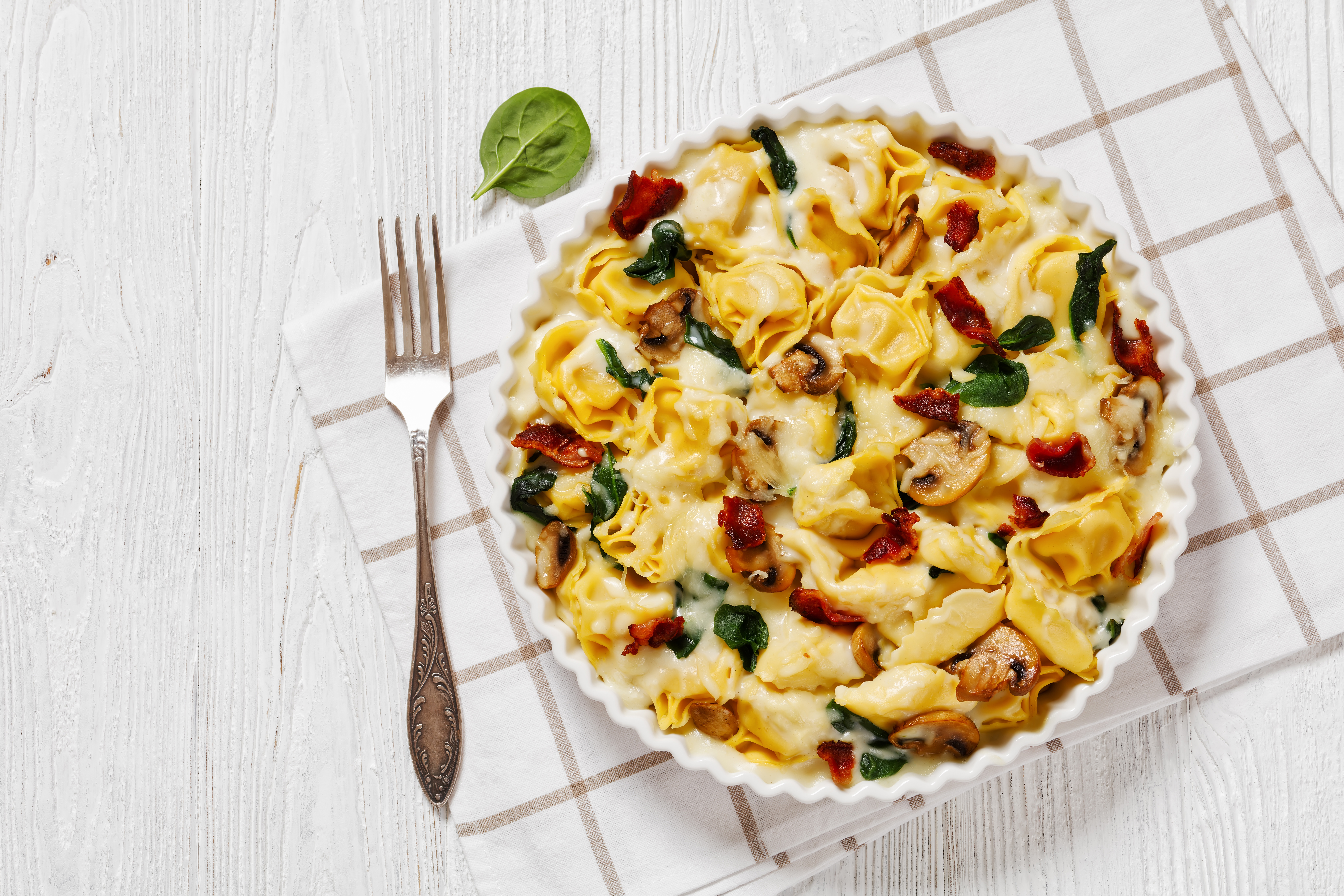 Inspired by Olive Garden®, this Copycat Tortellini Casserole is how pasta should be made! Cheesy, tender tortellini baked in a rich and fragrant cream sauce, surrounded by beefy mushrooms and succulent bacon crumbles. It doesn't get much better than that... oh wait, we almost forgot about all the sharp, melted cheese! So, it does get better than that! Copycat Tortellini Casserole is comfort food at its most cozy, and the bonus is that you don't have to leave the house to experience it!
