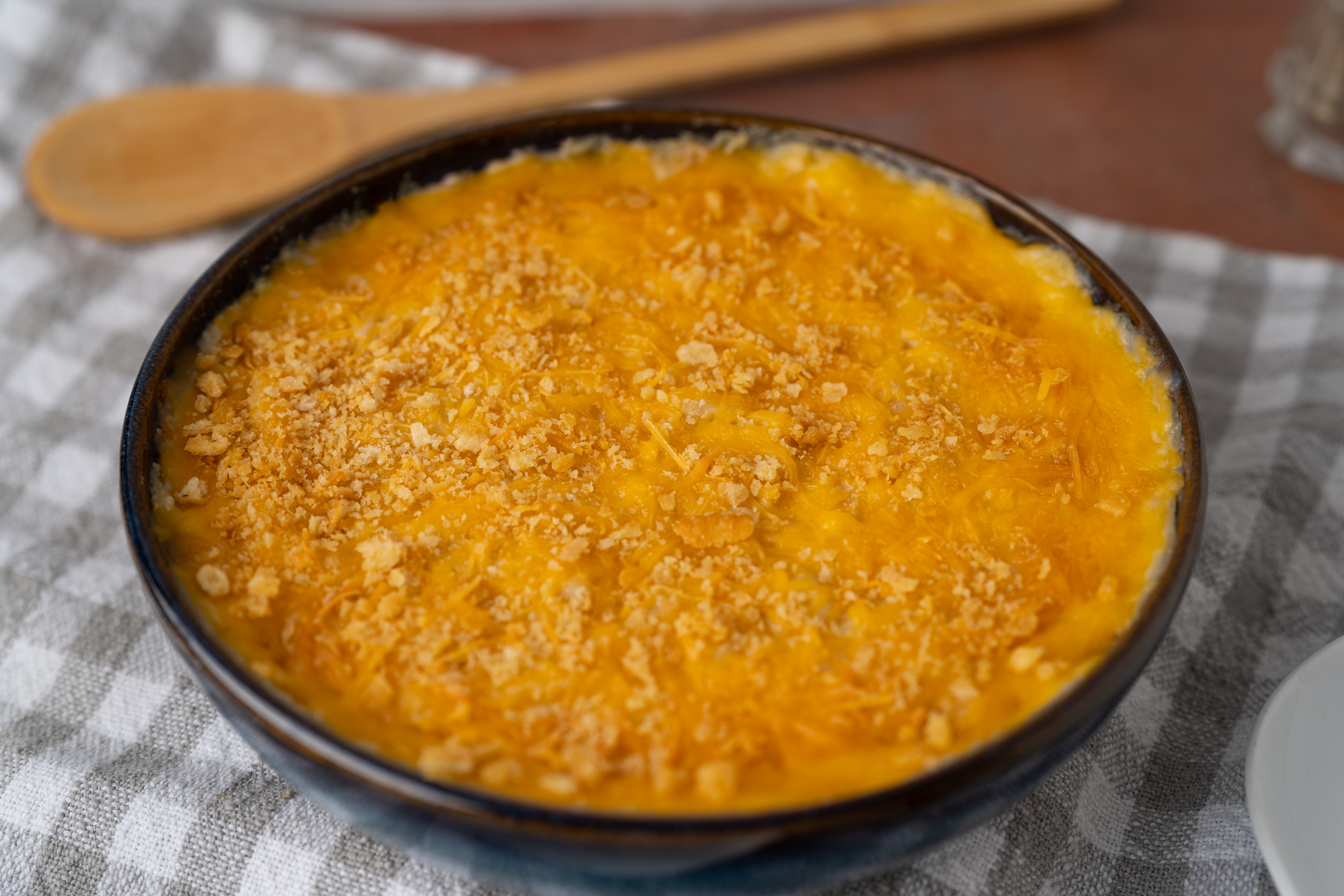Fancy up your ho-hum dinner with a side of this Corn Au Gratin! Your tastebuds will gasp with delight as they experience the creamy, savory, white sauce-coated sweet corn bursting with elaborate flavors. There's a little bit of crunch, thanks to the buttery crackers, and a whole lot of yum, thanks to the melty cheese sprinkled on top. Your chicken dinner will surely be a winner, as long as you serve it with this Corn Au Gratin!