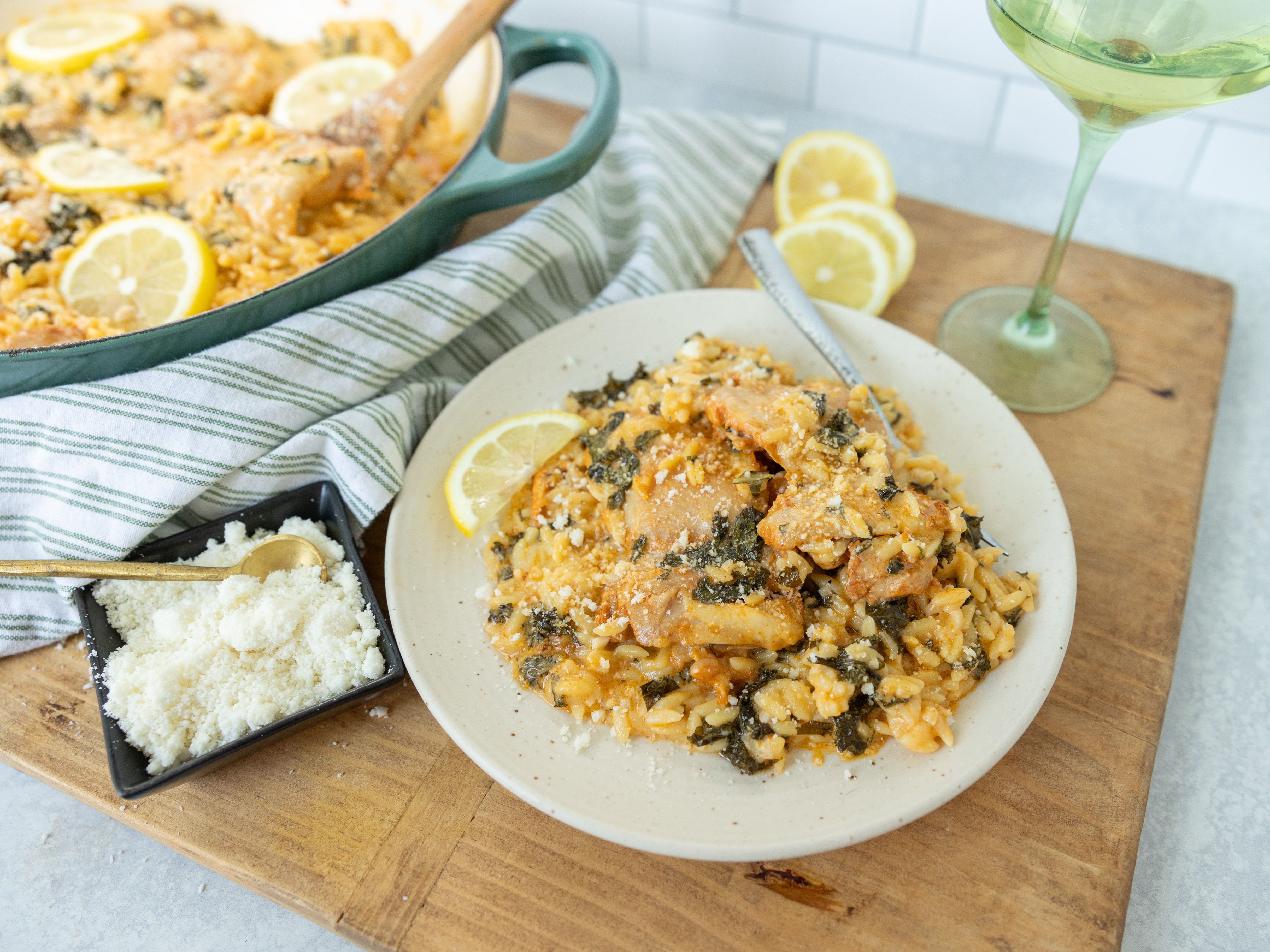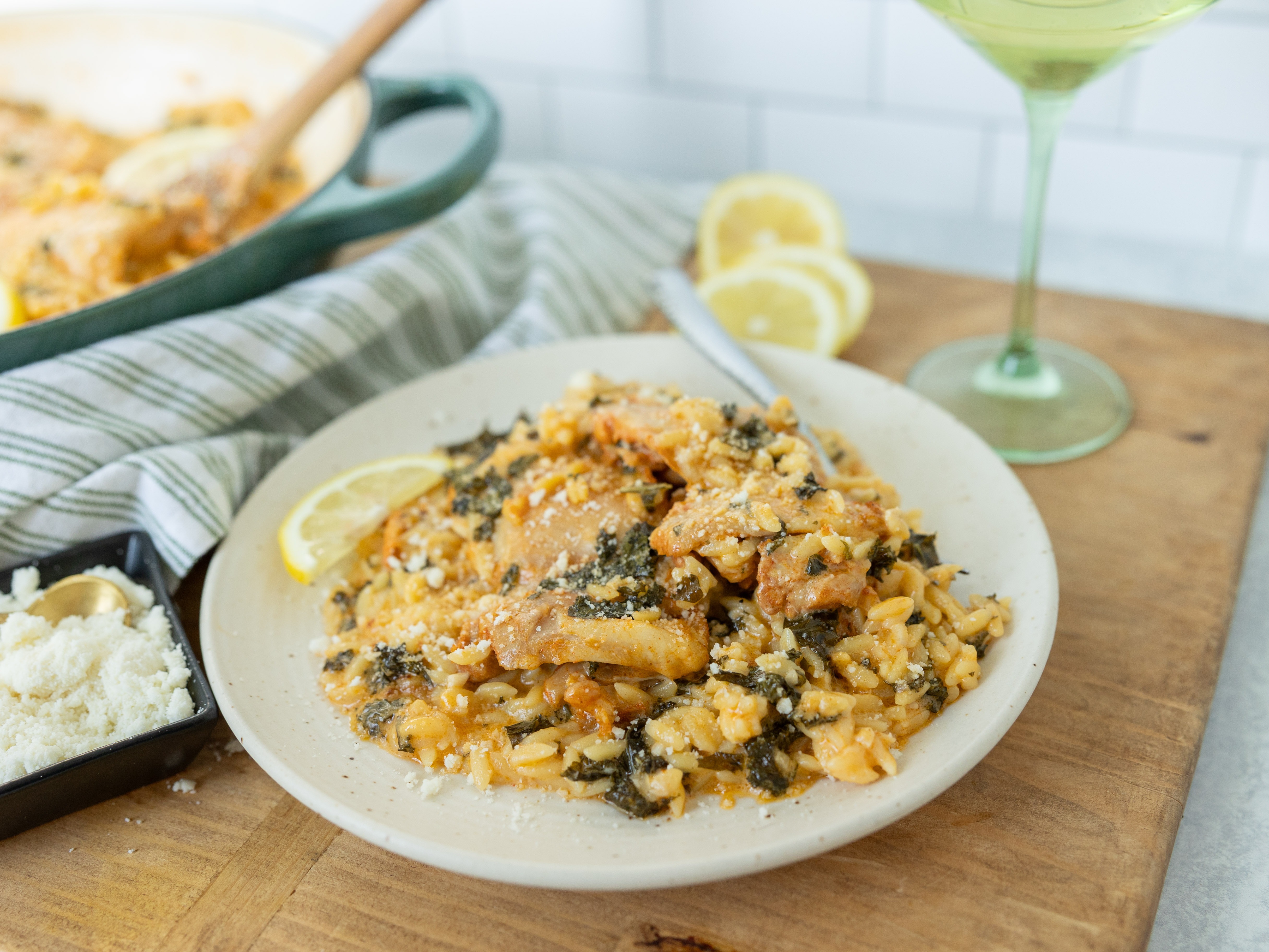 Dinner is gonna be fun tonight! Serving this Crazy Cajun Skillet can only lead to good flavors and even better times. The Cajun-crusted chicken nestled into the creamy, citrusy orzo concoction will certainly create a party in your mouth. Get ready for great vibes and even better tastes with the Crazy Cajun Skillet!