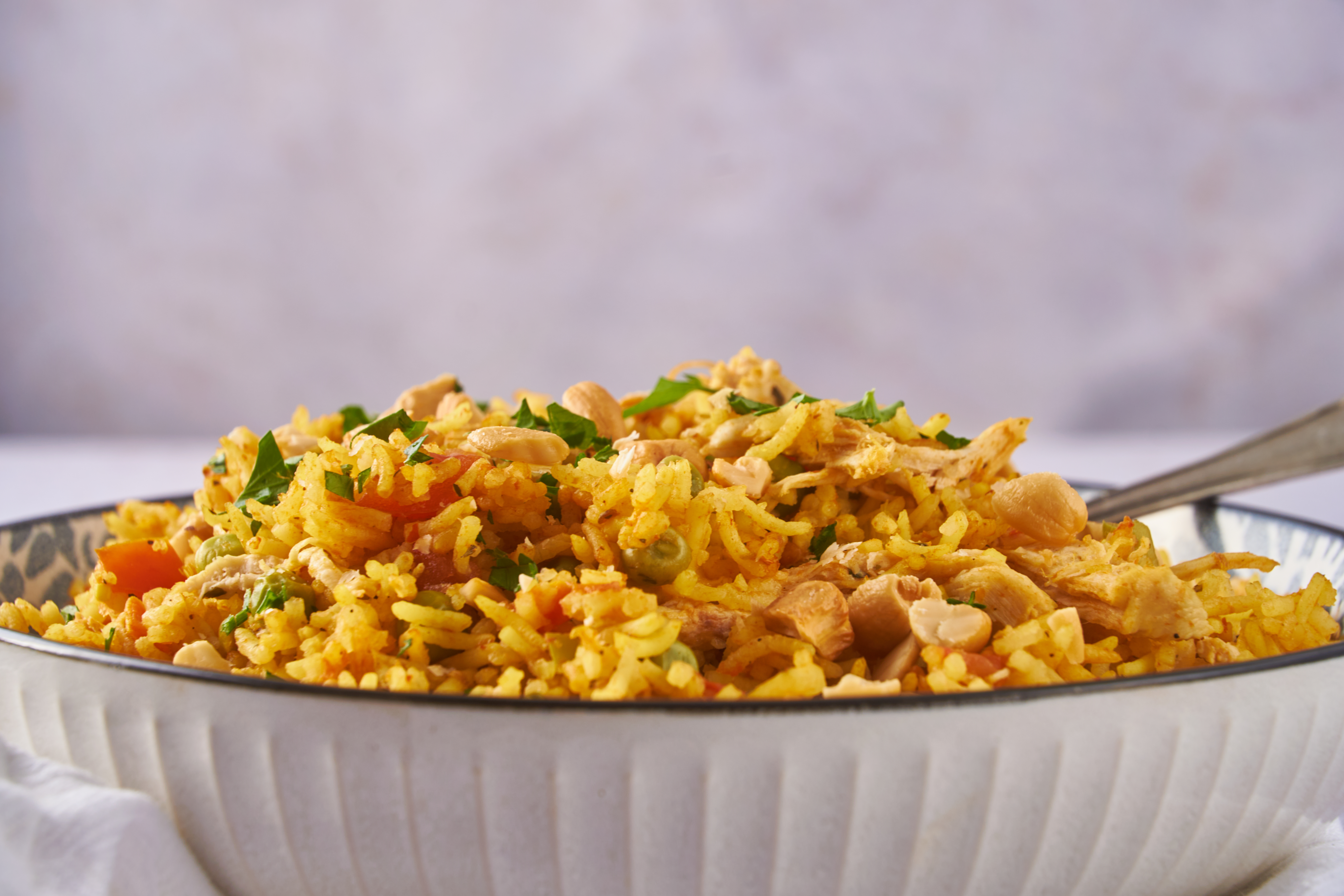 Some cravings come on suddenly. Curry Chicken & Rice will quickly satisfy that craving in no time at all. Transform that ravishing rotisserie chicken into a curry-seasoned and remarkable rice dish in about 30 minutes. No time to waste; when you are wanting some real food, real fast, this Curry Chicken & Rice will quickly become a "hurry up, I'm hungry" mainstay in your lightning-speed meal highlight reel. Sometimes living in the fast lane is fabulous. Enjoy it!