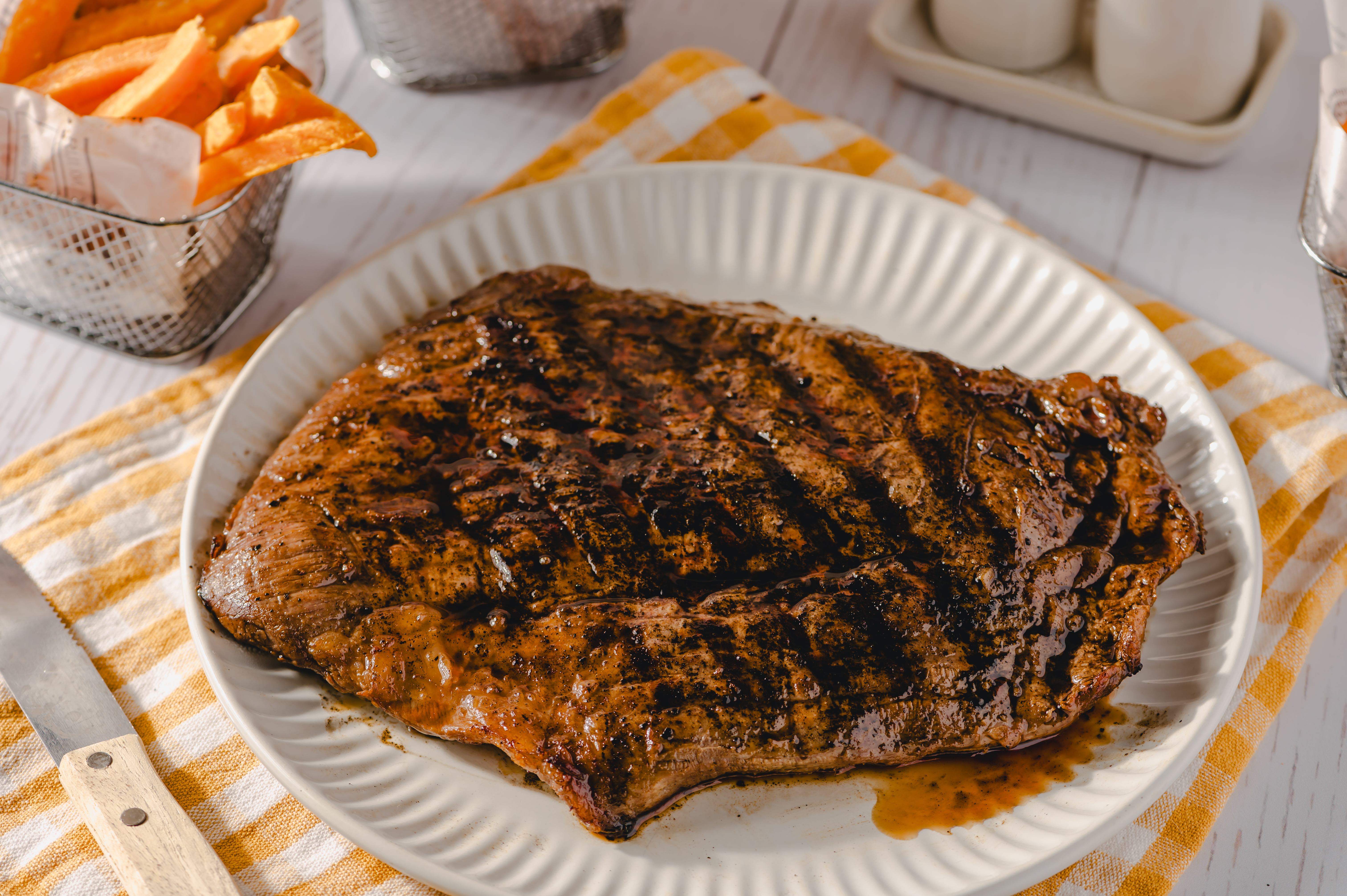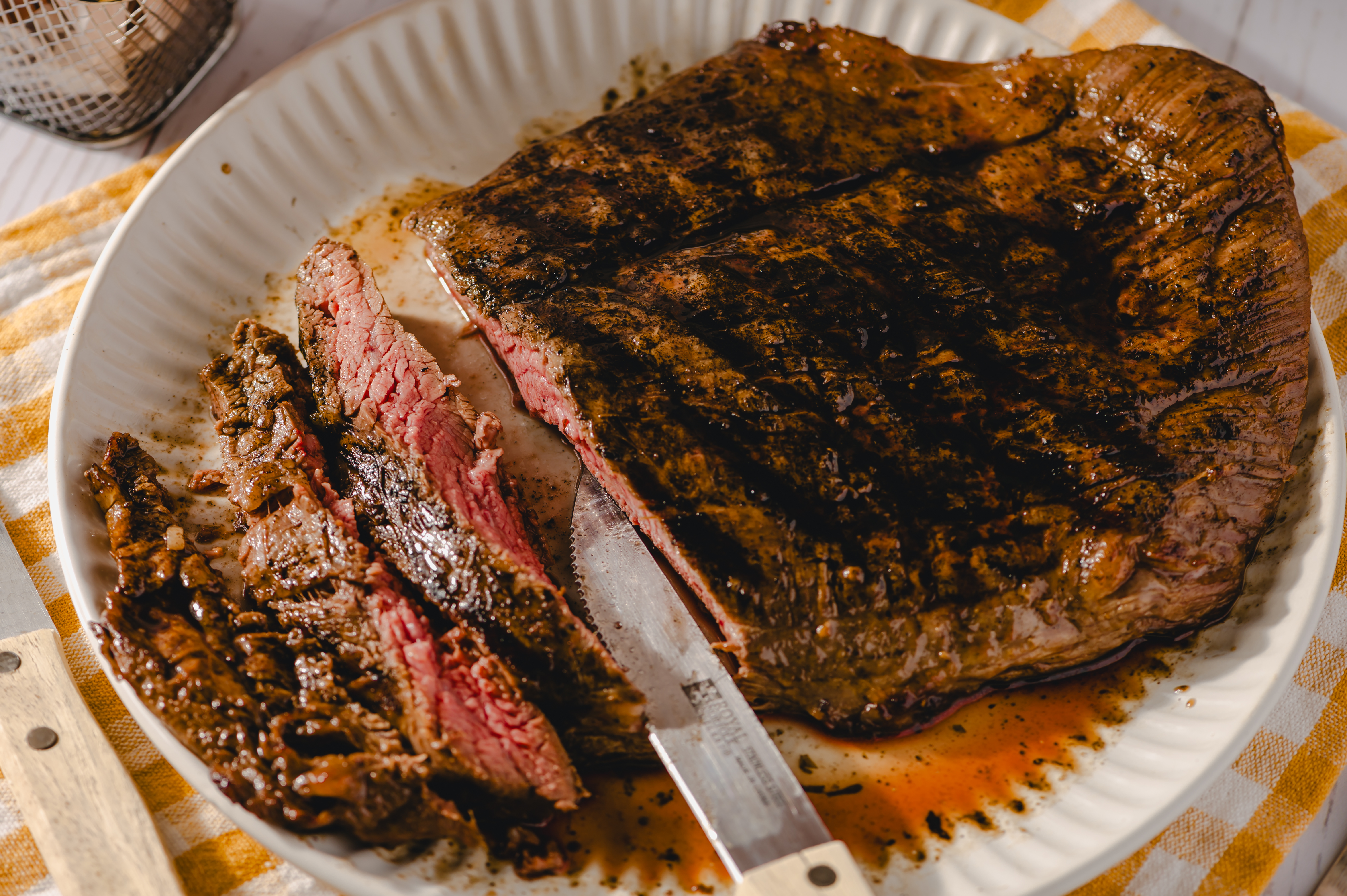 Step 10 -Slice the steak against the grain and serve.