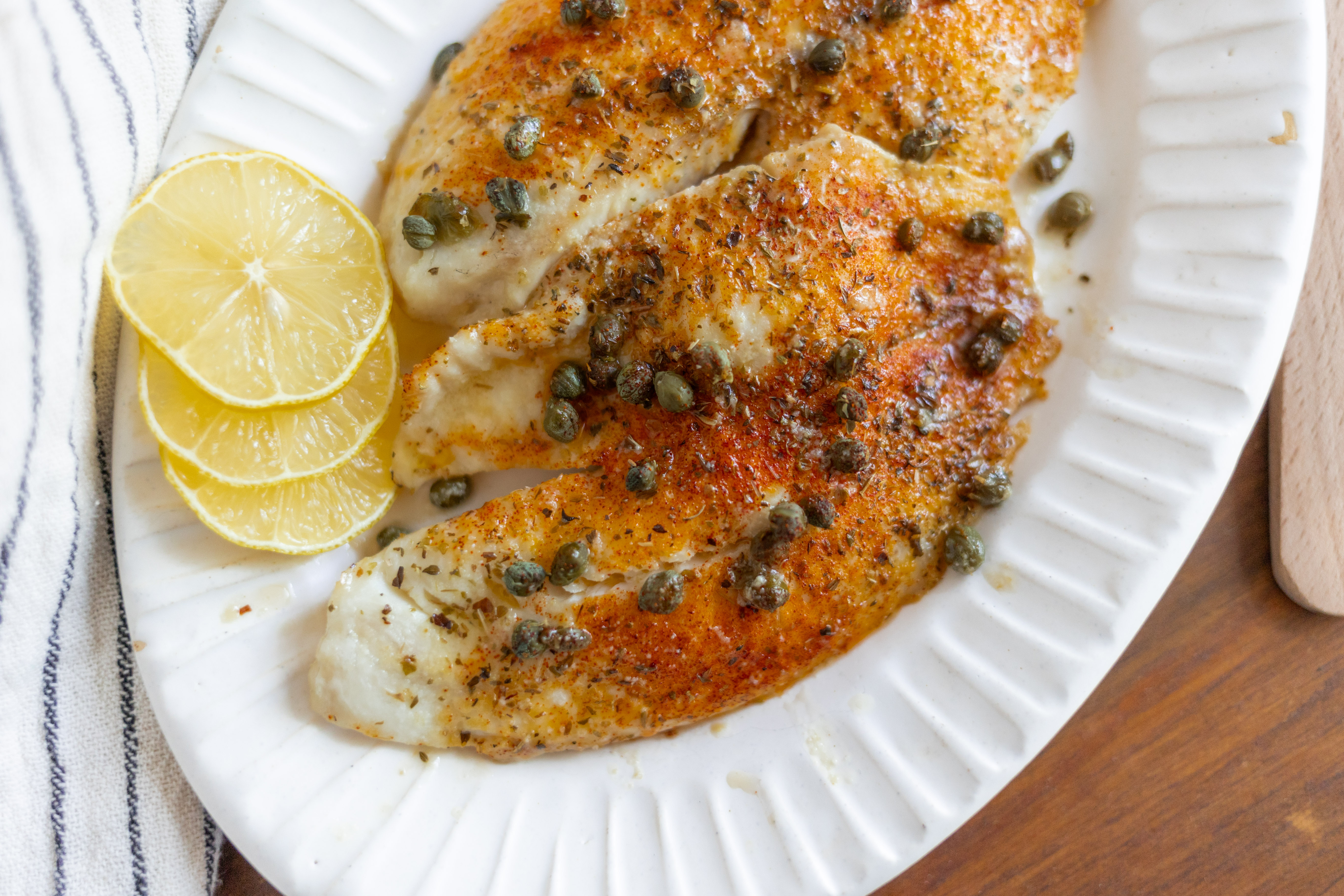 When easy and light are on the menu, we have a new addition for your "watch what you eat" list. Easy Baked Fish is just that... so easy and so, so good! Tender, flaky tilapia fillets are swimming in a delicious garlic-lemon-caper sauce, then seasoned and baked to fish-loving perfection! So, cast your line out to a new way of eating. Easy Baked Fish is the best catch around! It will get you hooked!