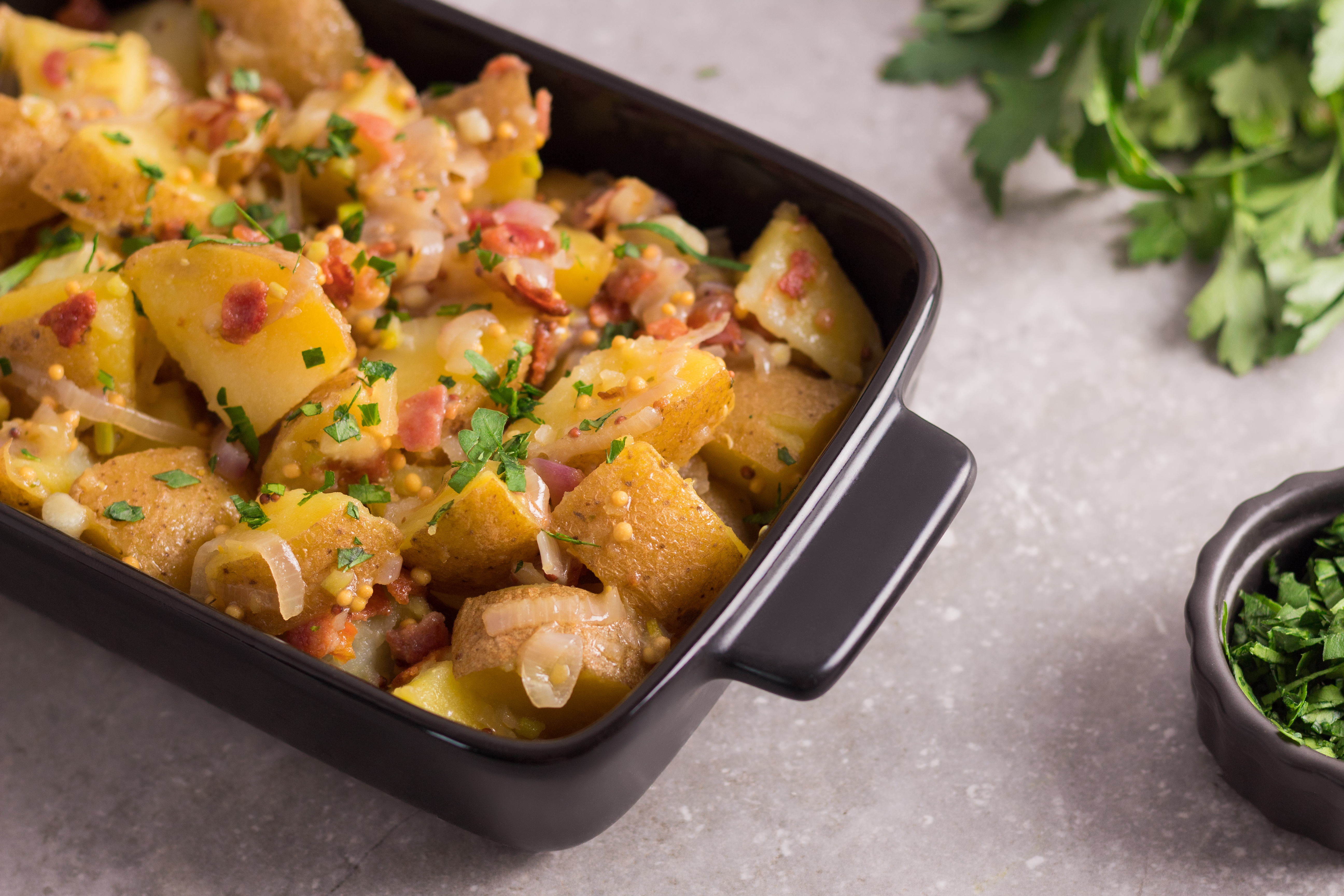 The Germans sure know how to do potato salad right, and this Easy German Potato Salad proves it. The potatoes are, of course, tender and melt in your mouth yummy with the first bite. However, the sauce isn't just plain mayo, but rather an extra savory and tangy sauce that really takes Easy German Potato Salad to the next level. With bacon crumbles to increase the succulence and tastiness, this is one of those side dishes that you'll actually crave more than the main dish!