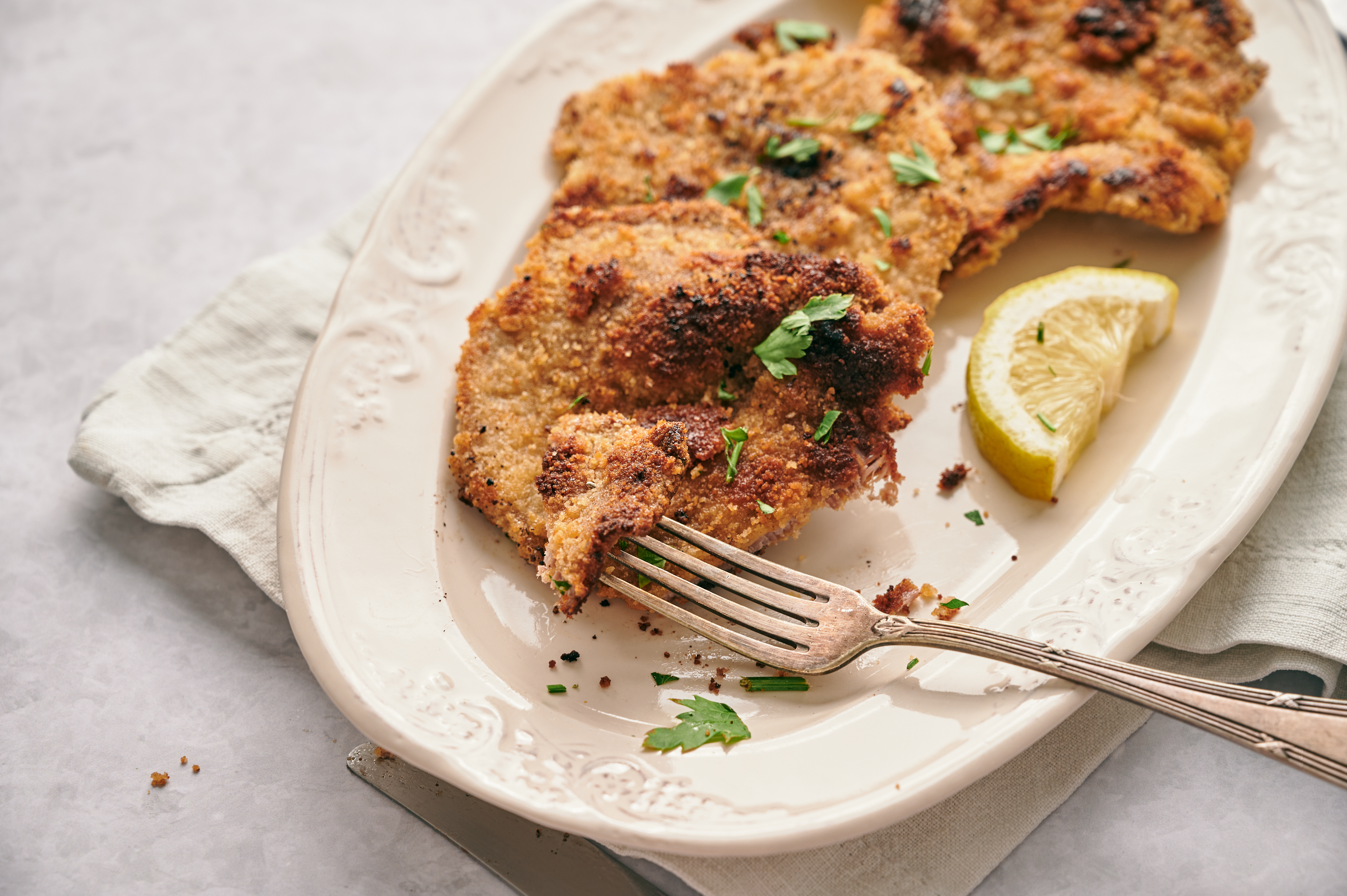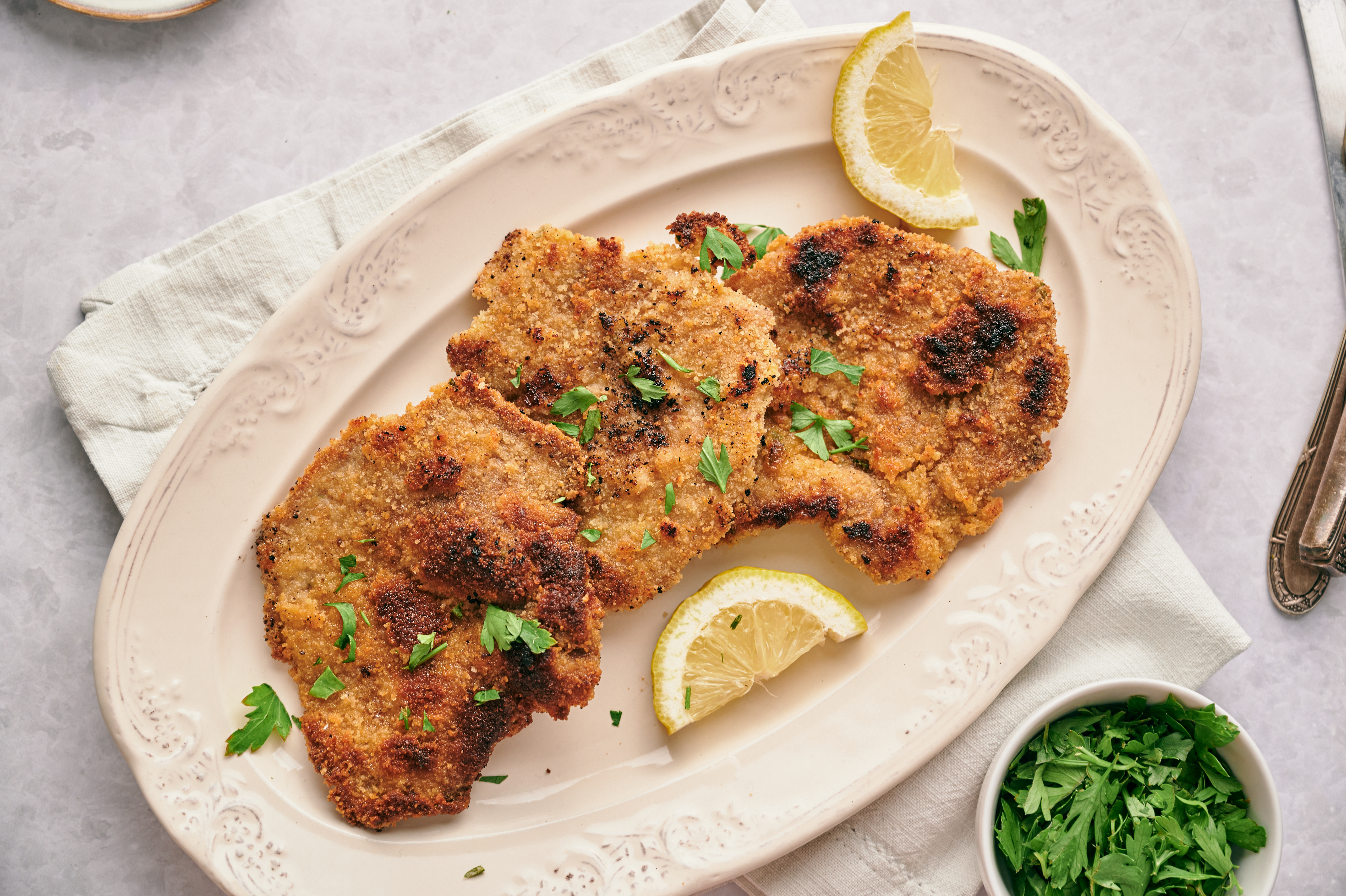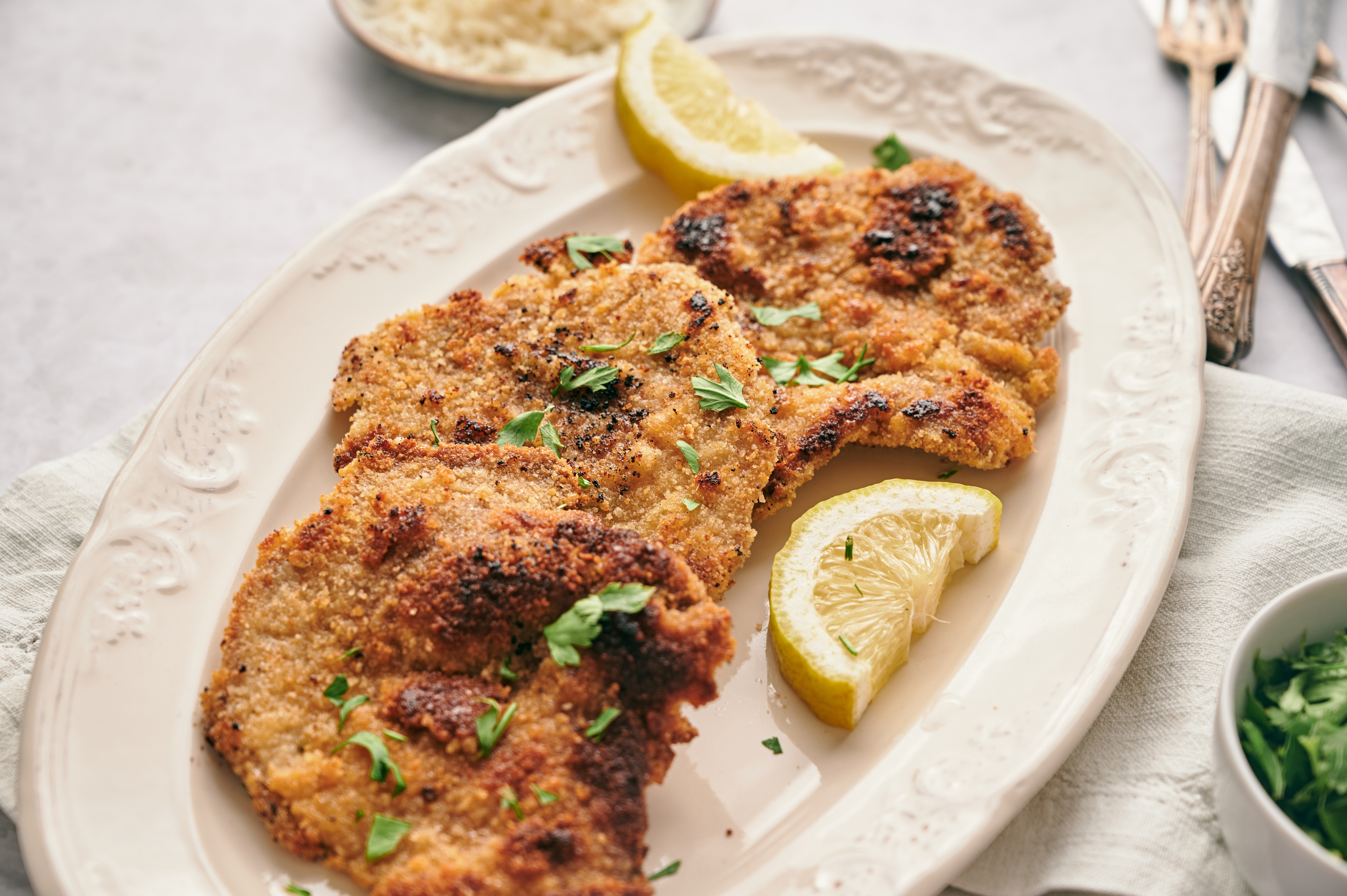 Easy German Schnitzel makes the classic dinner much more accessible, but just as delicious! It's hard to argue with tender veal cutlets coated in herbs, spices, and crunchy breadcrumbs, and doubly hard to argue when they're pan-fried in rich butter! Golden-brown, savory, crispy, and fragrant, Easy German Schnitzel will make dinner a breeze every time!
