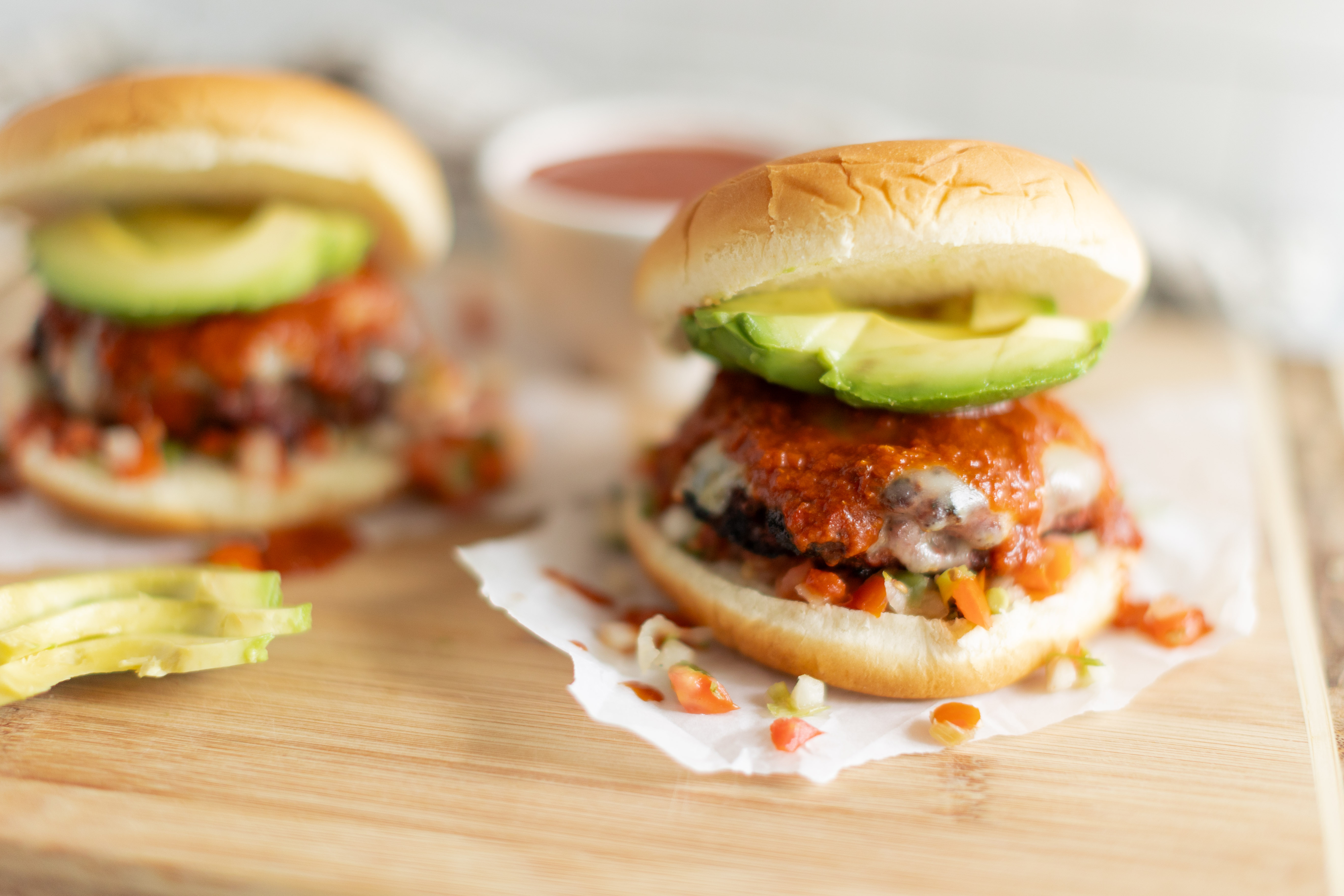 Food fusion is just so much fun! It's even better when it's actually delicious, too. Well, you can count on this Enchilada Burger to be equal parts fun and yum! Secured between your favorite, fluffy hamburger bun is a juicy, Tex-Mex-seasoned patty that is topped with melty cheese, zesty enchilada sauce, fresh pico de gallo, and smooth avocado slices. Doesn't that just sound amazing? This cuisine combo is more on the Tex-Mex side with an American classic foundation, and we're just obsessed with it! Who's ready to try something new and exciting?! This Enchilada Burger will satisfy all of your adventurous cravings!