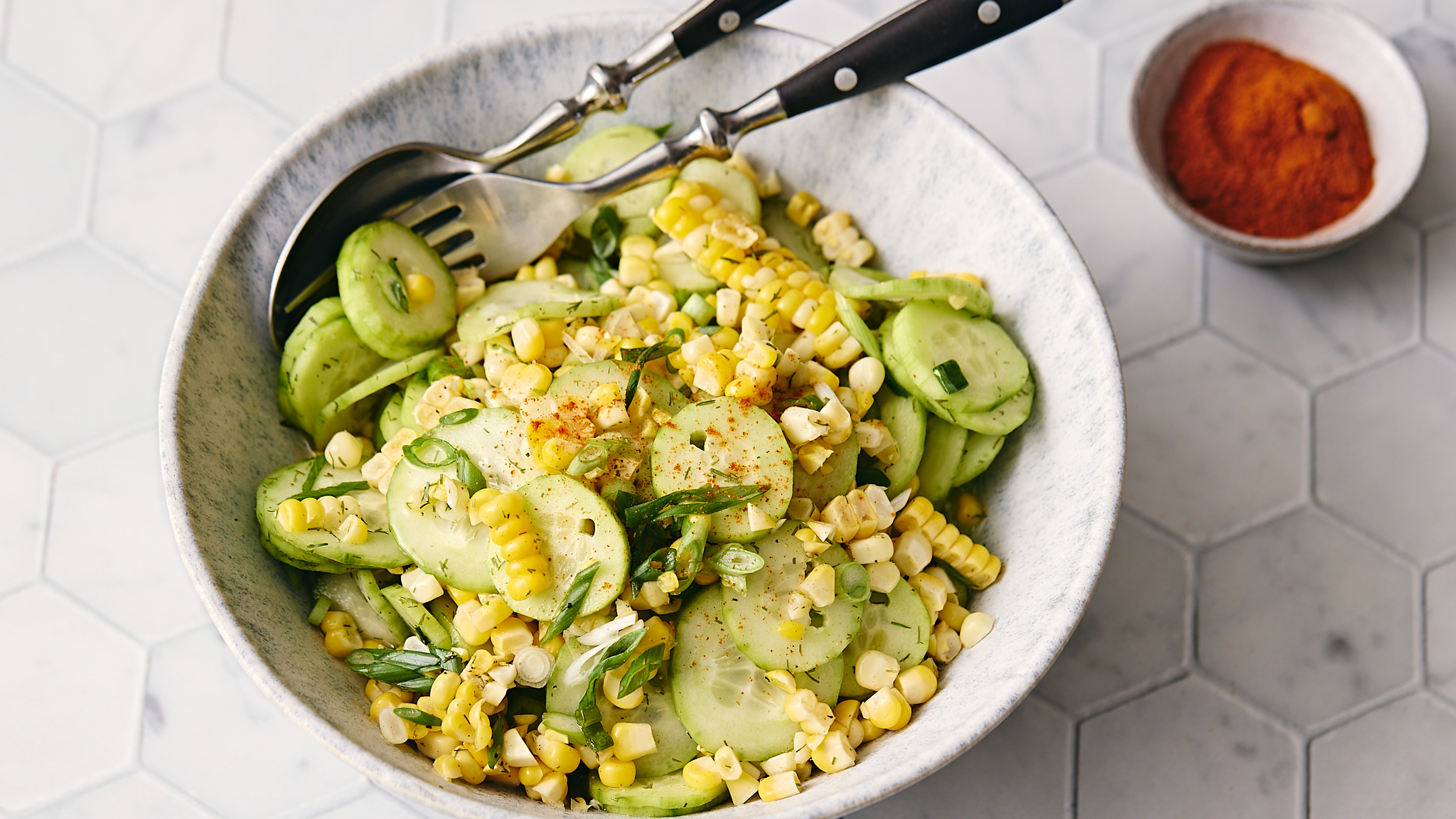 Whether you were the captain of the football team, drum major of the band, or president of the FFA®, there was something for everyone to enjoy back in the good ole days. And just like all the fun options you once had, Extracurricular Salad has a little bit of everything in it, ensuring it'll be loved by many! The crisp cucumbers, juicy corn, and zesty green onions come together with a sweet, dilly, vinegar dressing to create a band of flavors everyone's taste buds will be dancing to. Sign us up for Extracurricular Salad! It's just so good!