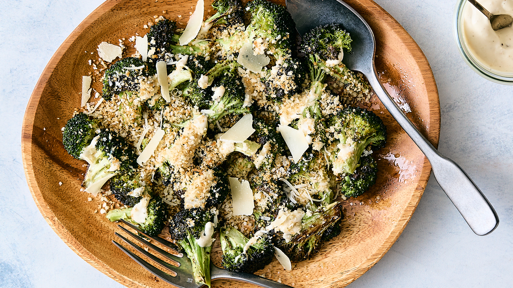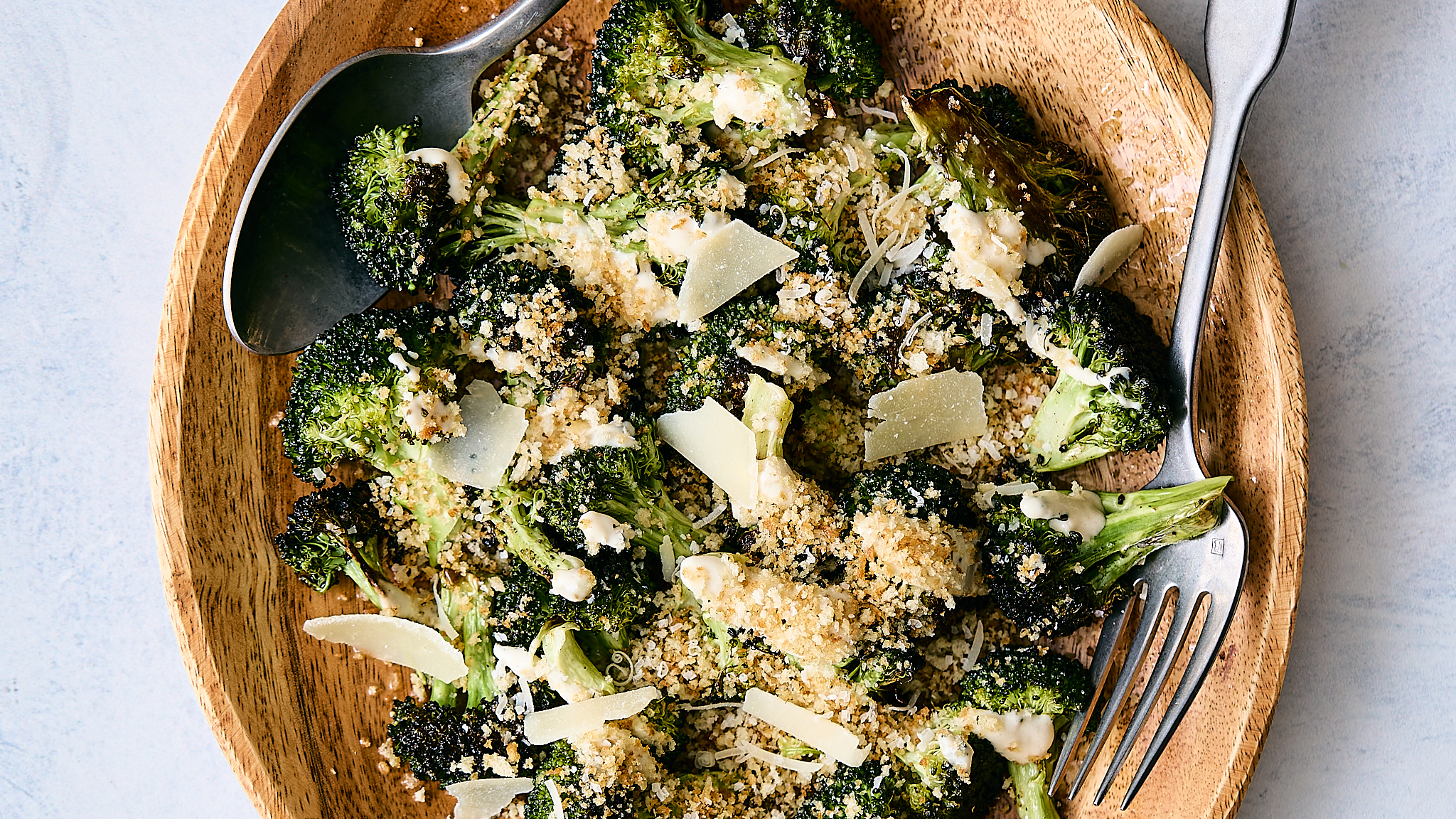 Step 13 -Serve the broccoli topped with the extra shaved parmesan and the toasted breadcrumbs.