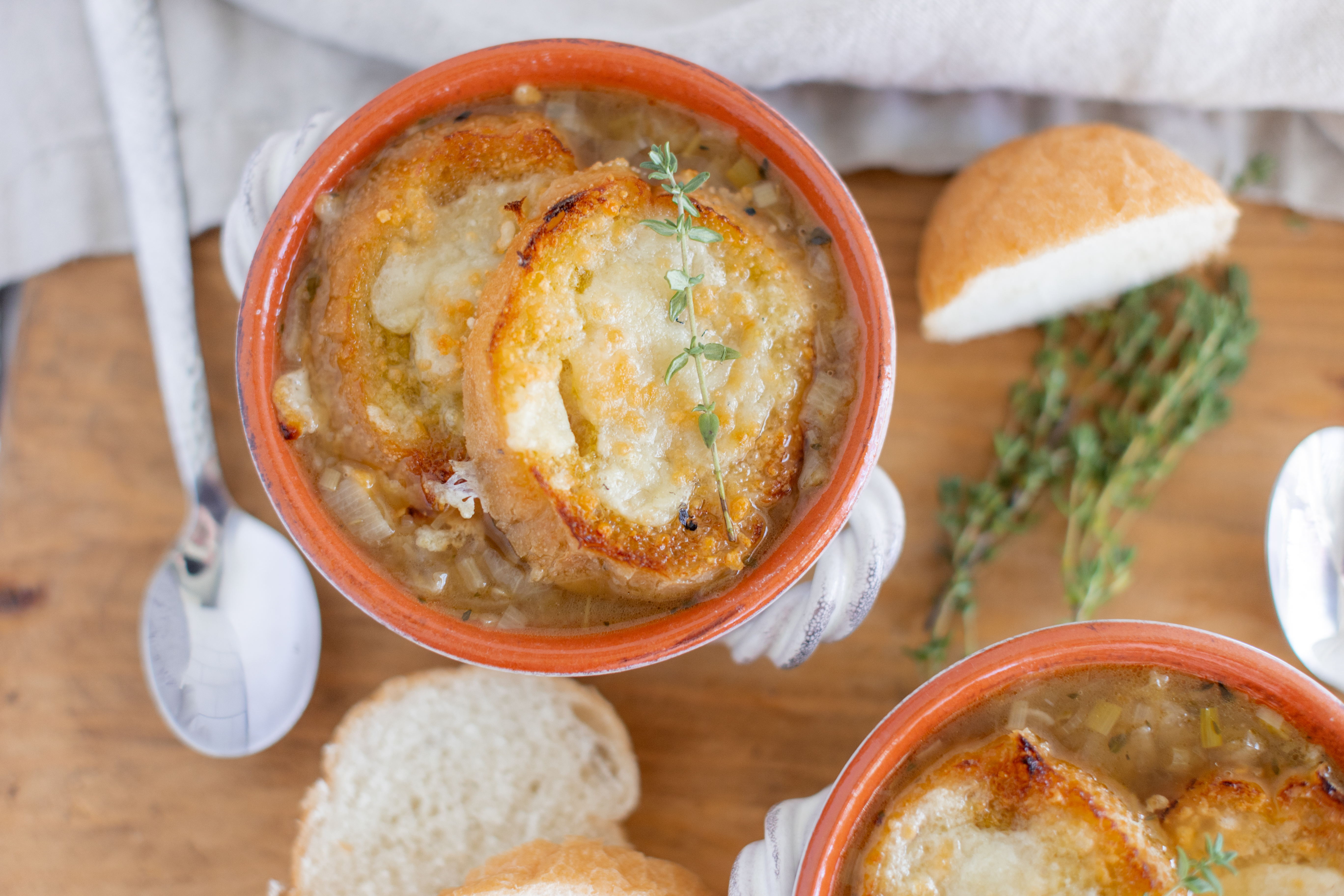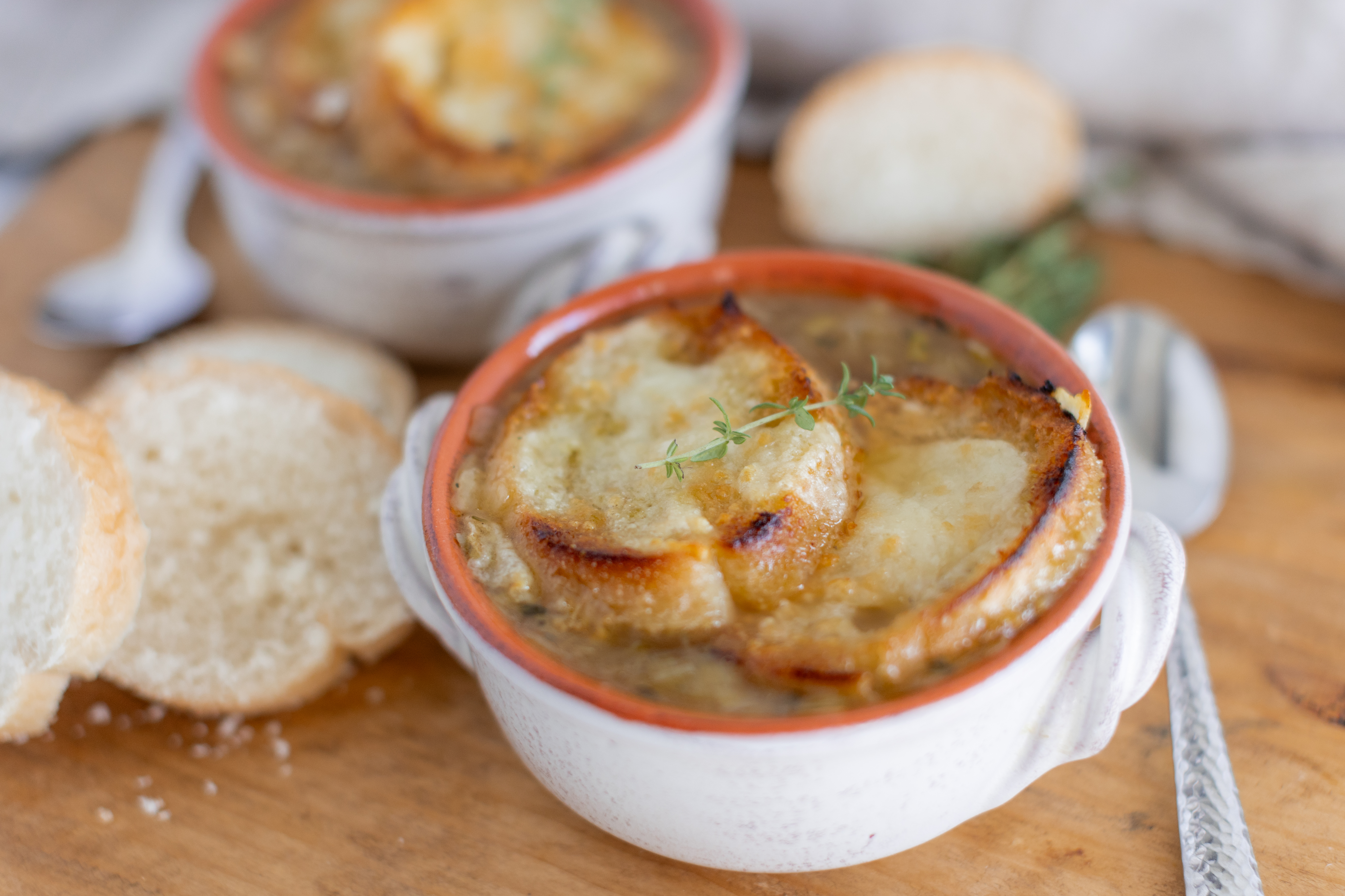 When you think of elegant, established steakhouses, those restaurants almost always serve a certain up-scale starter such as this one. Fancy Onion Soup will make you feel like you are enjoying a 5-star dining experience right in your own home. A savory, brandy-infused broth surrounds a combination of tender leeks, shallots, and onions. Each bowl is crowned with a parmesan crouton bread slice to top off this fine dining delight! Why go out? Grab a glass of your favorite wine and stay in with some homemade Fancy Onion Soup. Enjoy the finer things in life and be fancy!