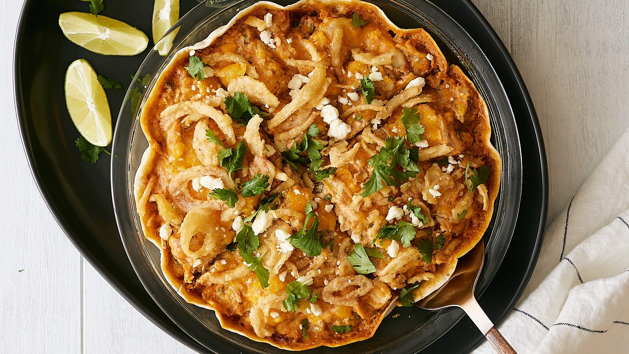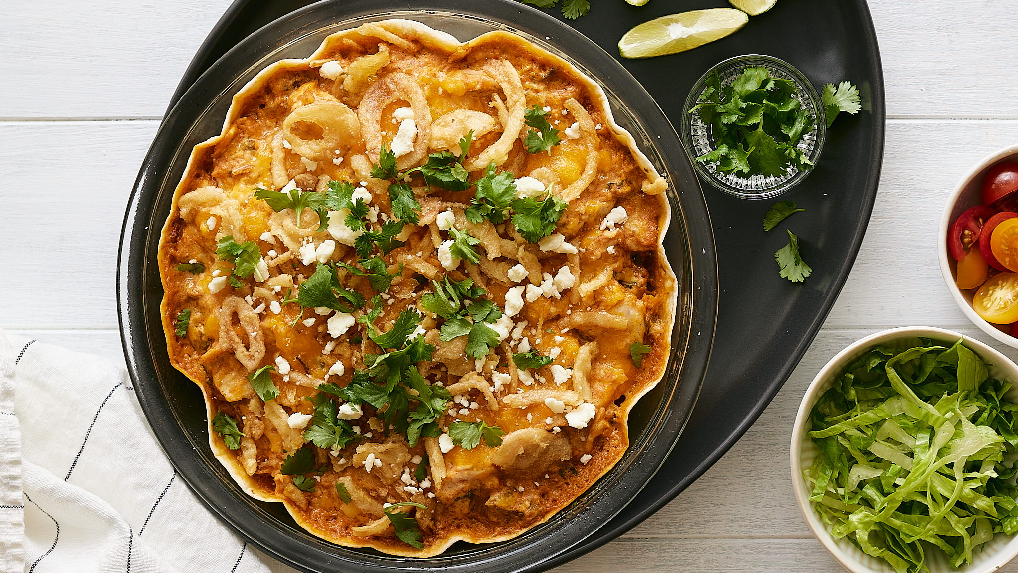When time is of the essence, as it so often is, it's the home-cooked meals that suffer. "Wouldn't a quick stop at the local fast food Tex-Mex place be quicker than making something at home?" goes the logic. Well, no longer! Fast Chicken Tortilla Casserole is speedy, scrumptious, and truly wholesome! Spicy chiles, savory chicken, and crunchy fried onions all come together with zesty seasonings to make a true Tex-Mex tribute that's just so tasty! Thanks to your microwave, Fast Chicken Tortilla Casserole is ready in just 10 minutes! That's so fast, even fast food can't keep up!