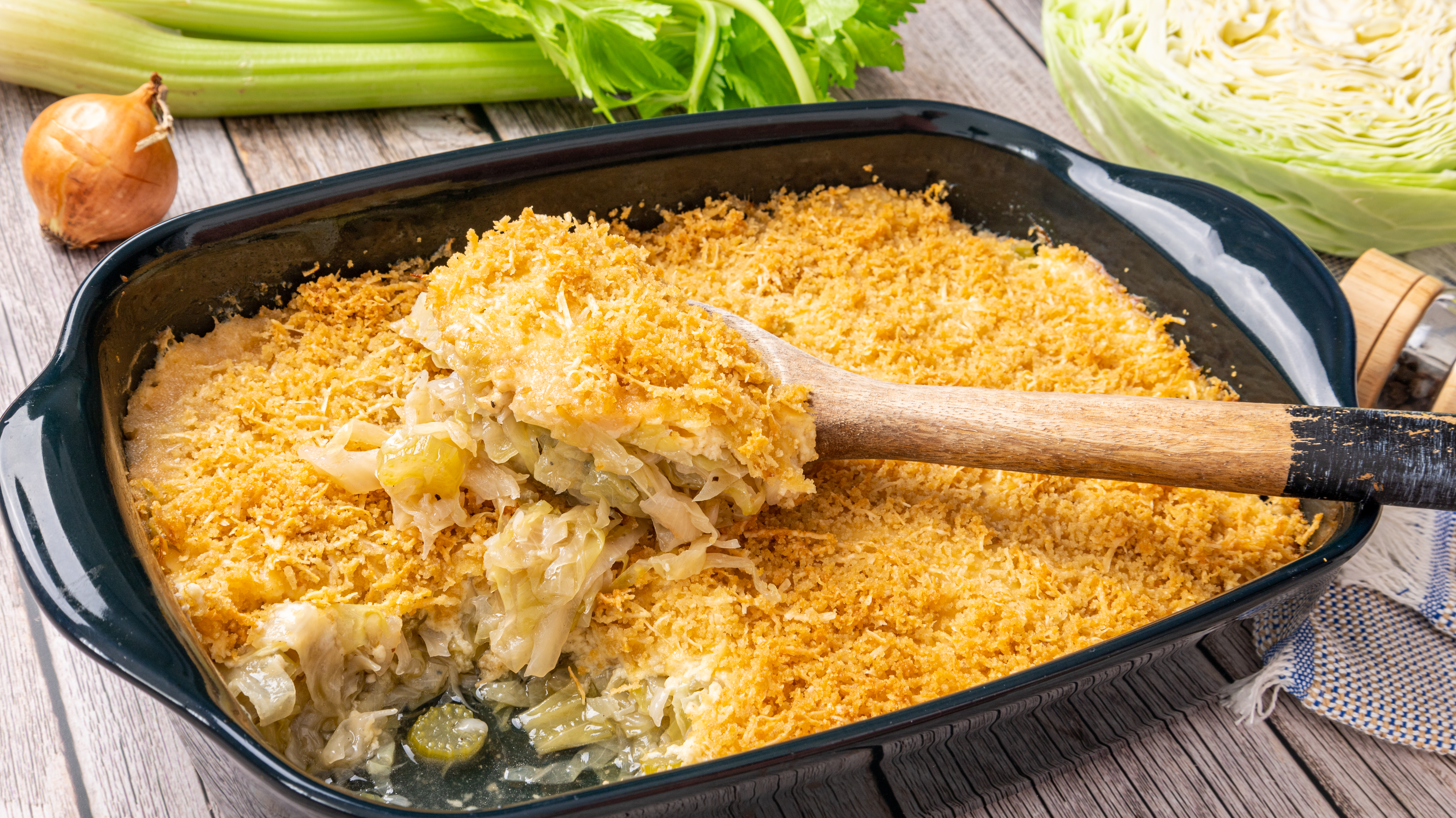 Cabbage might seem ordinary until you learn why it's everyone's favorite! It's because Favorite Cabbage Casserole has all the good stuff packed into it! A crunchy, cheesy, buttery breadcrumb topping and a creamy, savory sauce help enhance the natural sweetness and crispness of the cabbage. It's not complicated to make either, which may be also why it's the Favorite Cabbage Casserole! It's going to be a favorite in your house too!