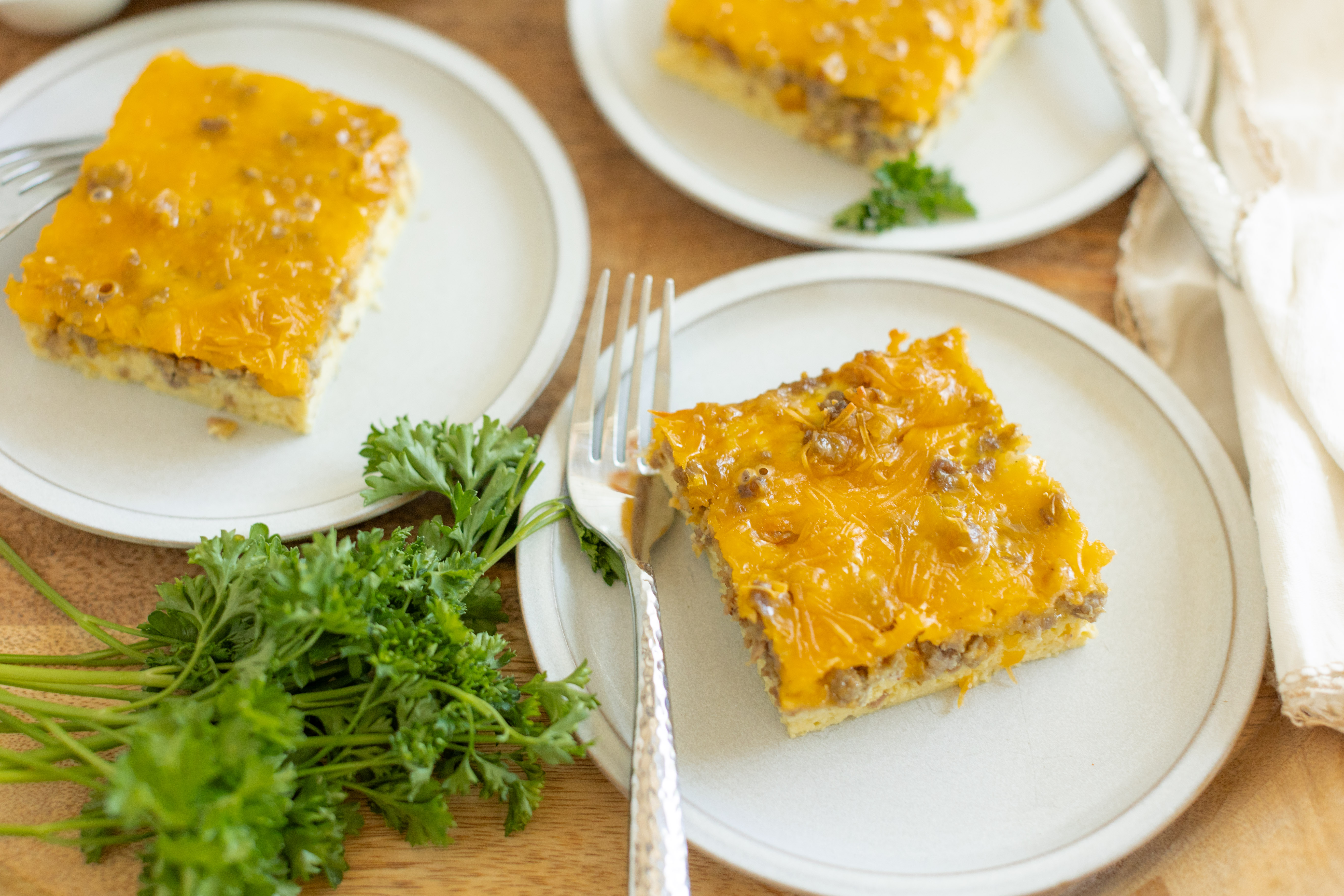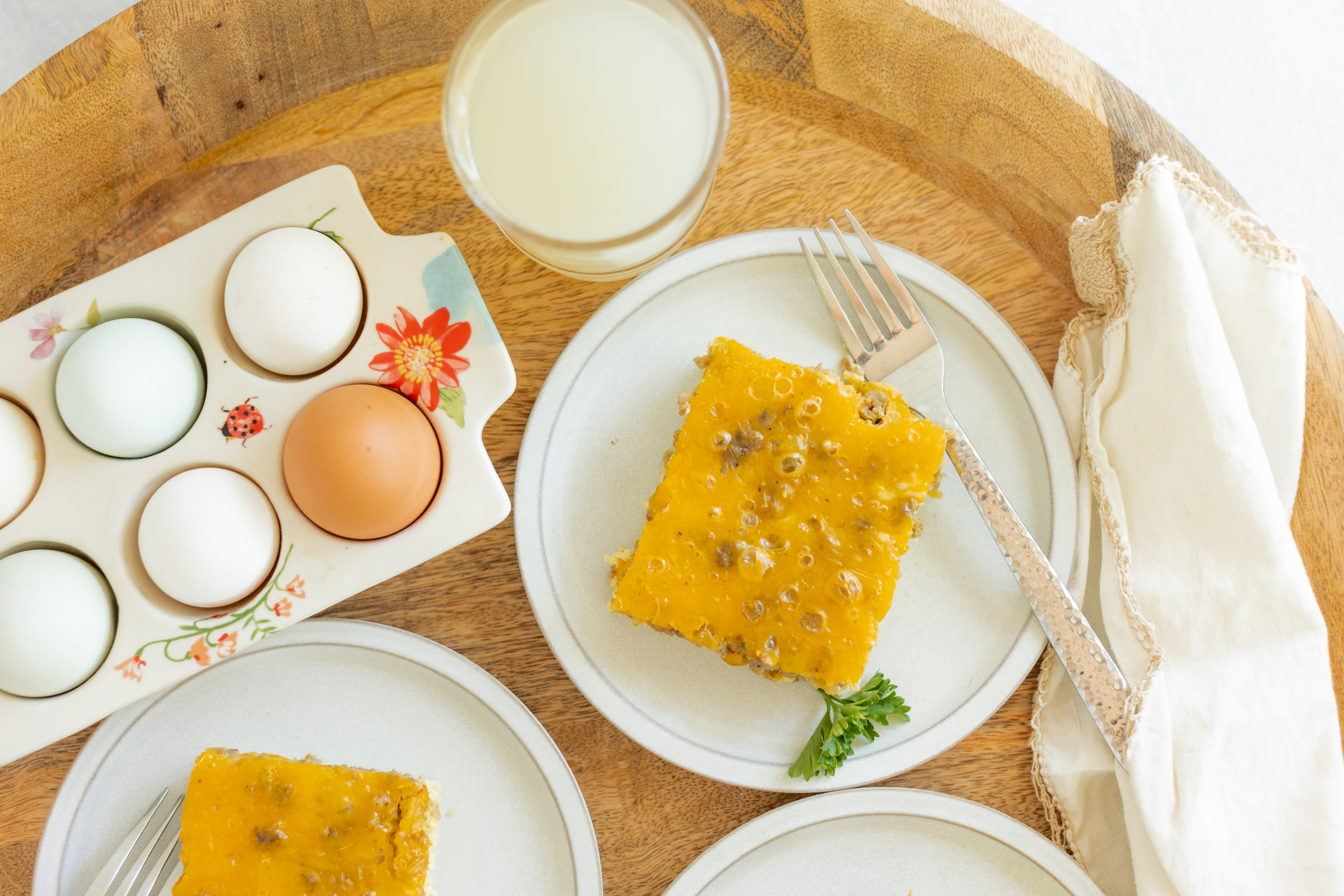 You shouldn't just wake up to any old breakfast! You deserve to wake up to your favorite! The Favorite Morning Casserole are all of those favorites in one dish, so really it should be the Favorite-Favorite Morning Casserole! A fluffy, creamy bed of eggs holds marvelous treats like sweet and smoky sausage, slices of tender bread, and a whole lot of sharp cheddar. It's like the best egg sandwich in the world in casserole form! How could it not be a favorite?