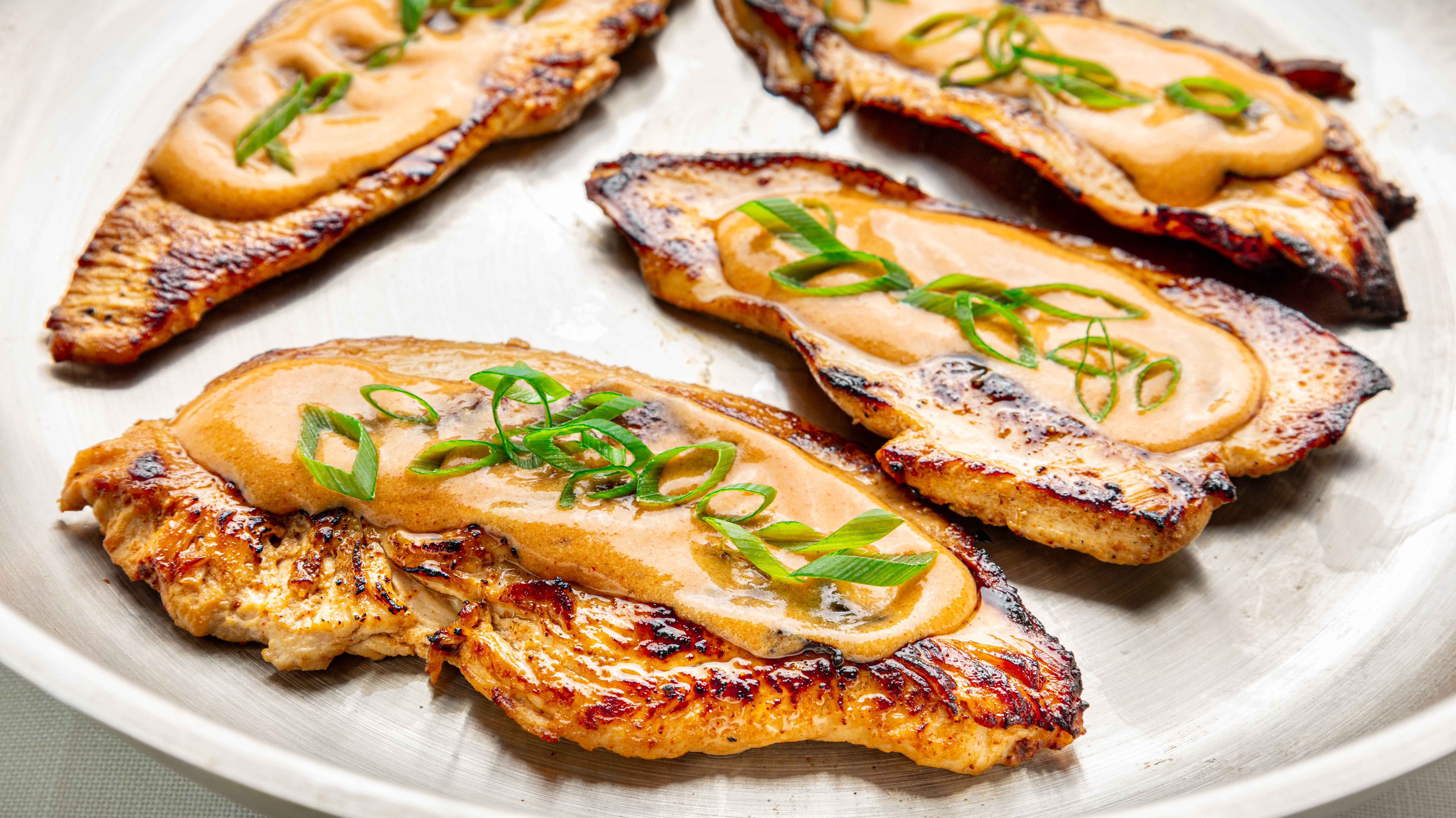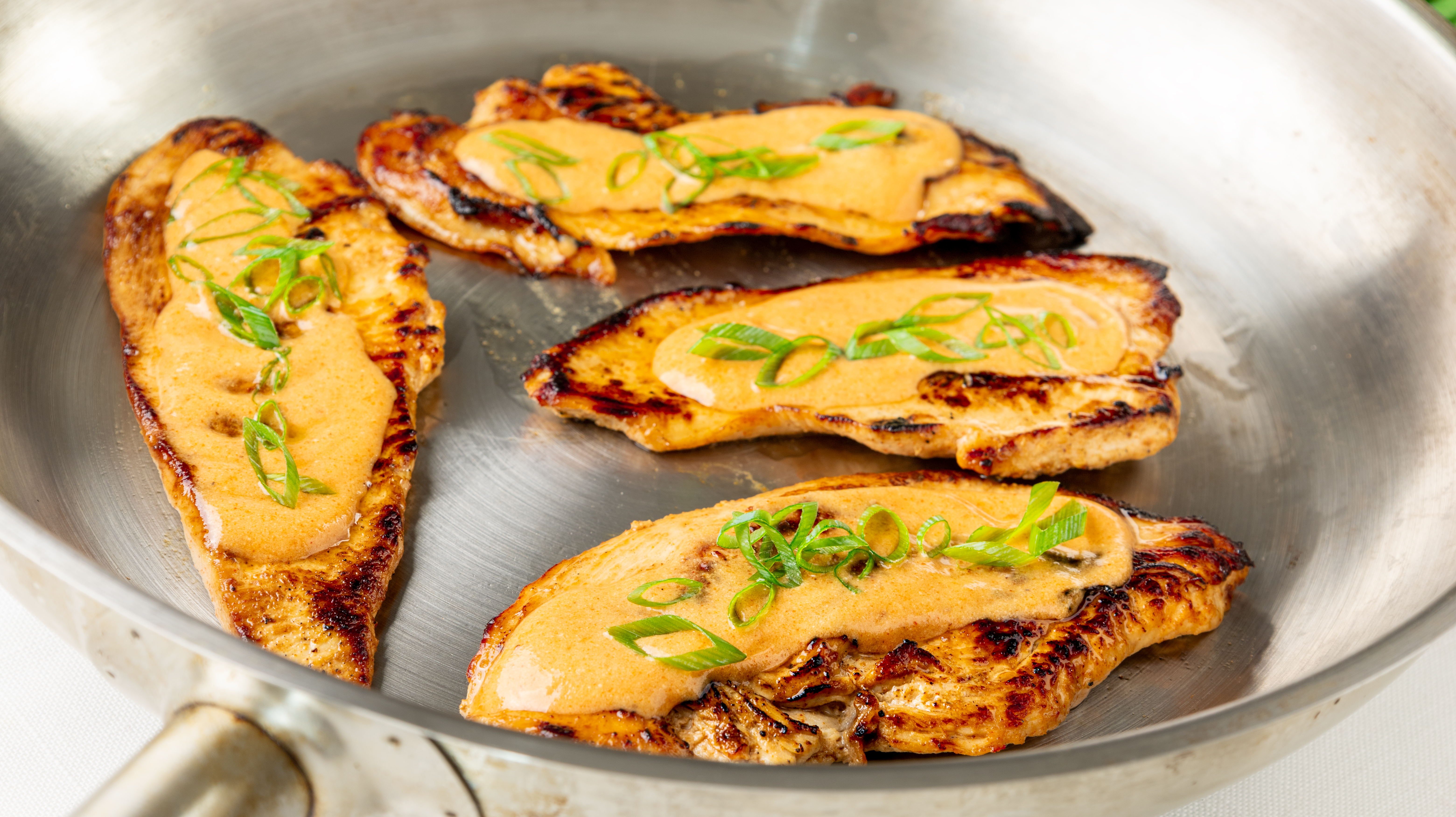 Step 10 -Serve the chicken topped with the warmed sauce and the scallions.