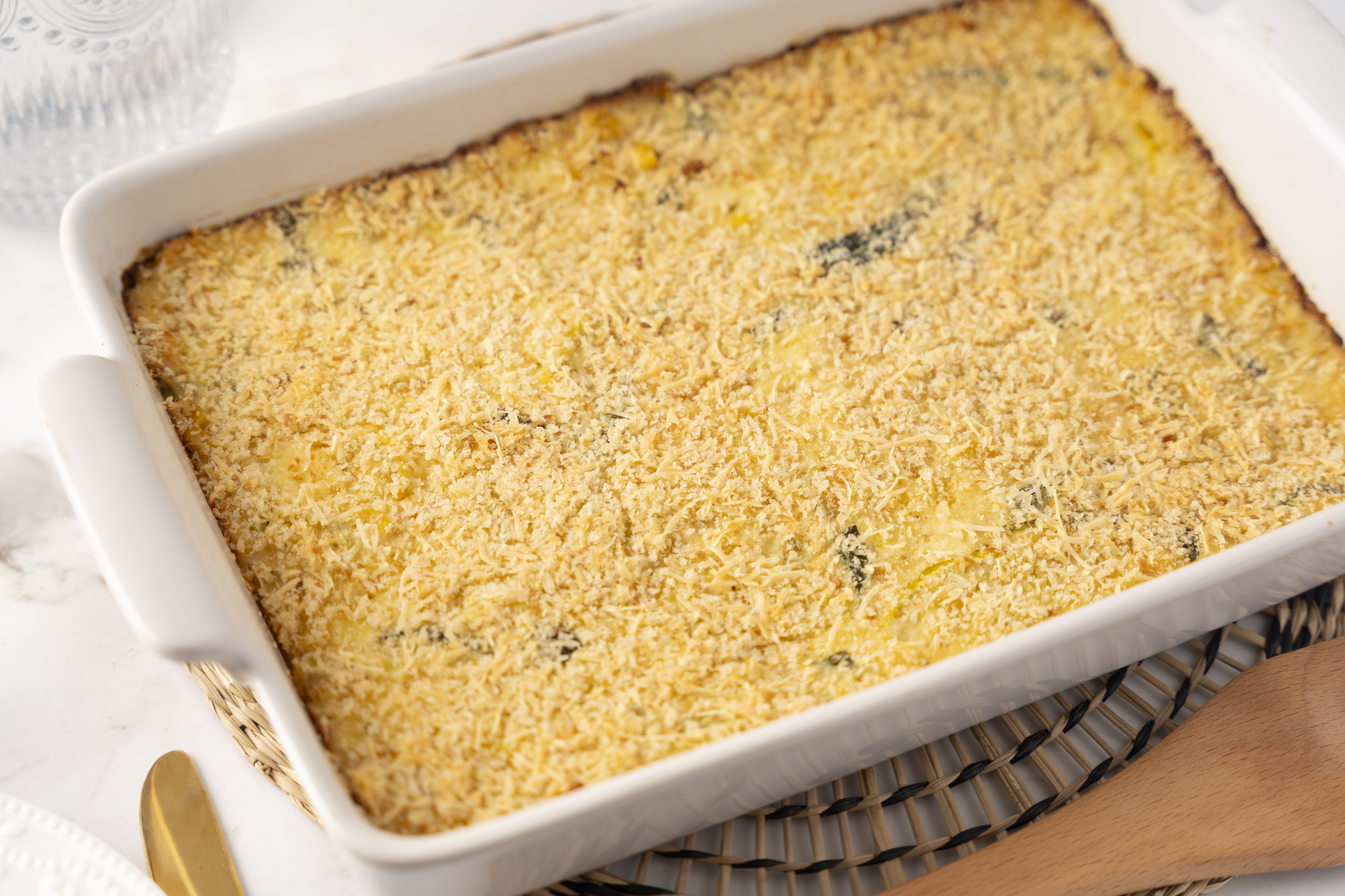 It may not be spring quite yet, but the Garden Galore Bake reminds us of when the garden is lush and filled with all the sweet and vibrant greens you can eat! Under a bed of cheesy, crispy breadcrumbs, sweet squash and juicy zucchini come together with tangy mayo and fluffy eggs to make a casserole that nourishes and delights all at once! The Garden Galore Bake draws so much from the greens of summer, you might just forget it's winter!