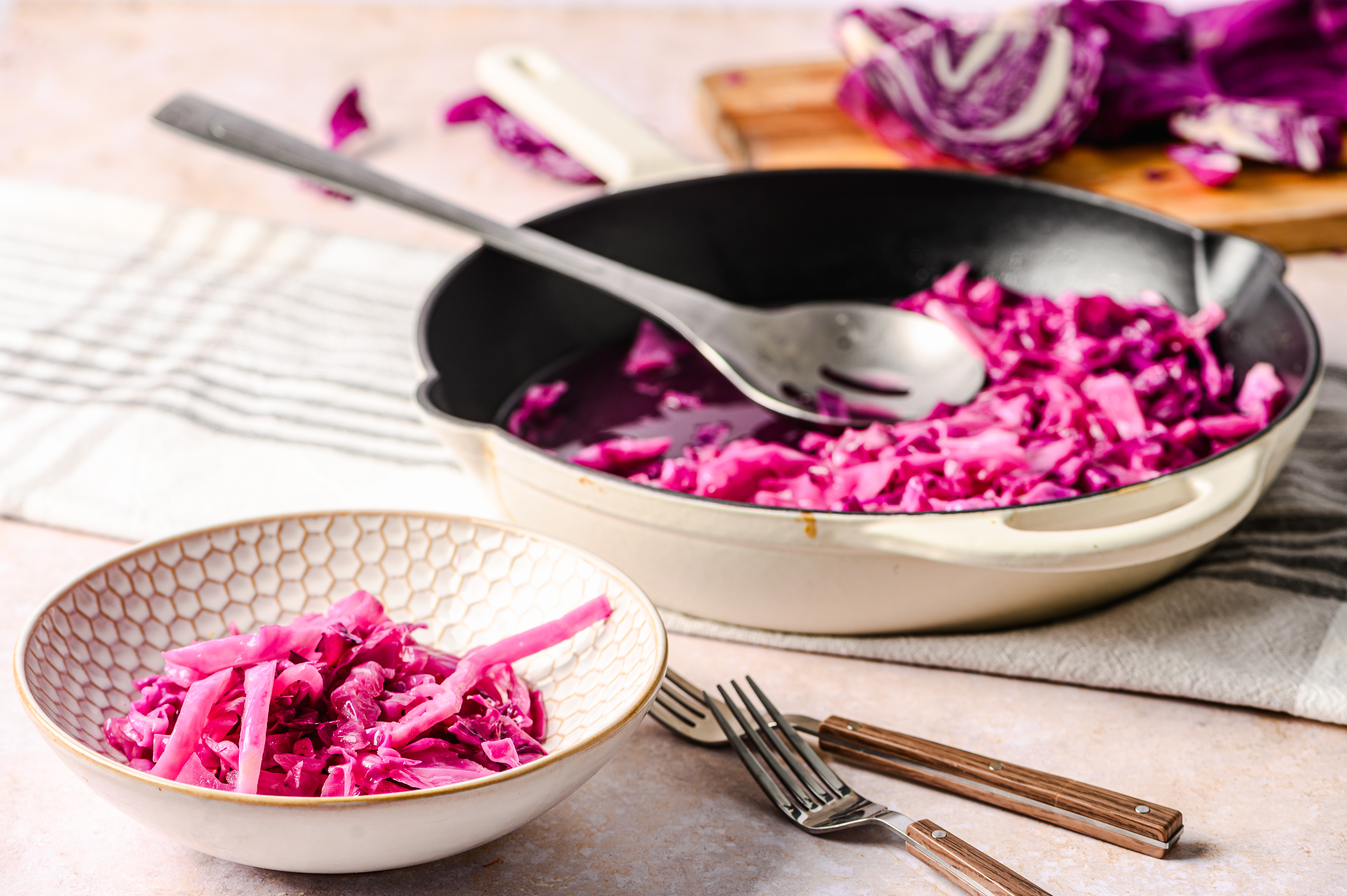 German Cabbage brings vibrant colors and equally as vibrant flavors! If you're looking for a lively side to add to your meal, this tender, savory version is the answer. The ratings from your table guests will immediately rise once they're served this little number. German Cabbage is full of tangy surprises... you have to try it!