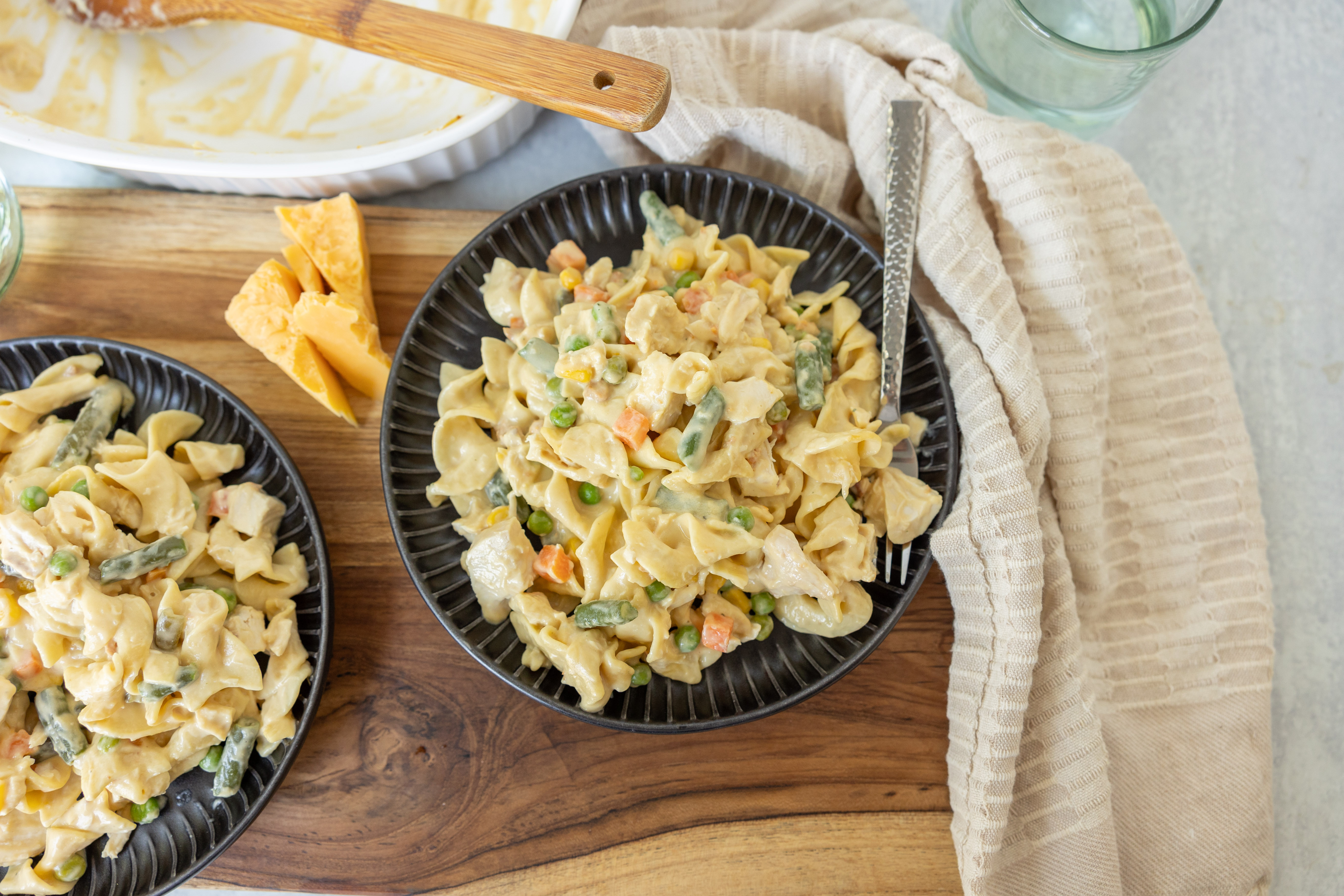 Grammy's Chicken Noodle Bake is better than what you remember Grandma making! This is the most delicious kind of chicken noodle dish; exactly what you need if you're feeling down. The noodles are tender and coated in a creamy sauce, with plenty of juicy chicken and hearty vegetables. Better yet, this is an easy dish to put together, so no matter how you're feeling, you can enjoy a plate of Grammy's Chicken Noodle Bake right when you need it.