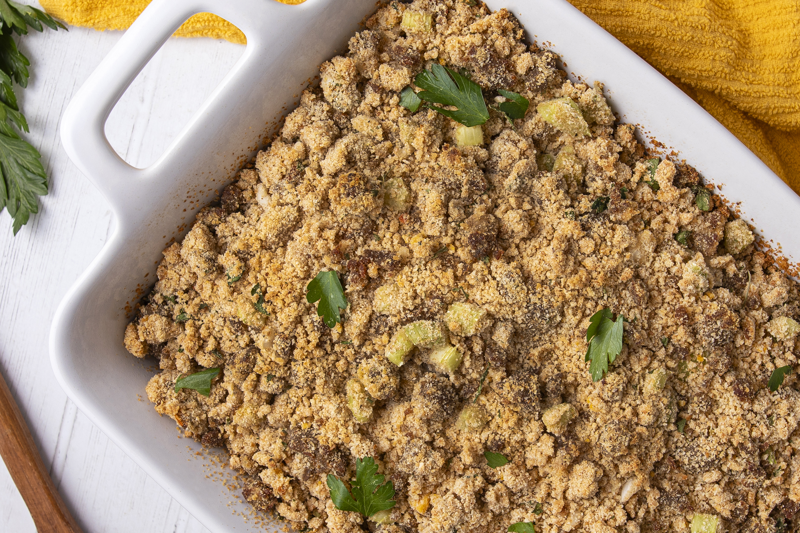 - 7 cups coarse dry breadcrumbs, can use day-old bread crushed into coarse breadcrumbs