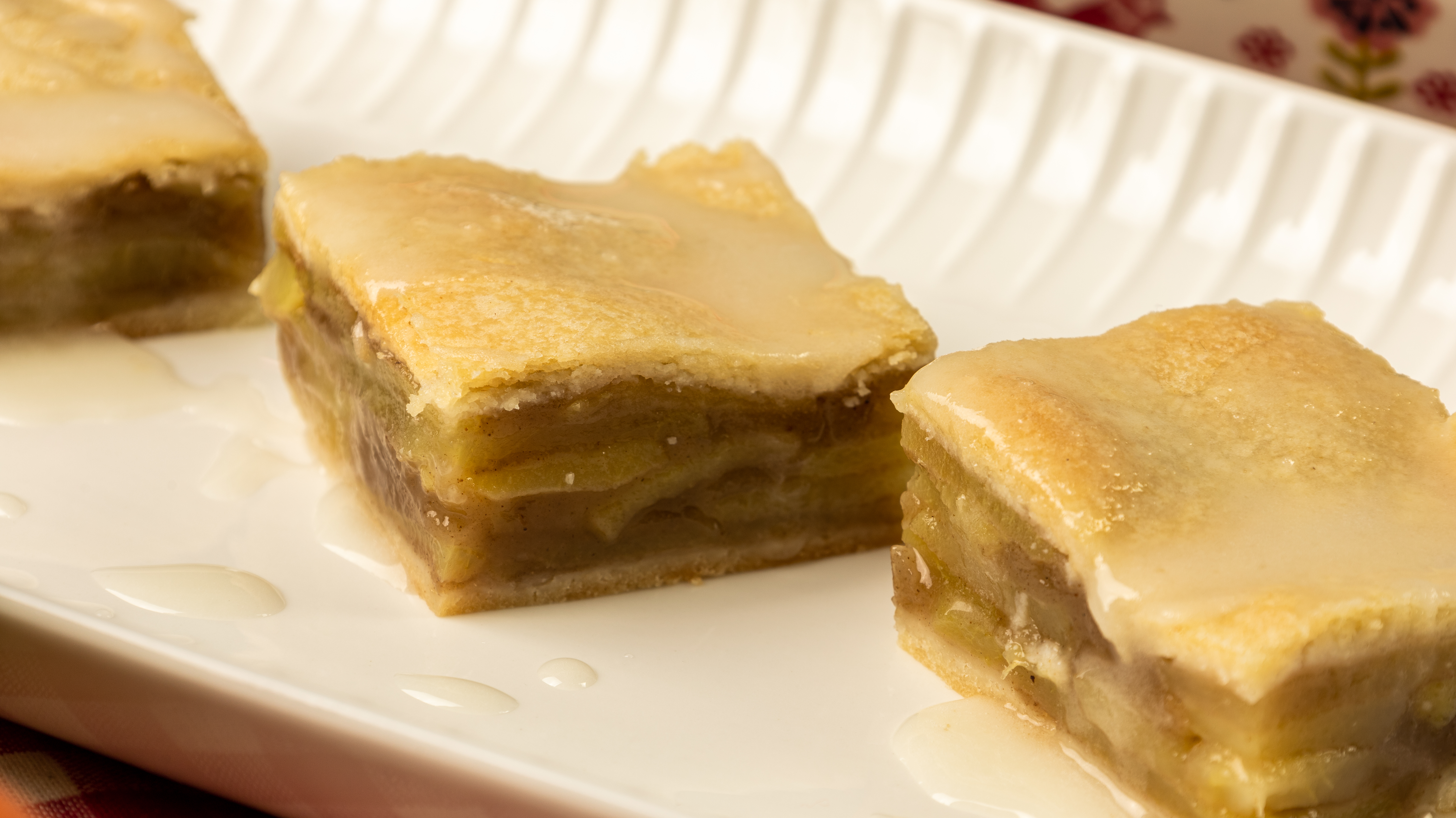 Here's the shortcut to delivering enough delicious apple pie flavor to make everyone at your party happy. Granny Smith Bars feature a buttery, flaky crust and some deliciously spiced, jammy, sweet and tart apples, as well as a pleasingly creamy icing on top! Because why not? Everyone loves icing and it makes people smile, just like apple pie! Granny Smith Bars are simple to put together and so, so, so amazing to eat. It doesn't get much better than that!