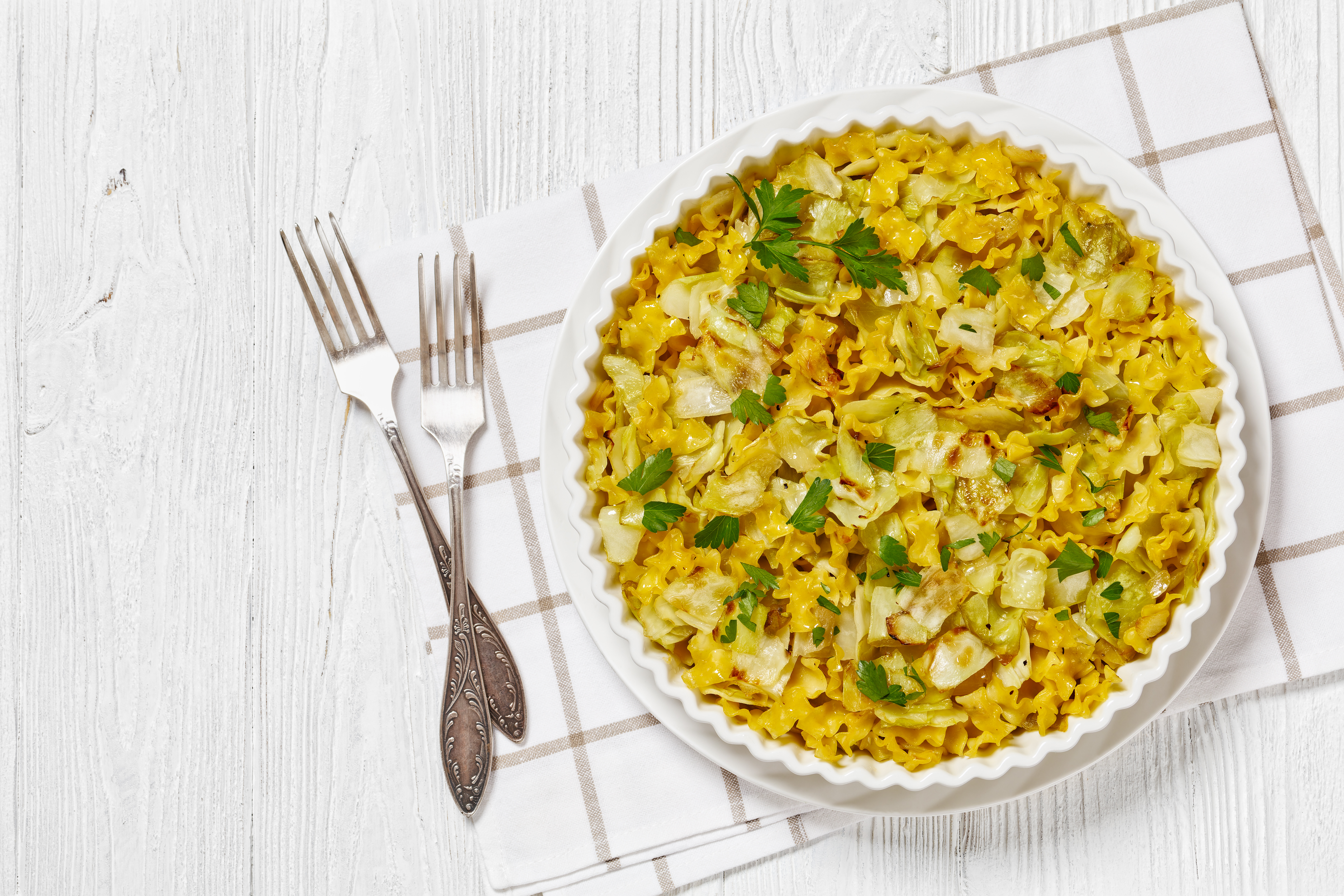 When looking for an exciting dinner dish, there are some important requirements to keep in mind. Well, get ready because this Eastern European delight will check all the right boxes! Haluski is a hidden treasure that will become a newly loved dinner dish find! Tender egg noodles get combined with nourishing cabbage and a little butter, then it's all perfectly roasted to really lock in all the flavors. Simple, delicious, and hearty — check, check, check! Haluski is a simple yet elegant meal that you are sure to fall for. Welcome to the menu!