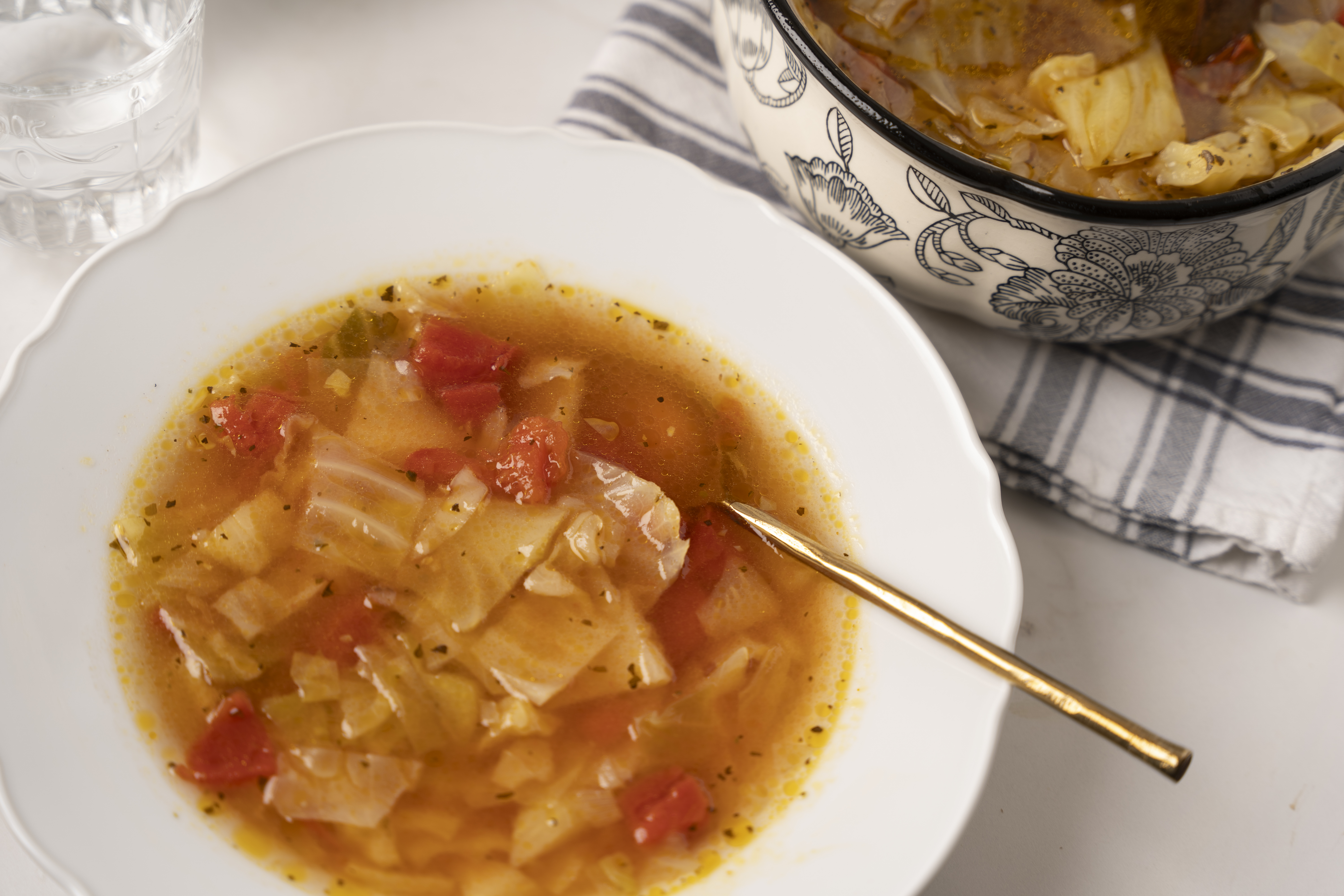 When you're feeling under the weather, your initial reaction is to reach for chicken noodle soup... but Healing Cabbage Soup might be even better at getting you back on your feet! The cabbage is nourishing and tender from being braised in chicken broth, and of course all those great vegetables are giving your immune system a boost! Just let Healing Cabbage Soup simmer away your aches, while giving your taste buds a little comfort as well!