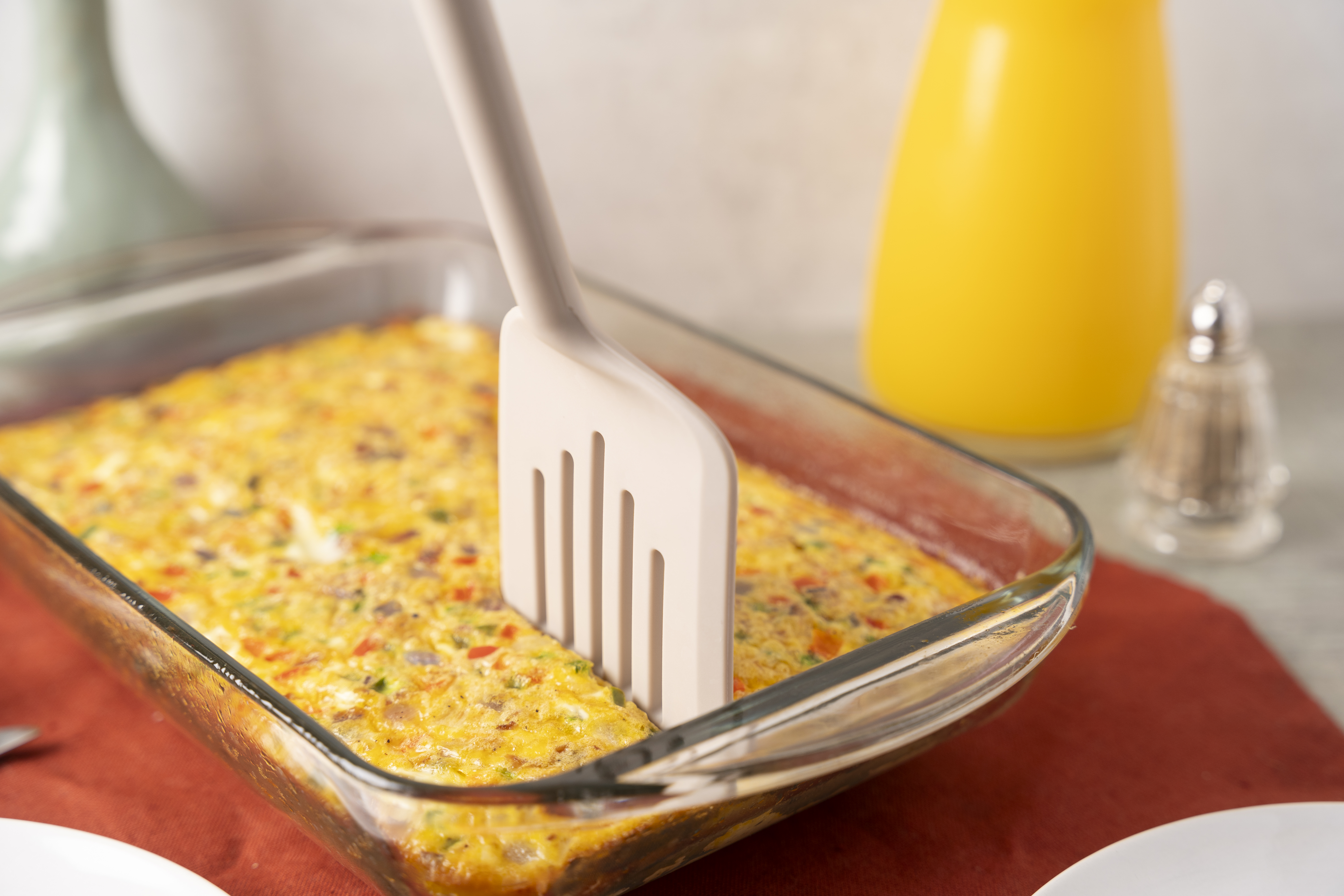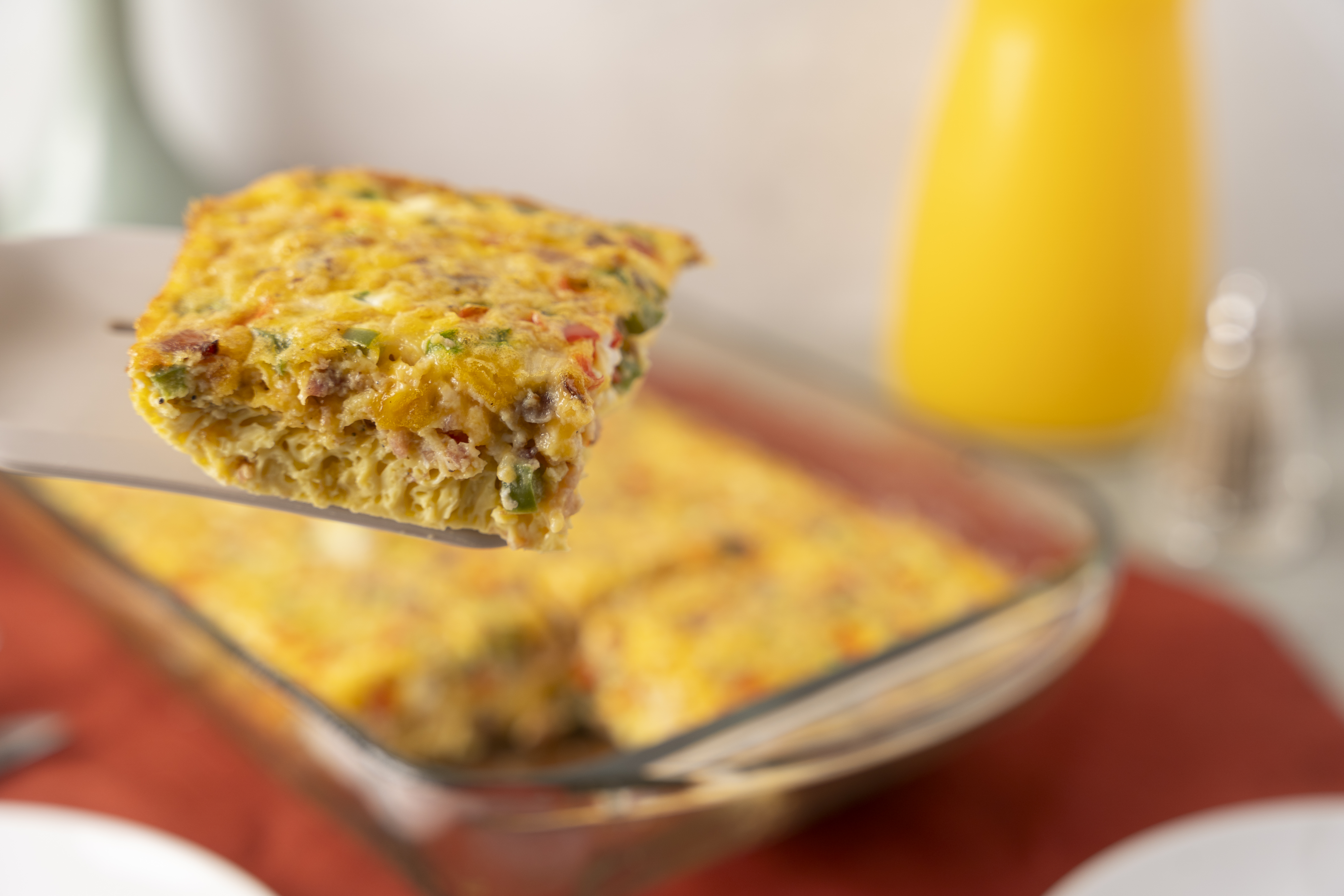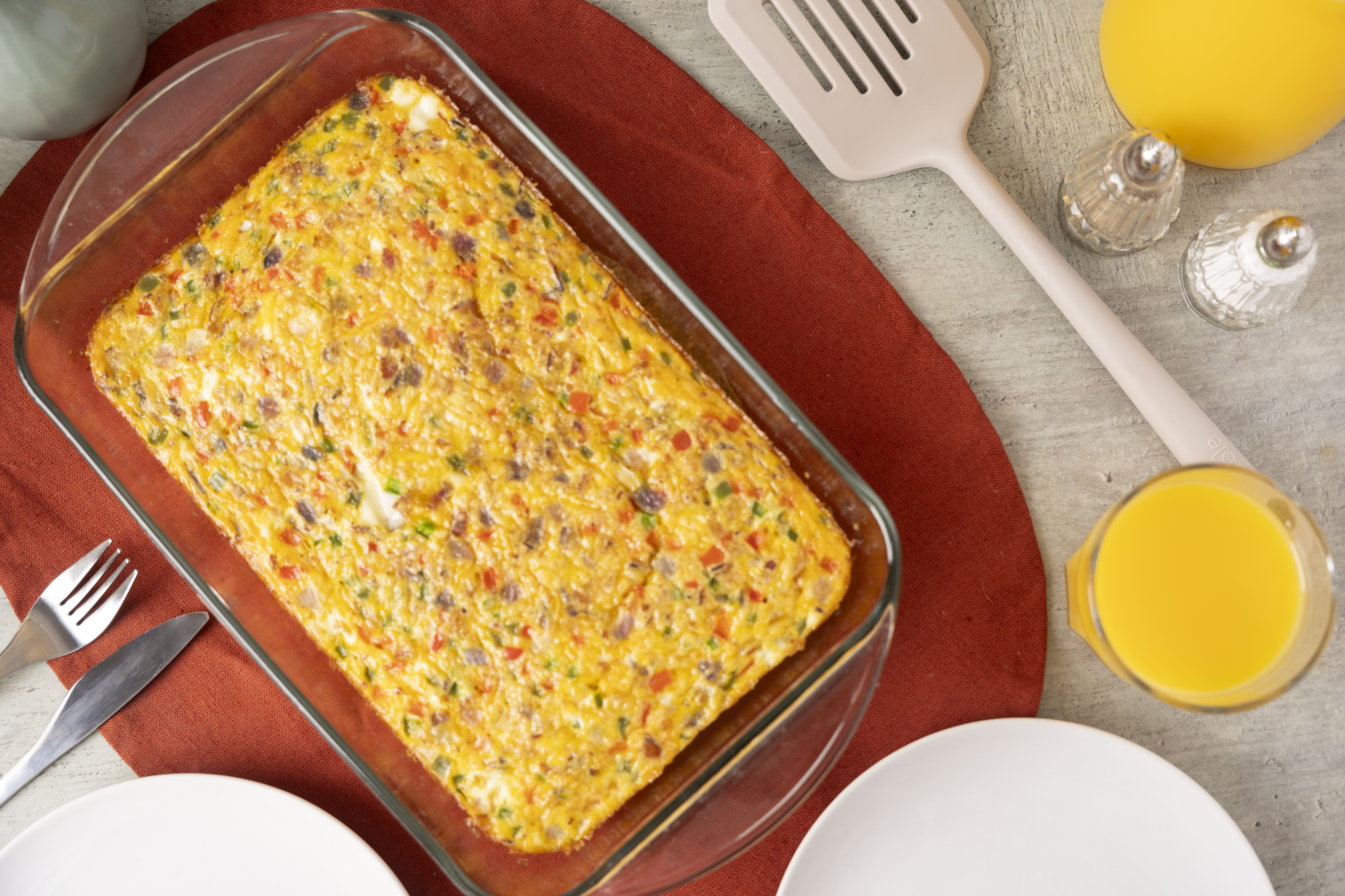 Don't worry, carnivores! The Healthy Egg Bake has plenty of crispy, succulent bacon bites in the fluffy bed of hearty eggs! It also has so many bright, vibrant peppers and savory onions mixed in that it nourishes your body while it stuns your taste buds! This is a simple egg dish that wows with flavor and supports your health goals!