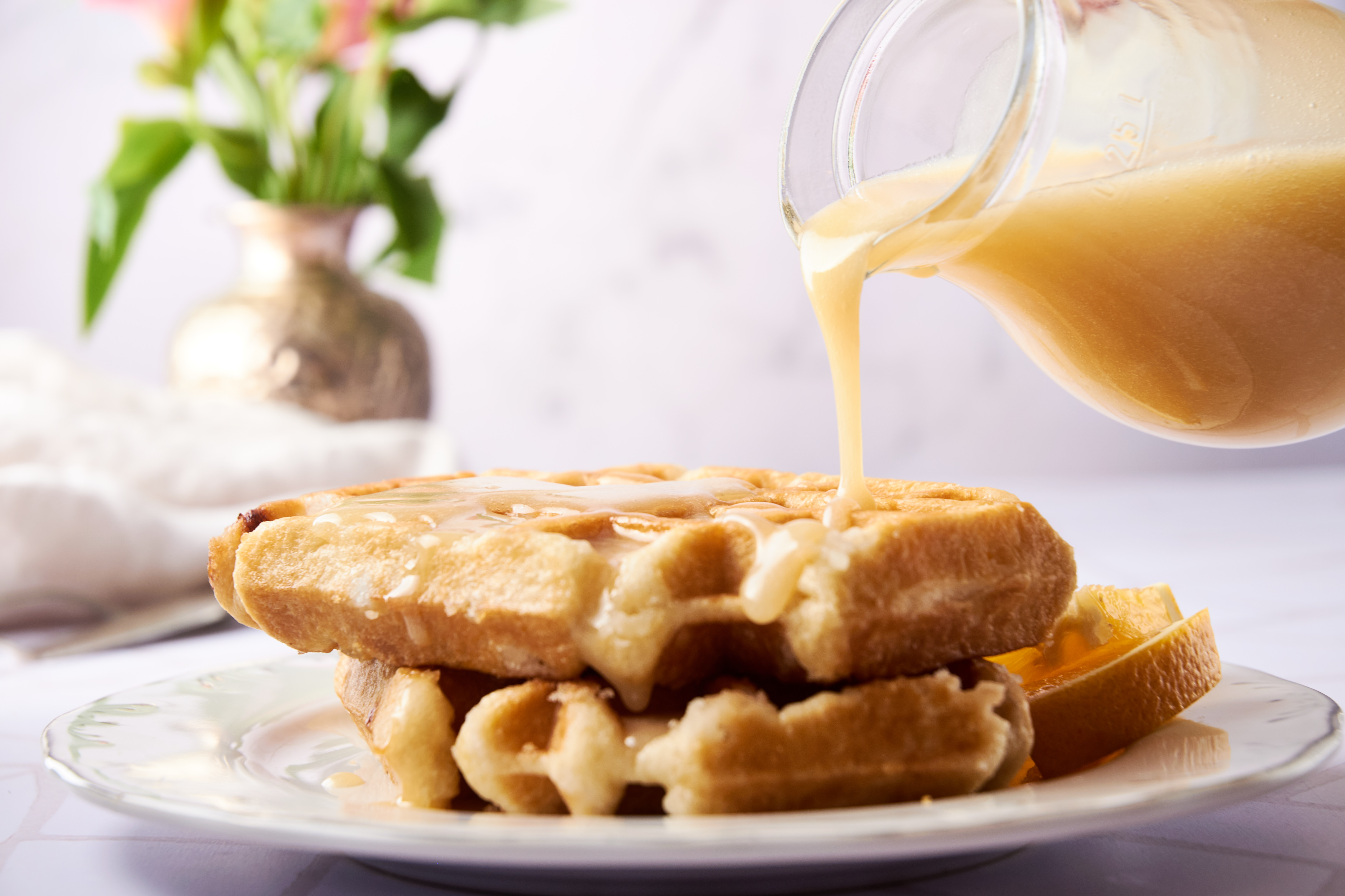 - waffles, optional, to taste, cooked and warm, for serving, can substitute pancakes or French toast