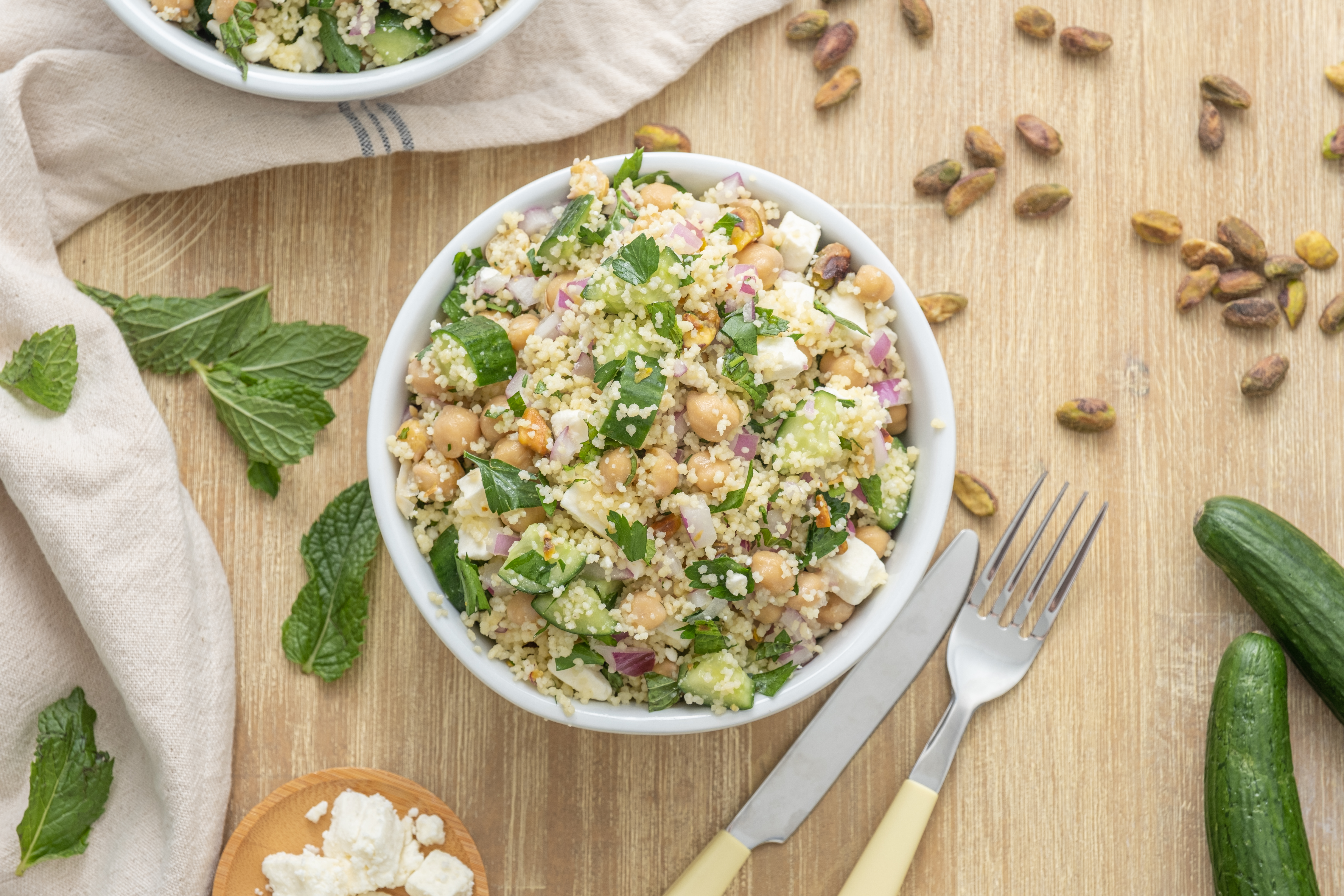 So no one told you it was going to be this way? A salad so good it's guaranteed to get you out of second gear, so to speak? That's the Jennifer Aniston Salad for you! With fluffy, hearty bulgur wheat to keep you going, feta cheese for a creamy, sharp bite, pistachios for that captivating crunch, and a little lemon juice for an endearing bit of tartness, like the sarcastic quip of a dear friend, this salad has everything going for it. It's safe to say, the Jennifer Aniston Salad will be there for you!