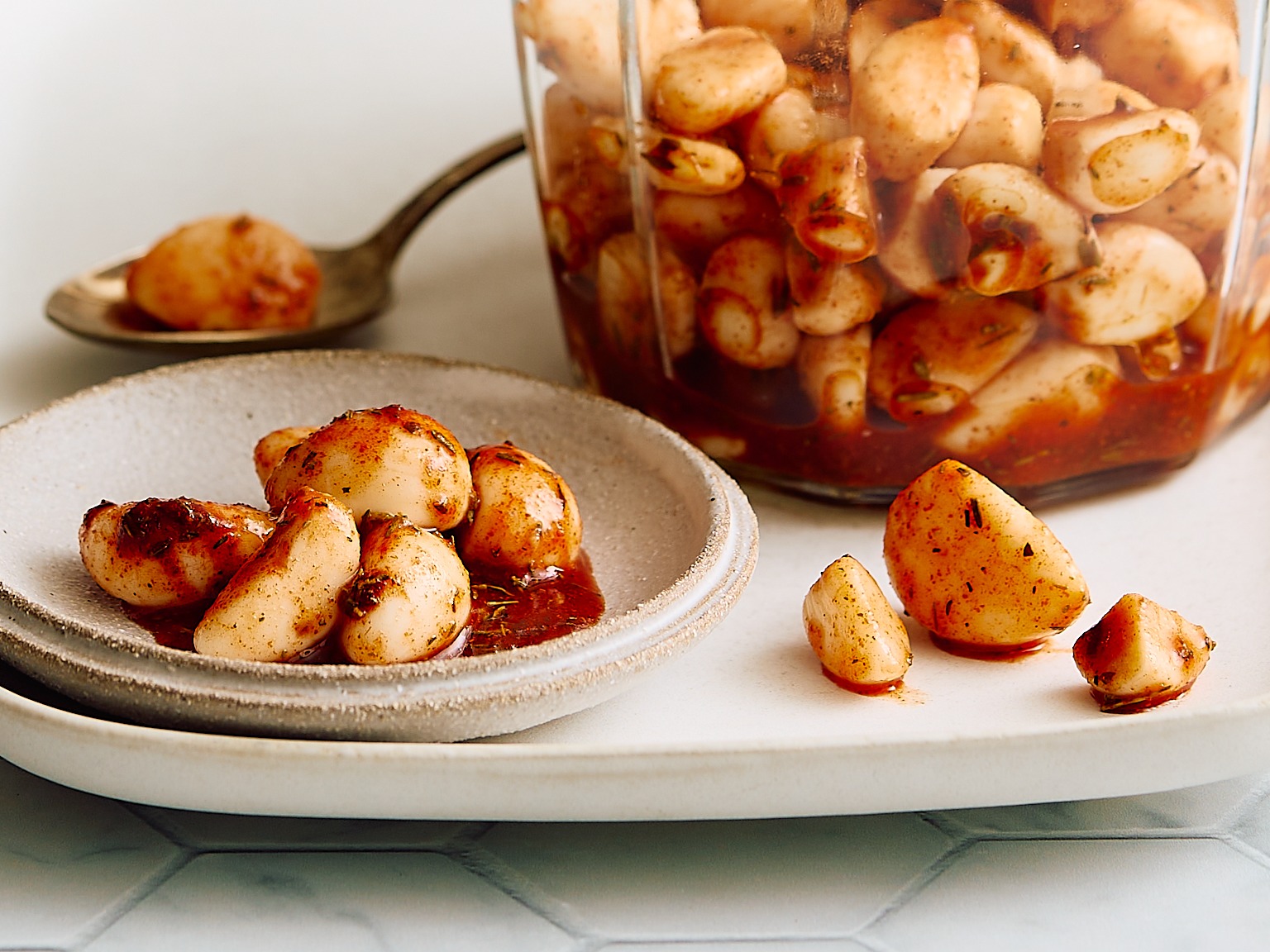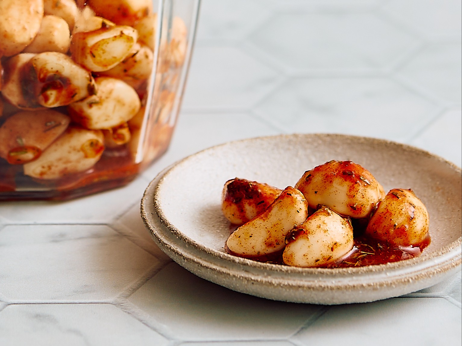 - 2 (7-ounce) jars pickled garlic, such as Pickerfresh® Pickled Garlic, juices drained