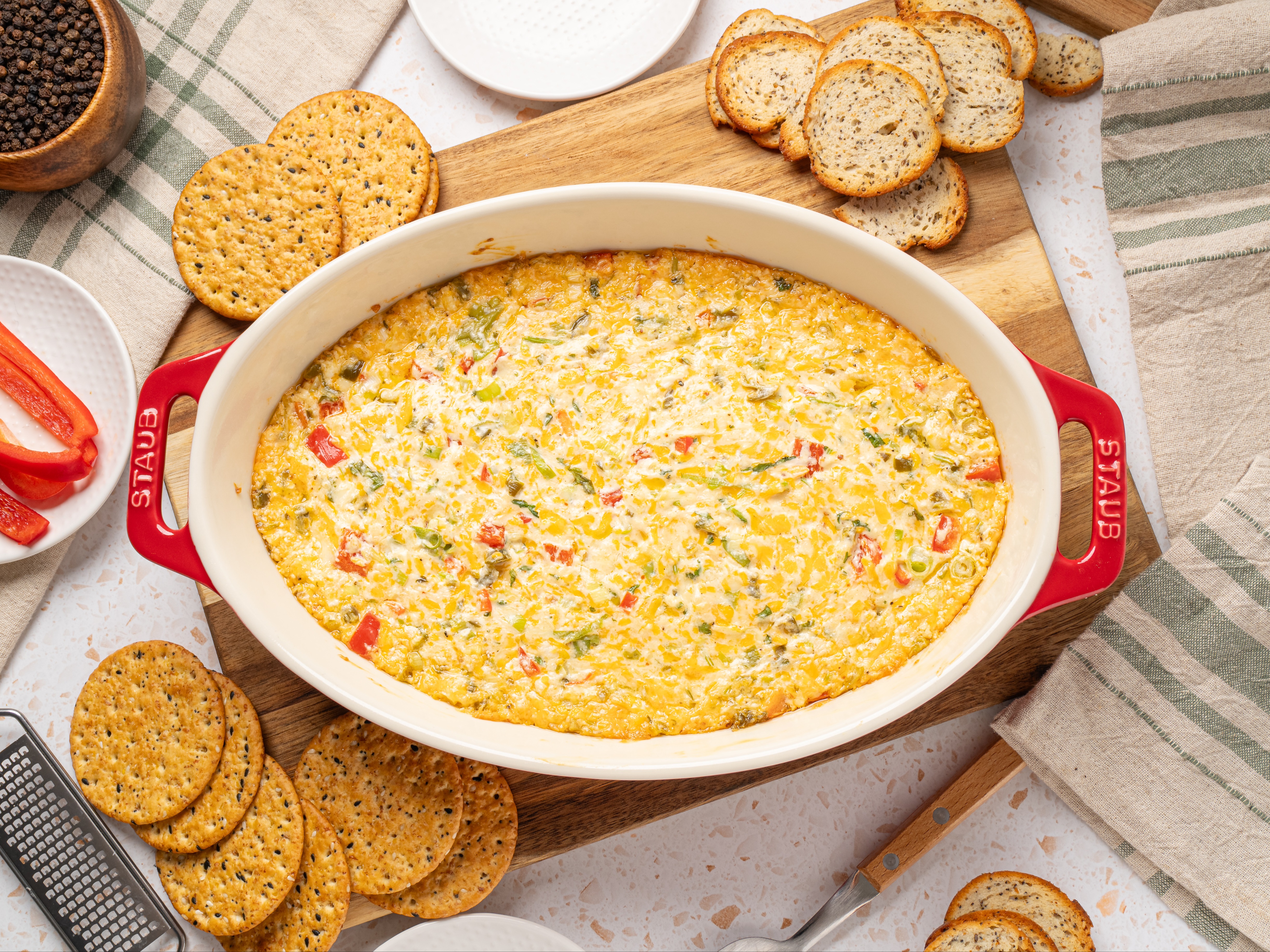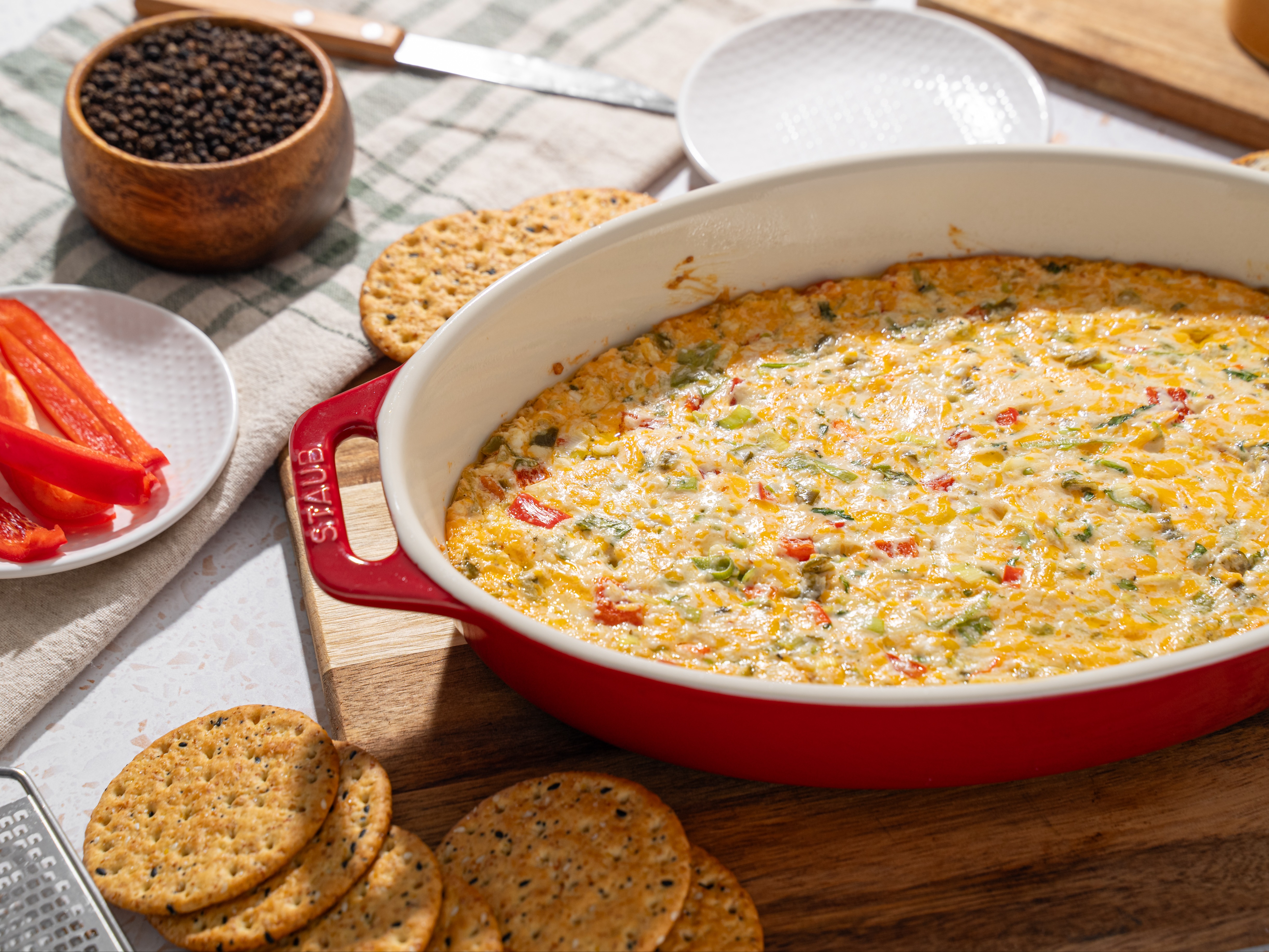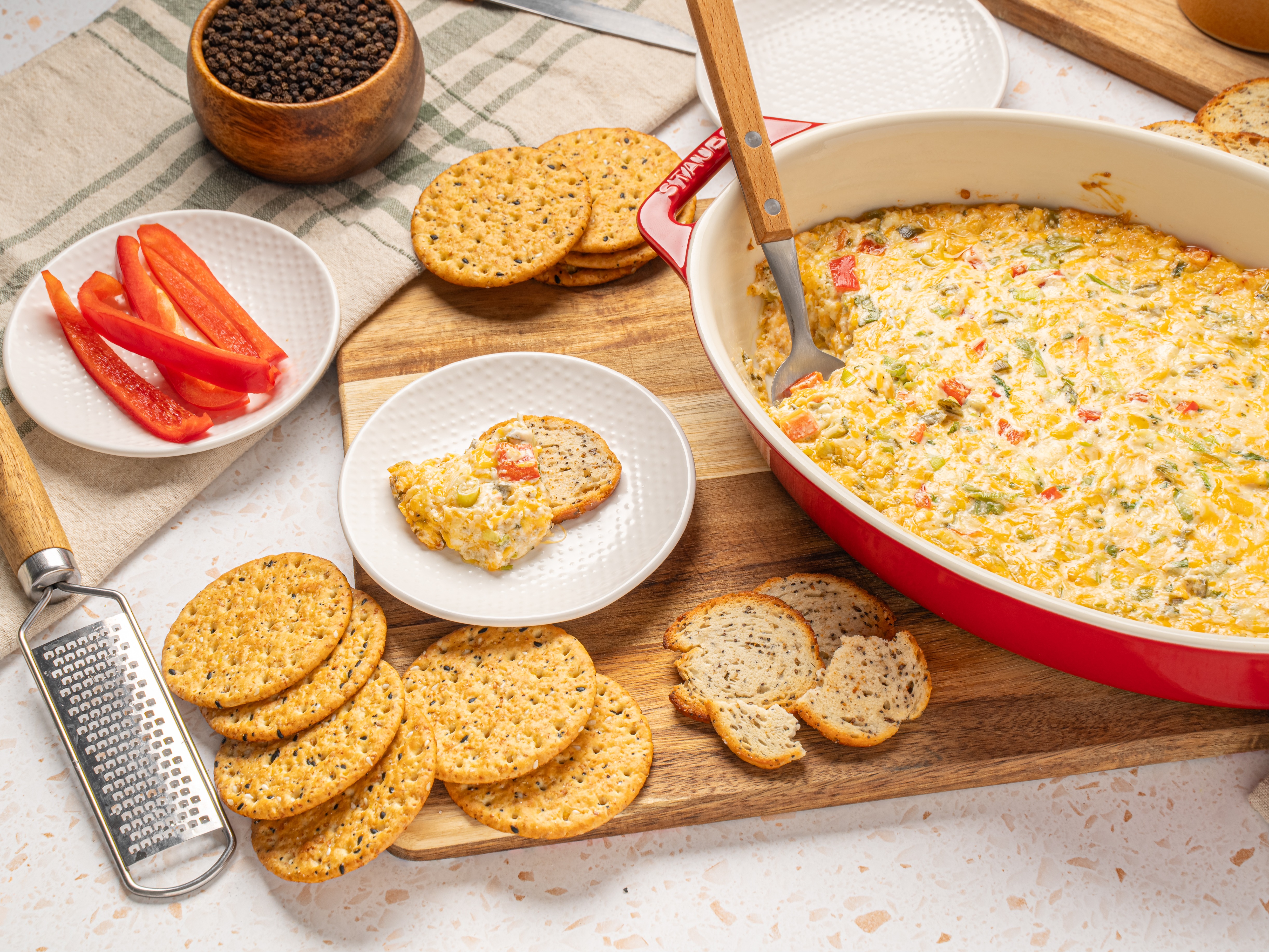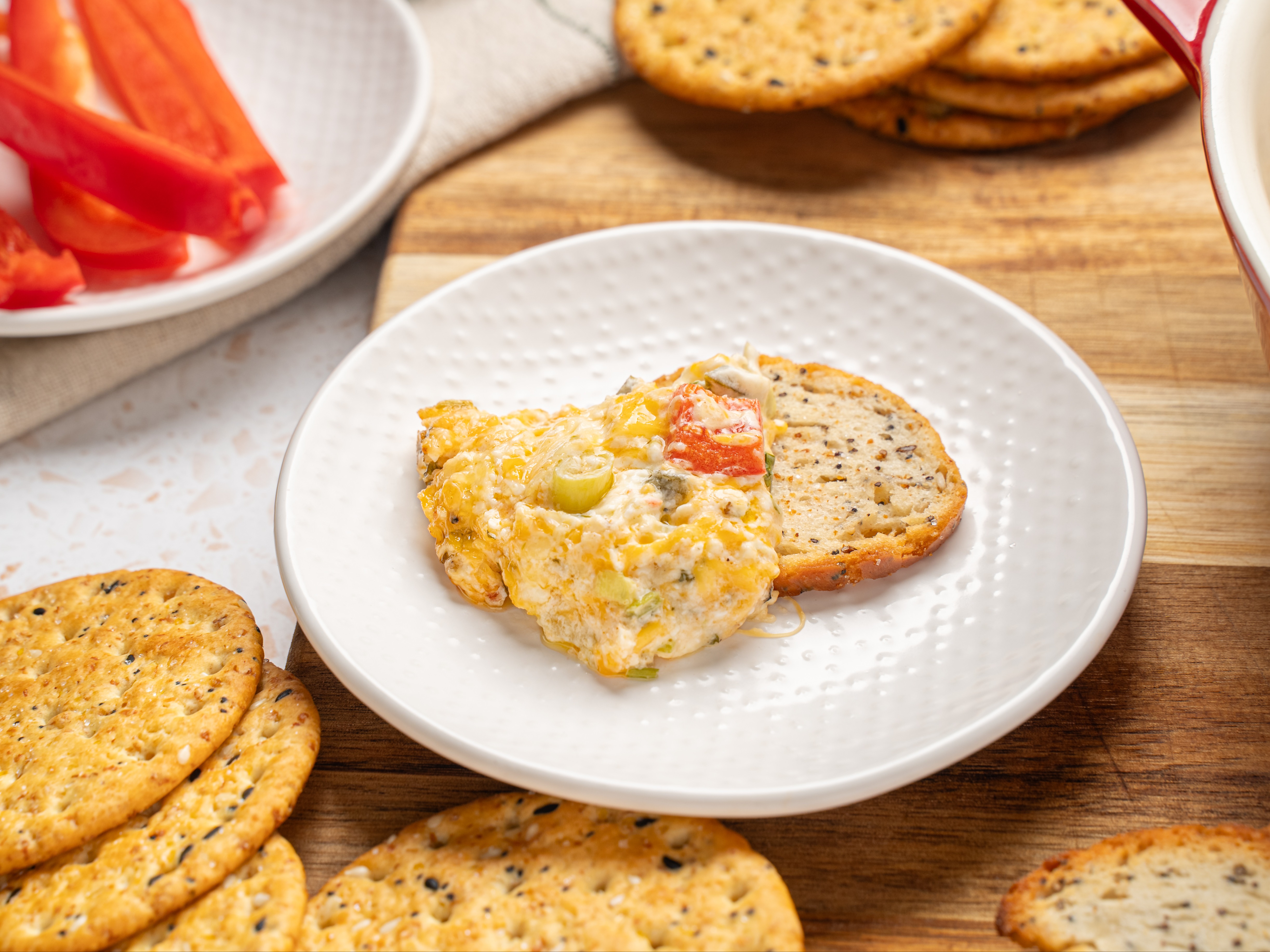 Clock out of work and clock into fun with some Labor Day Dip! On a day you're usually working, you get to hang with your pals and chow down on some great food instead. This creamy, cheesy, slightly spicy dip is delicious for crackers and chips of all kinds! It's a fun way to kick the PTO party off, too! So, kick back and have a blast with Labor Day Dip!