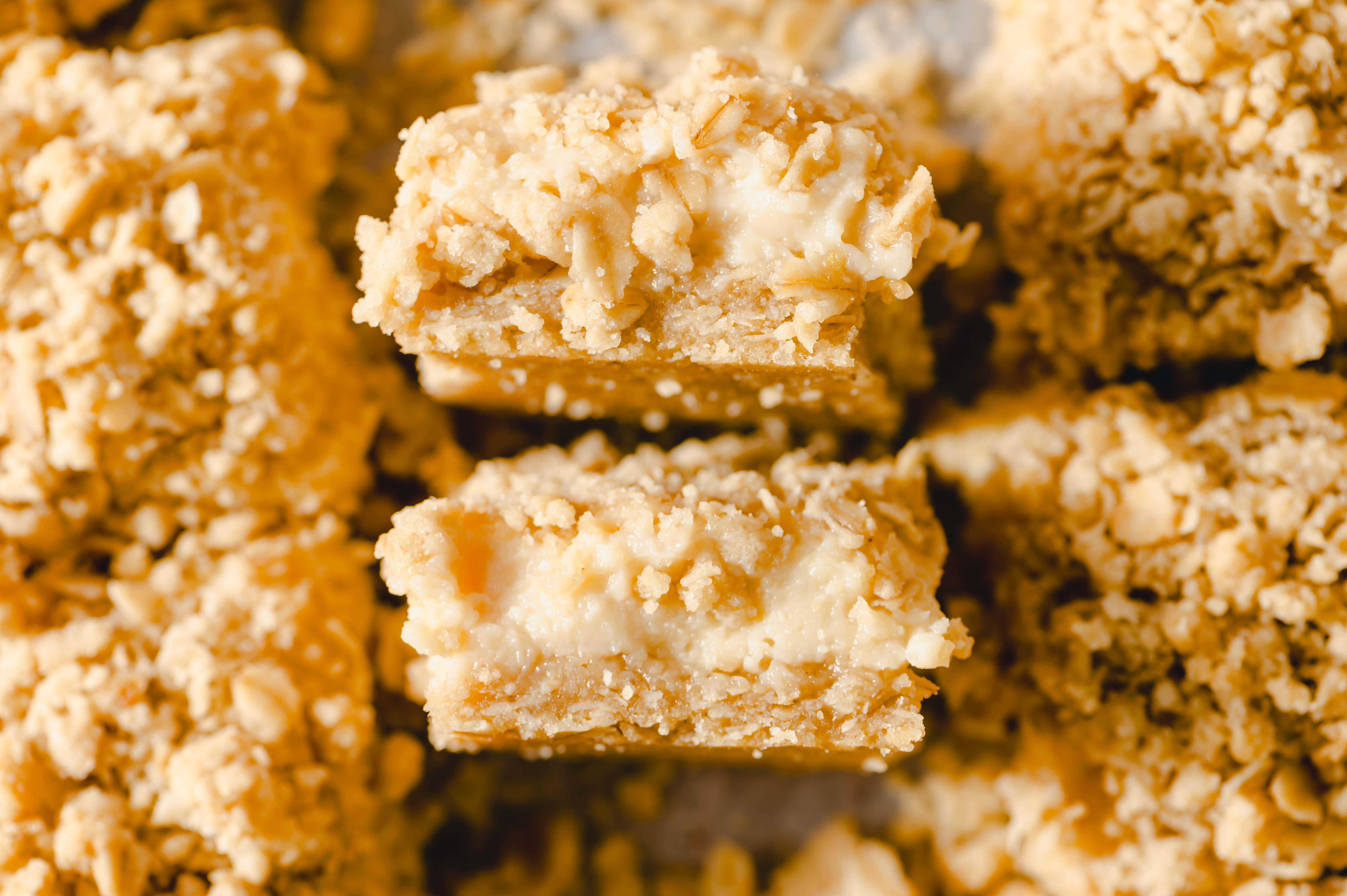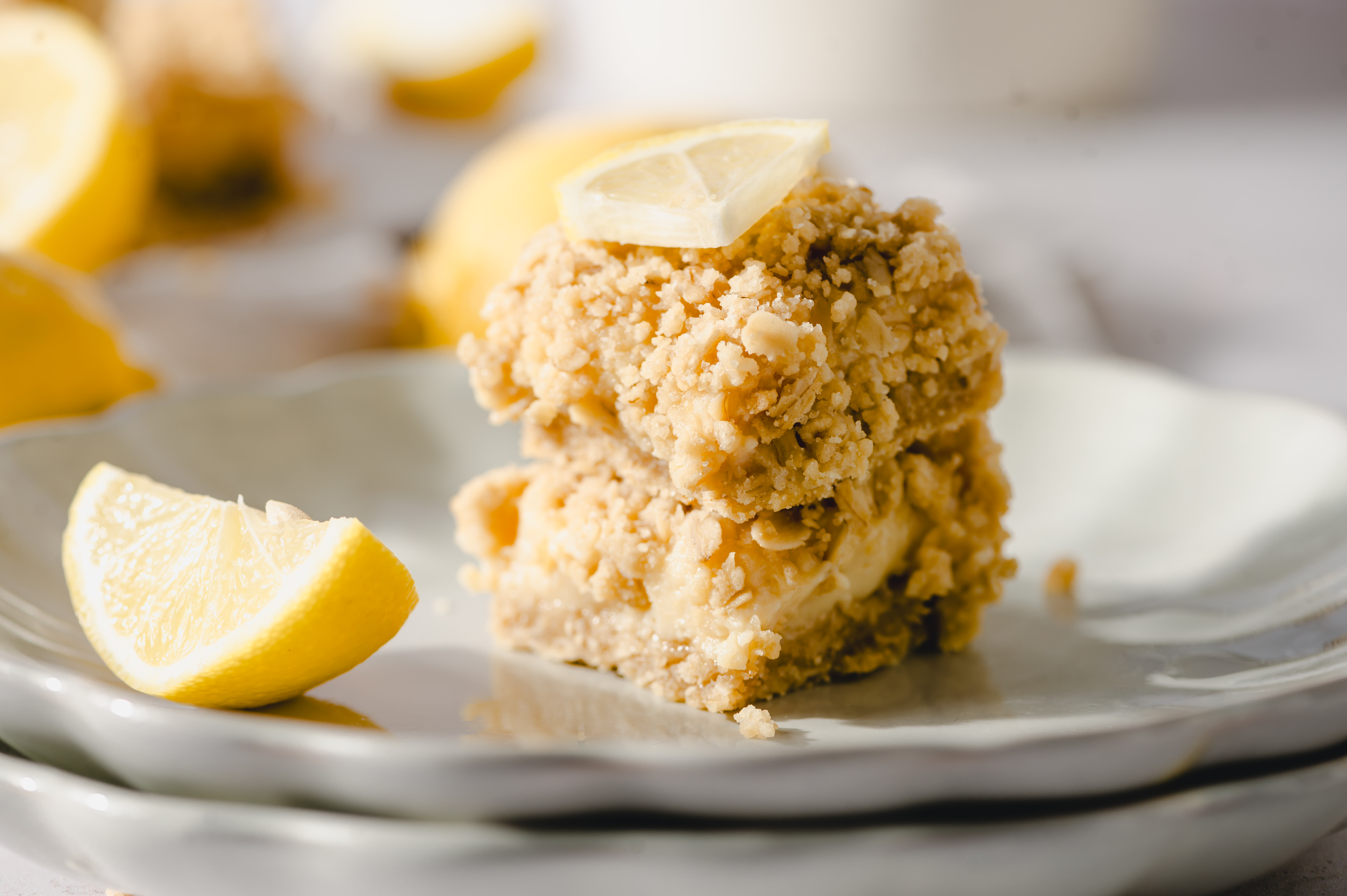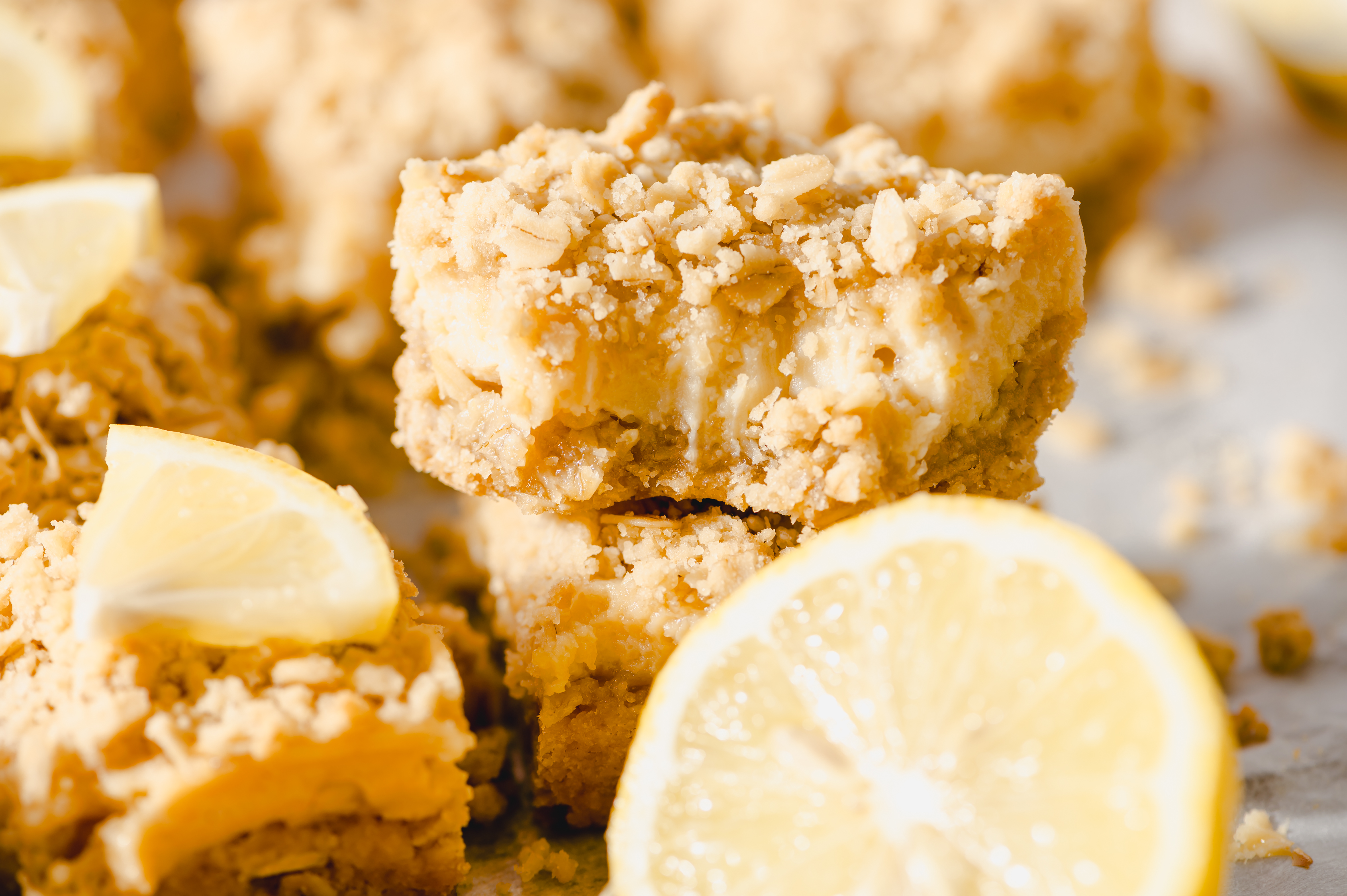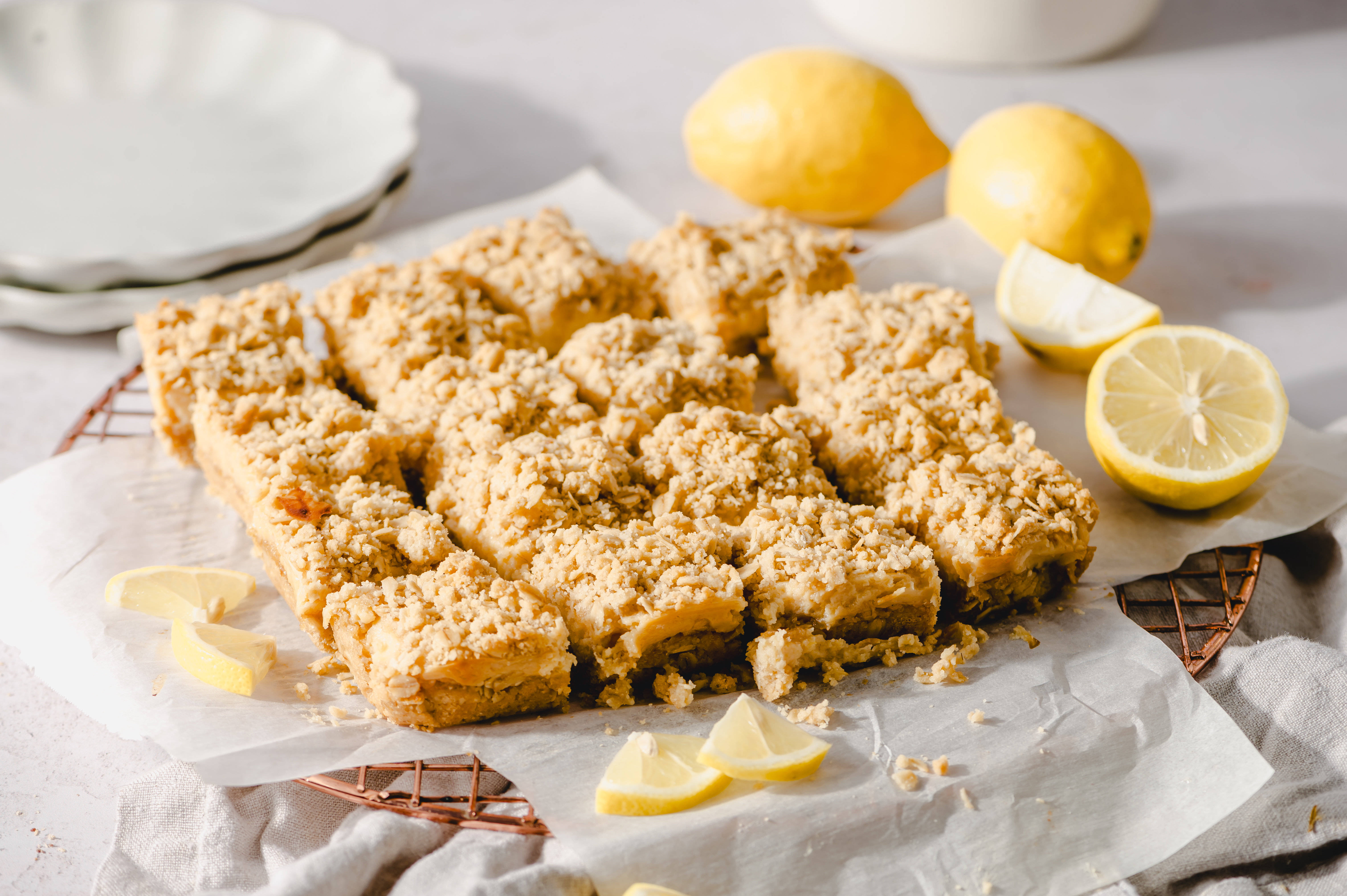 It's just the best when the weather starts to warm up and in return, we get to start cooking and baking with all the warm weather produce! We dream of these Lemon Cream Crumble Bars all winter long, so we're very excited to get to taste them again. The way the tart, lemony filling pairs so perfectly with the brown-sugary, oat crust and topping always makes our hearts flutter. Welcome the higher temps with these Lemon Cream Crumble Bars! Ah, it's so good to have them back!
