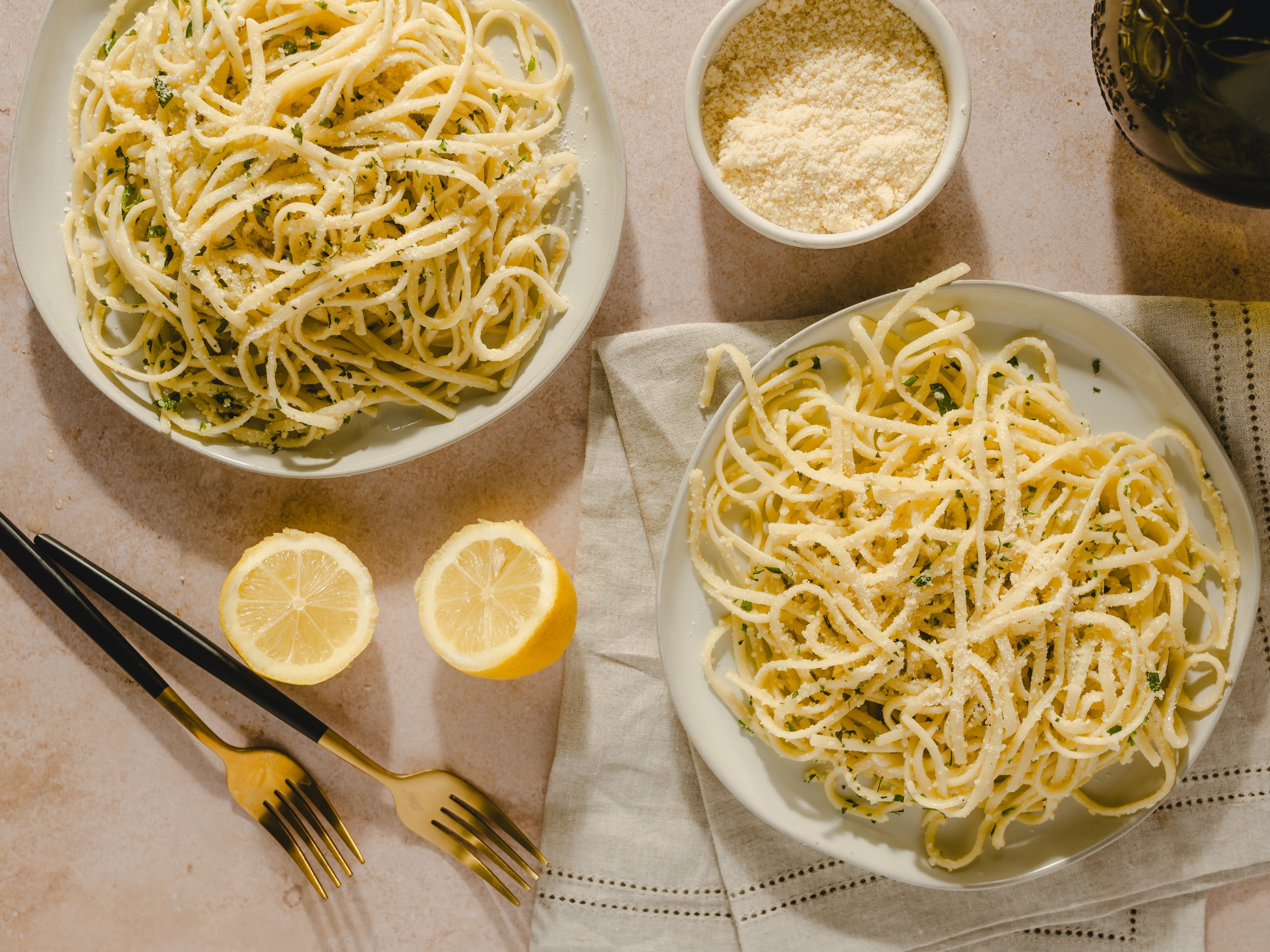Step 7 -Serve the linguine sprinkled with the parmesan.
