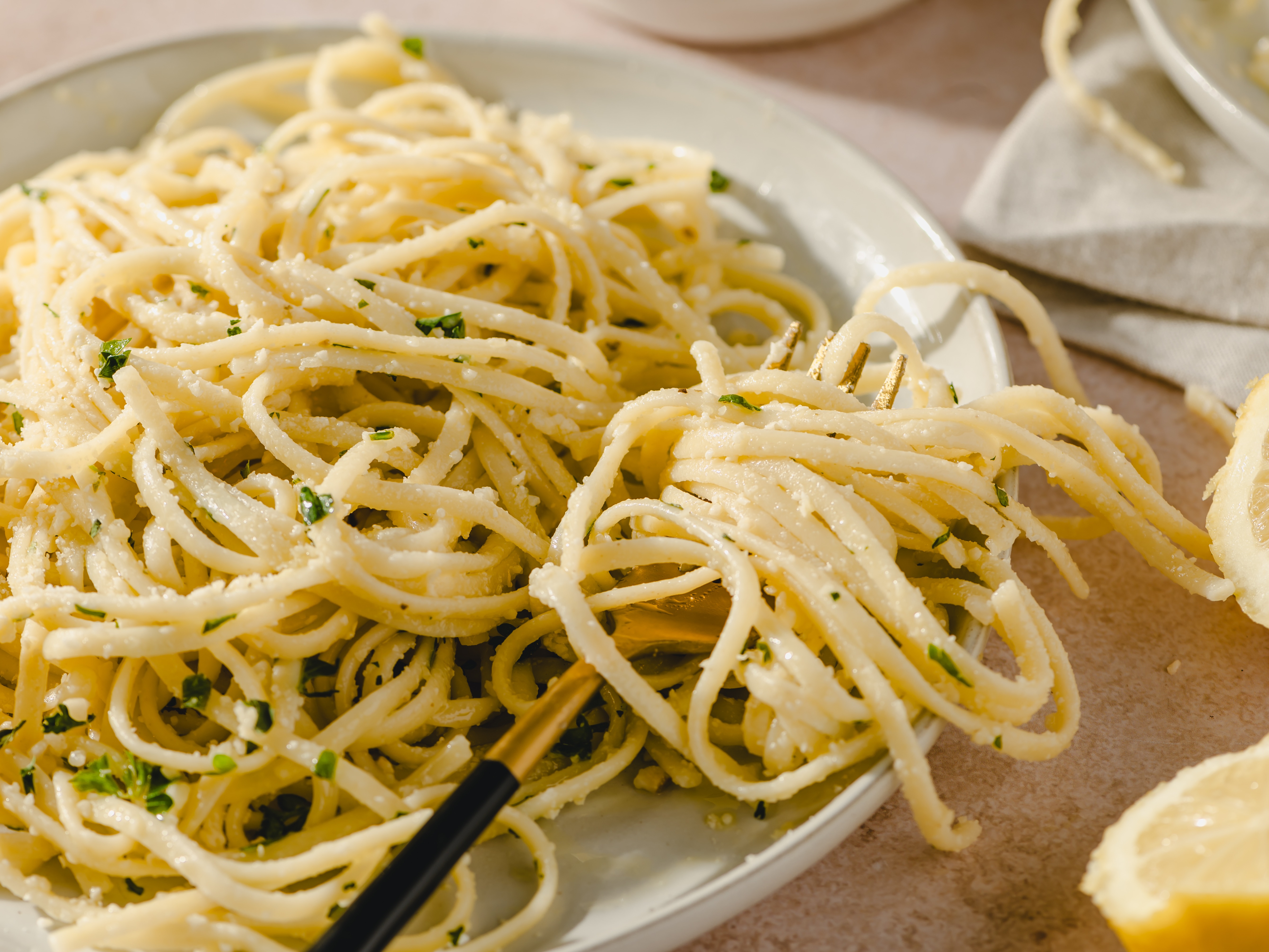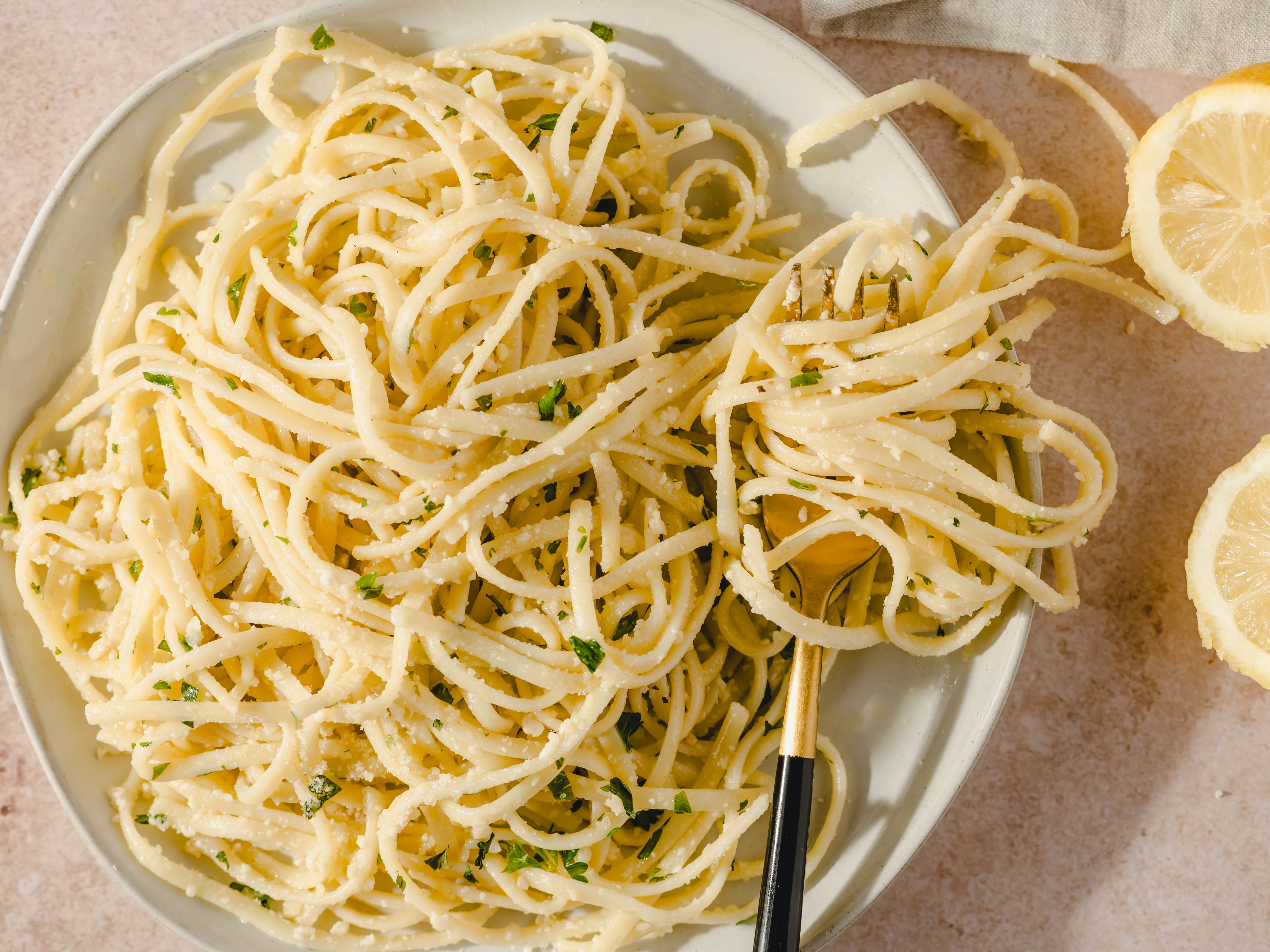 When life hands you a basket of lemons, sure, go make your lemonade. But... if you have extra leftovers of those citrusy treats, you definitely need to make Lemon Linguine, too! This quick and easy, buttery, lemon-infused pasta dish will certainly bring the cheeriness you need. Sprinkled with the classic and iconic parmesan, Lemon Linguine will be turning that frown upside-down in a matter of minutes!