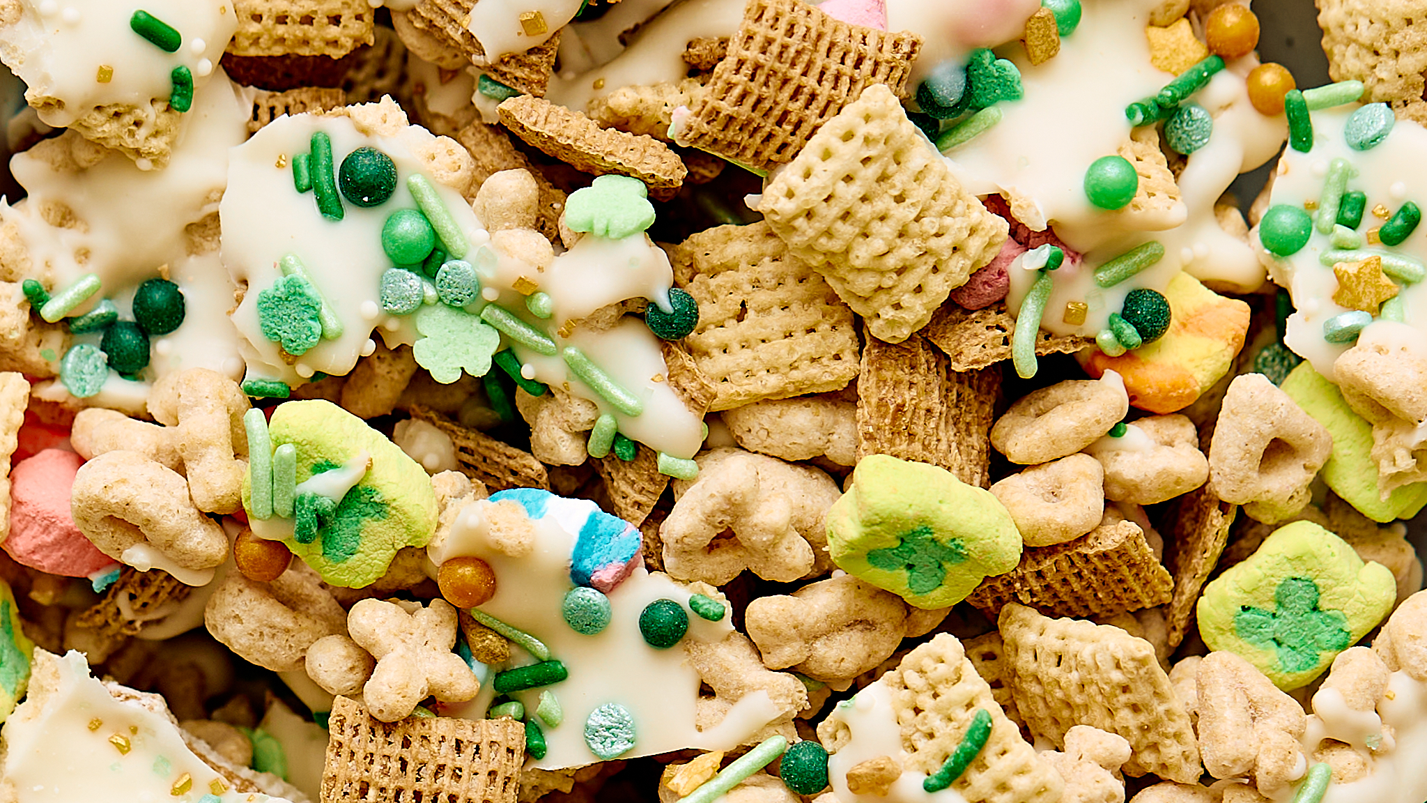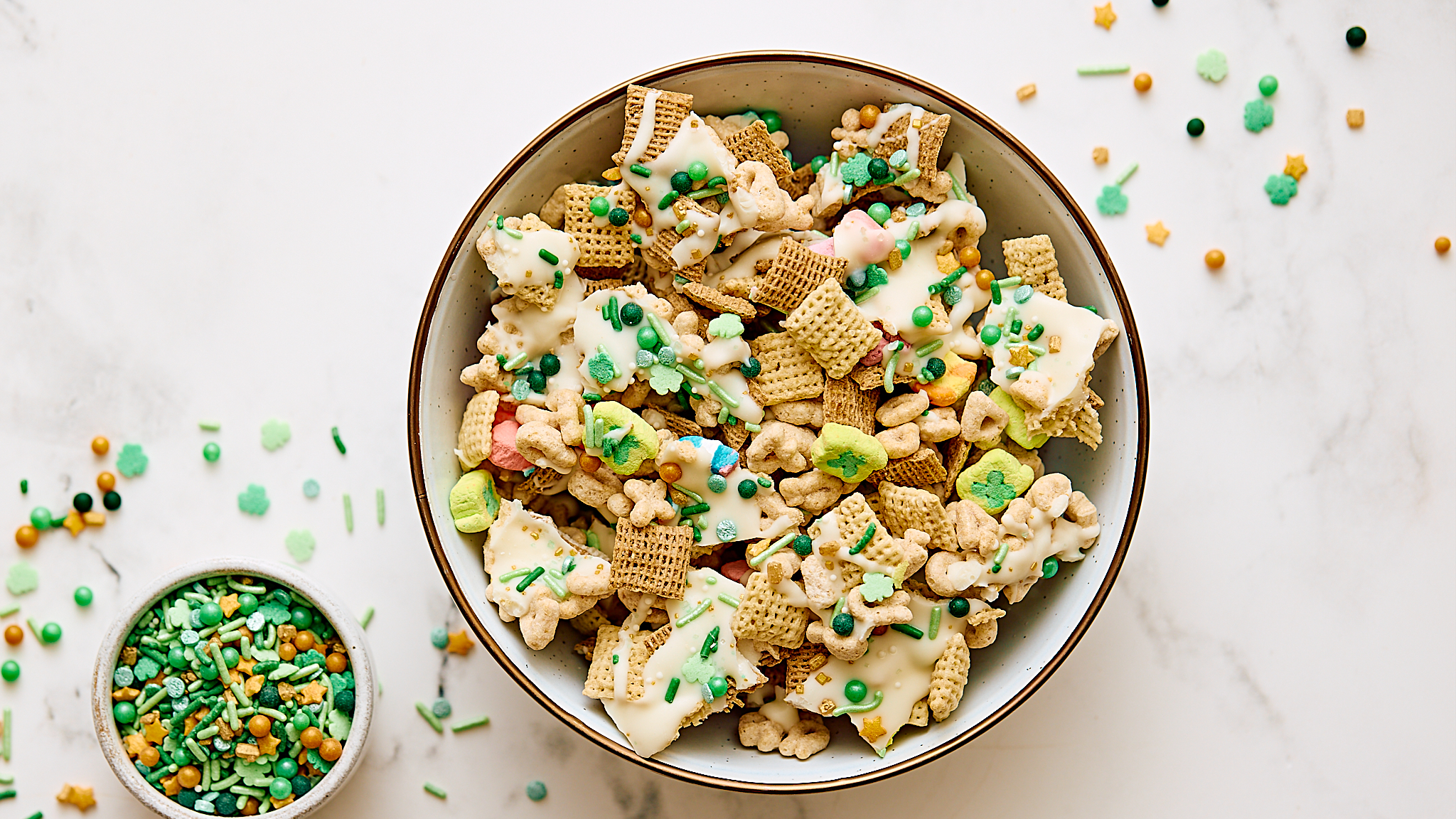 Forget the pot of gold, Leprechaun Chow is what you should really be on the hunt for! You'll be dancing the most delightful jig as you munch and crunch on this St.-Paddy's-Day-themed cereal that's coated in white gold (or uh, melted white chocolate). Broken up and ready for sweet snackin', you will be seeing a rainbow with every bite of this Leprechaun Chow!