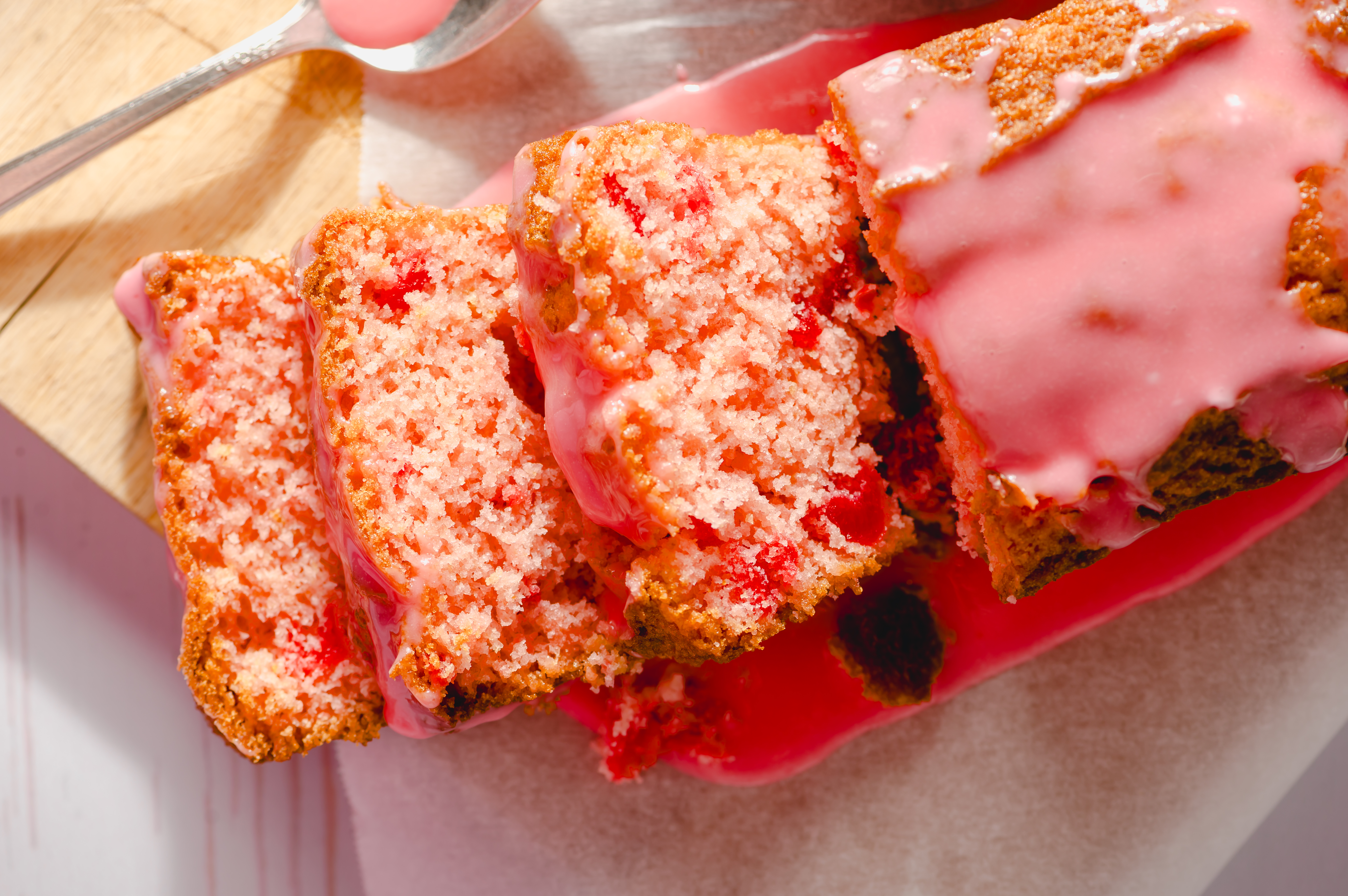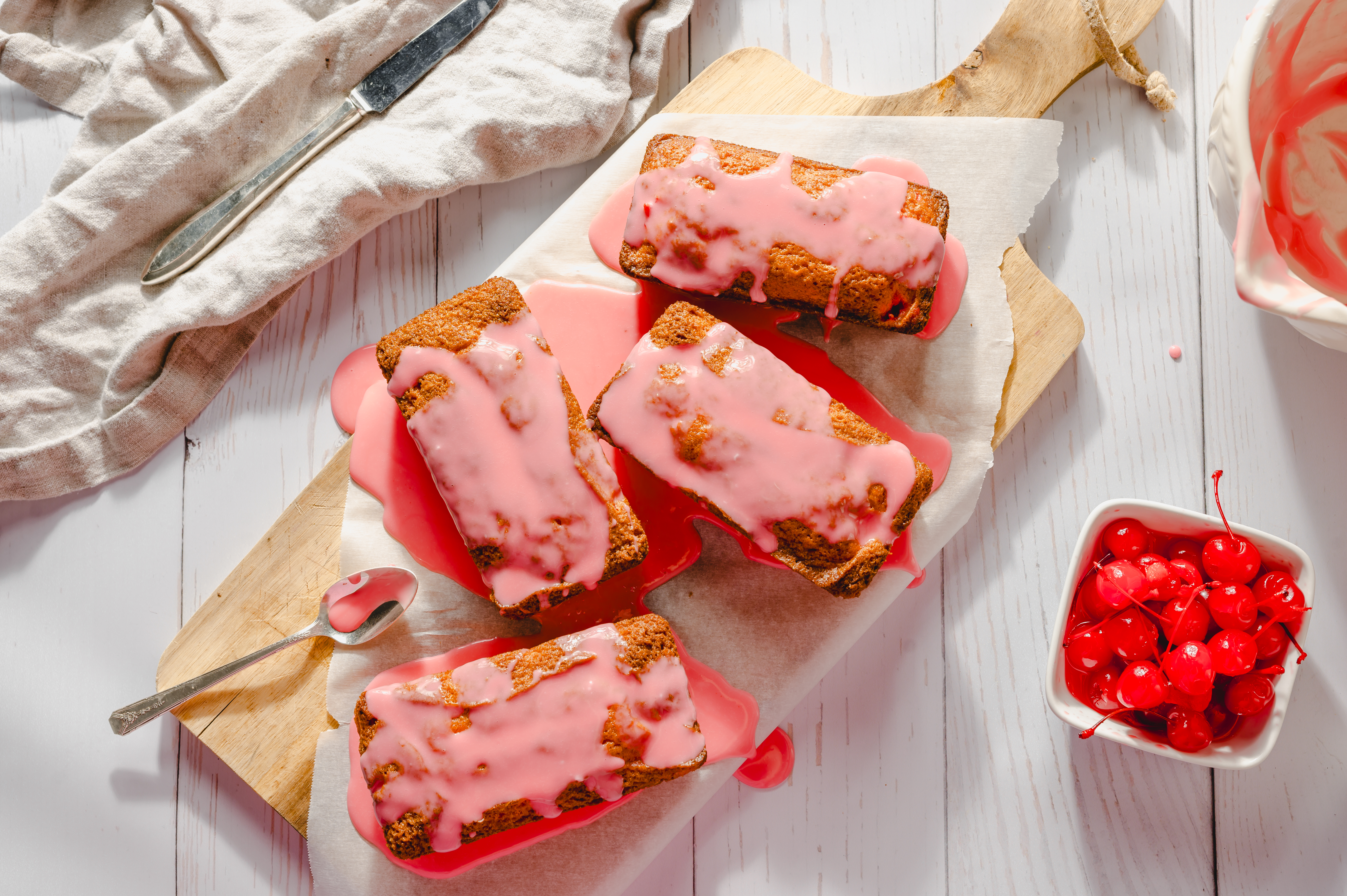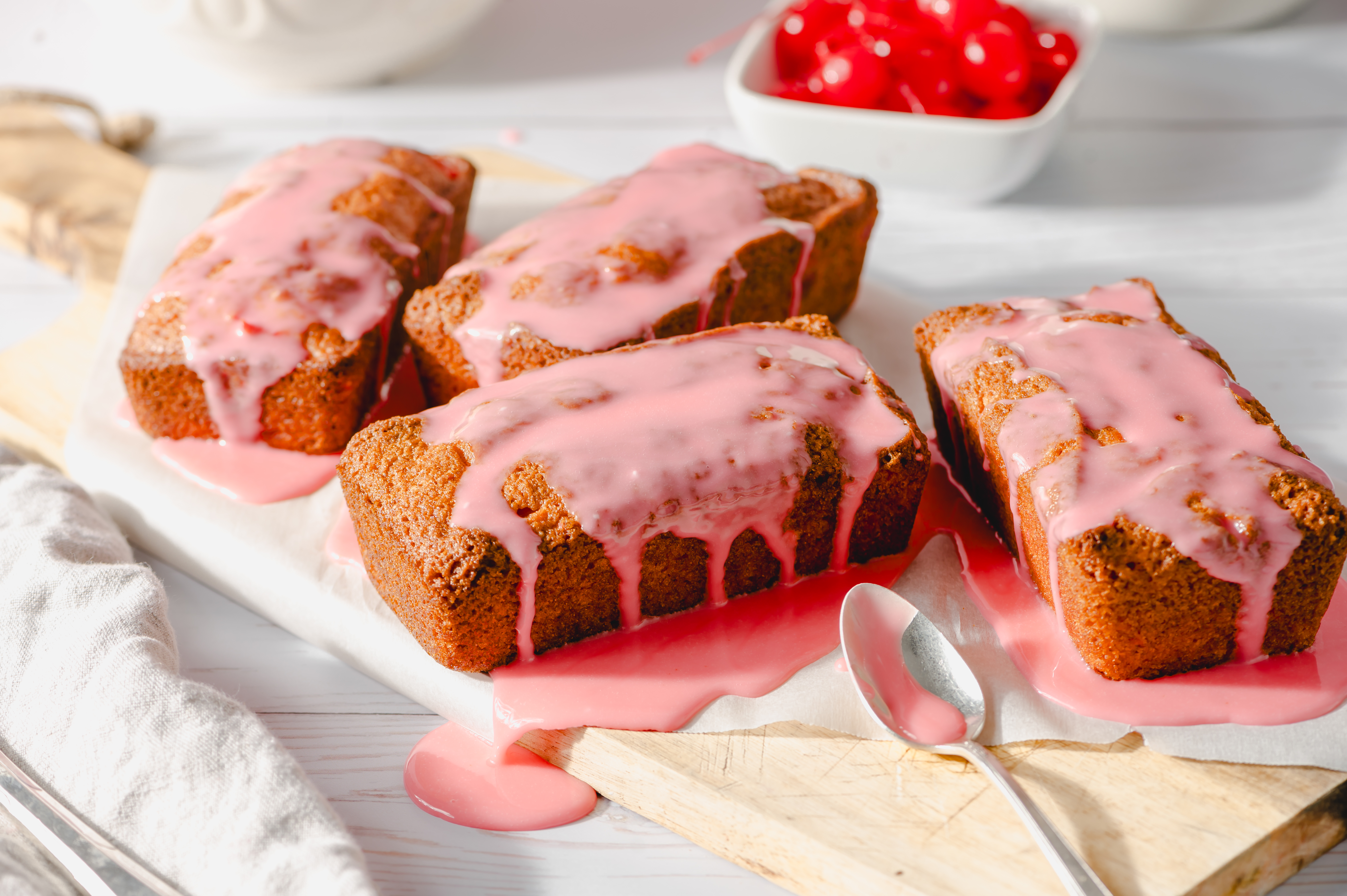 Step 3 -Transfer the cherries from the jar to a cutting board. Reserve about 1/4 cup of the juice for the glaze, and reserve the rest of the juice for the bread.