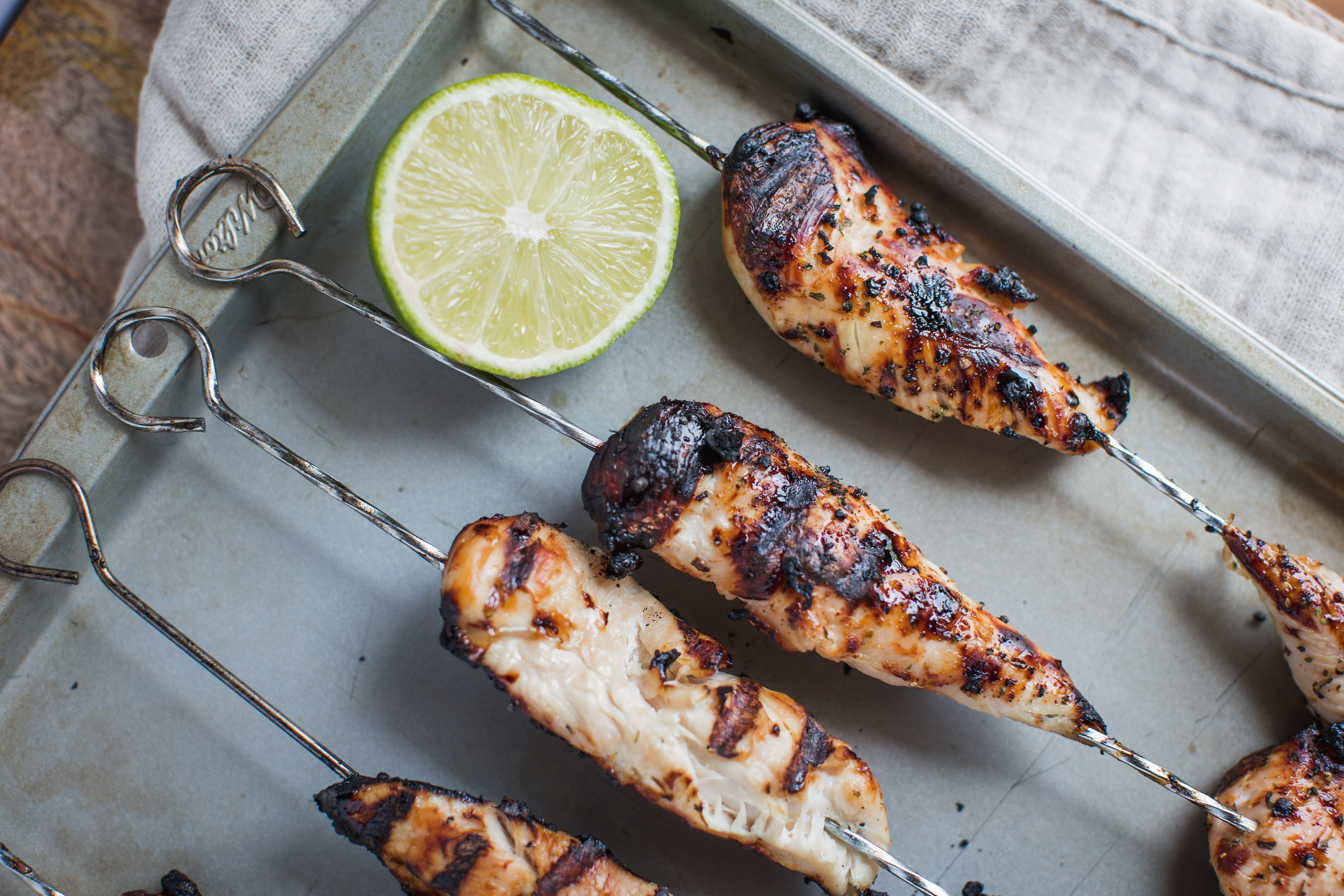 Step 10 -Transfer the chicken skewers from the grill to a clean, large platter.