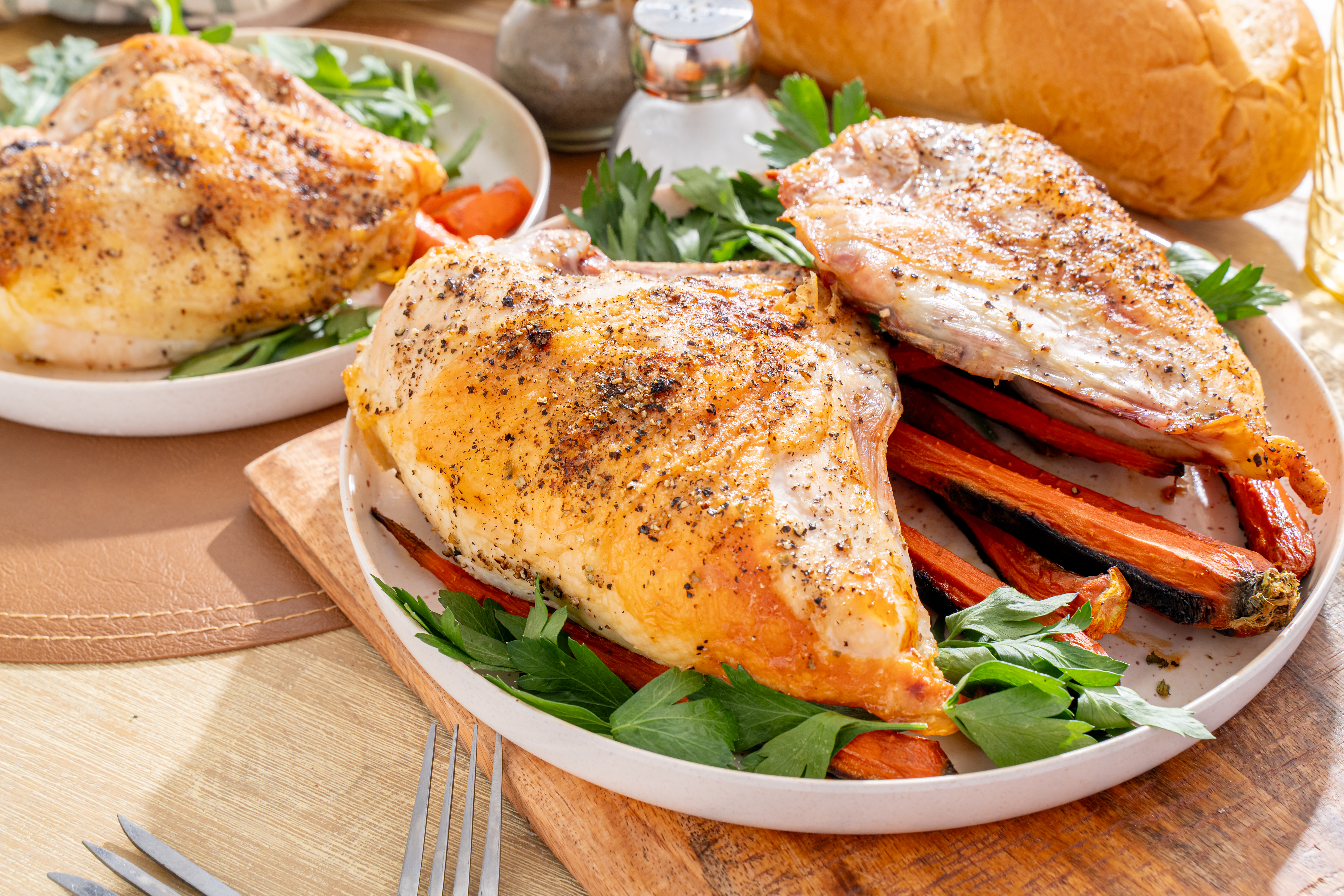 Thanks for this, Martha! Martha's Baked Chicken is exactly the kind of flavorful, home-cooked poultry meal that’s perfect for any occasion; no wonder it's an instant favorite. With just a few pantry staples like kosher salt, freshly ground black pepper, and extra-virgin olive oil, the chicken flavor becomes truly bold and scintillating! The bird is carefully seasoned, roasted until golden-brown, and finished off under the broiler for a crispy skin. Can anyone resist a crispy skin on their chicken? Not us, certainly. Martha's Baked Chicken is tender, juicy, and bursting with succulent flavors. Prepare to be amazed!